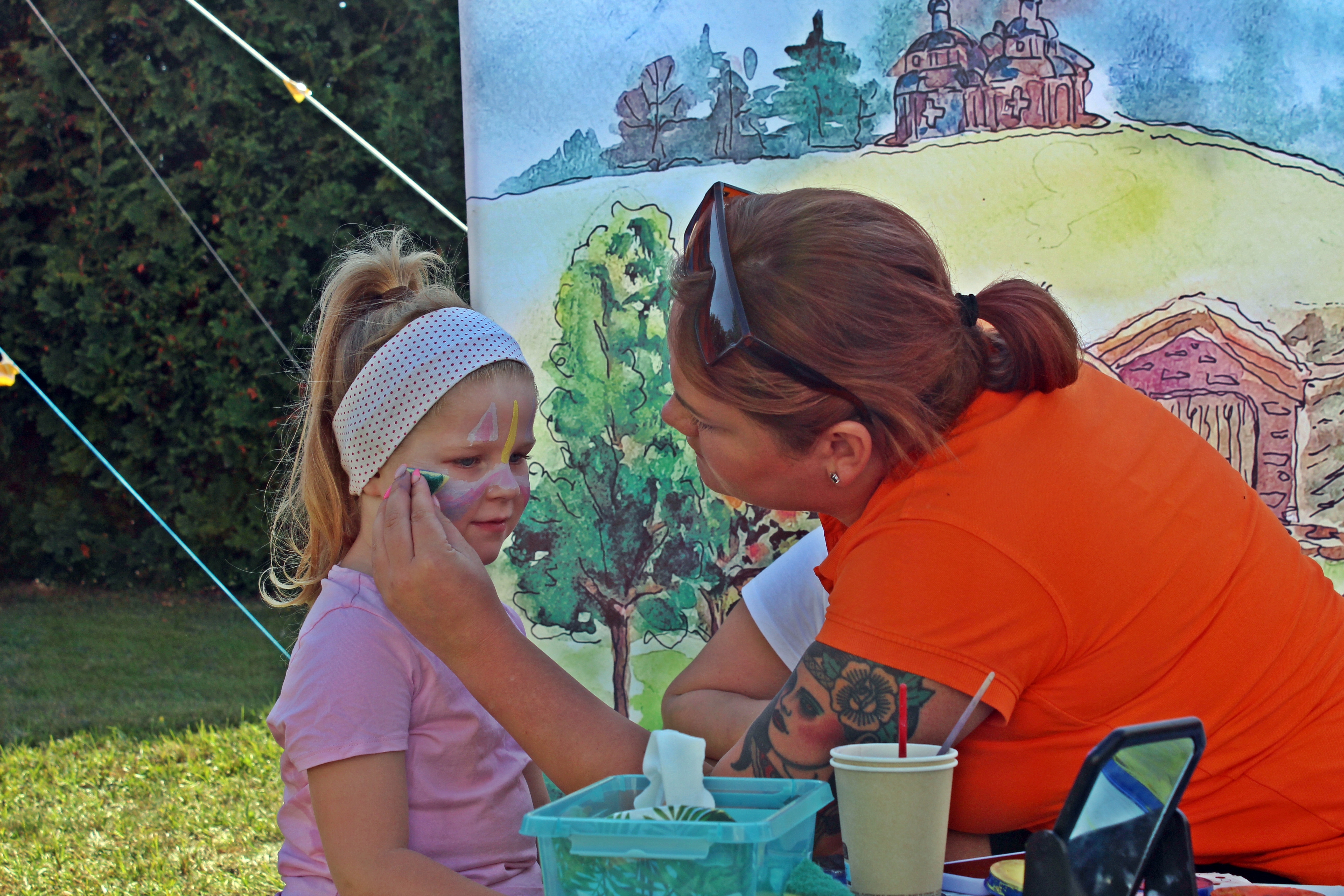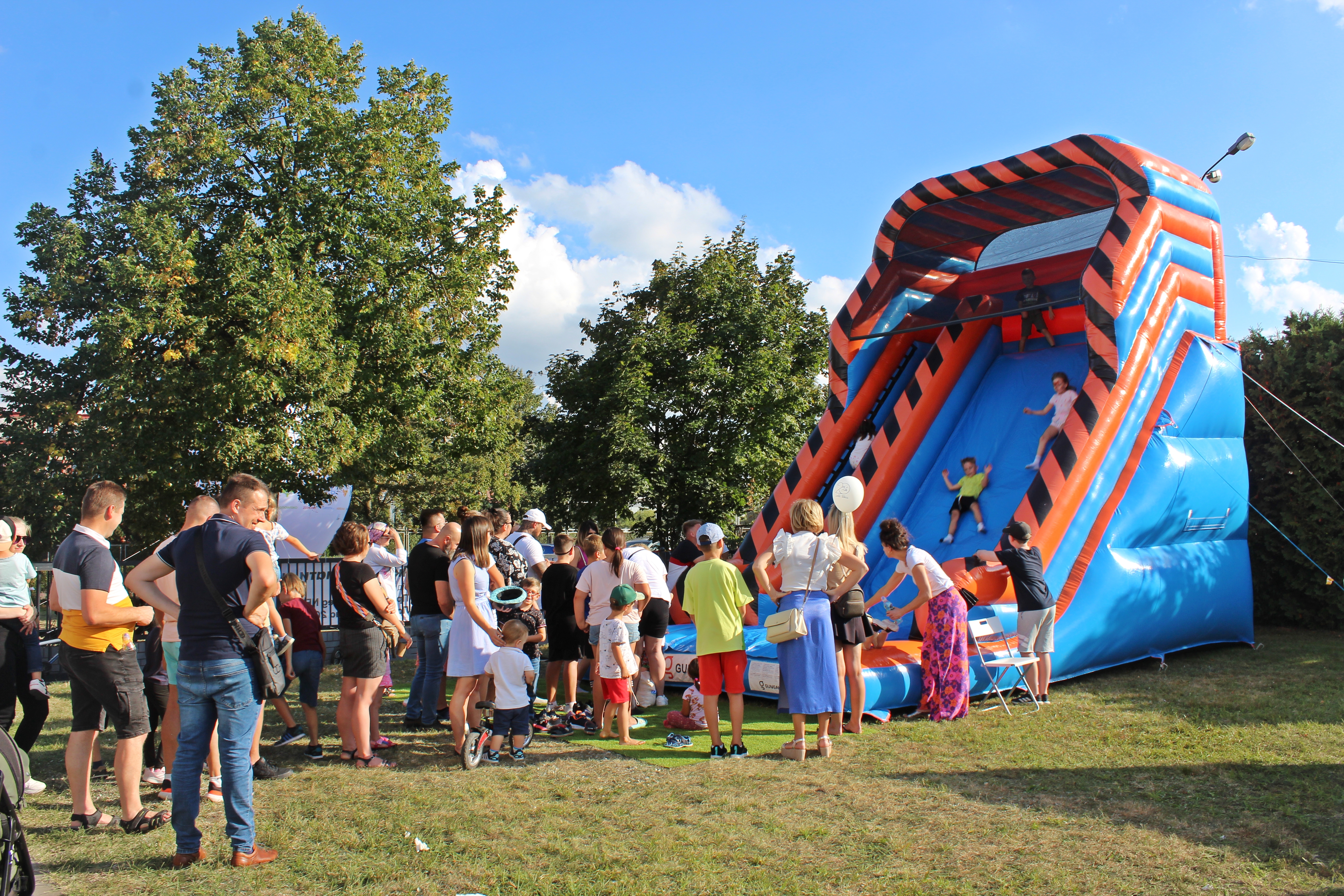 Ponadto, w strefie zabaw, dostępna była dmuchana zjeżdżalnia, koło fortuny z nagrodami, malowanie buziek farbami, wata cukrowa, lody i inne słodkości.