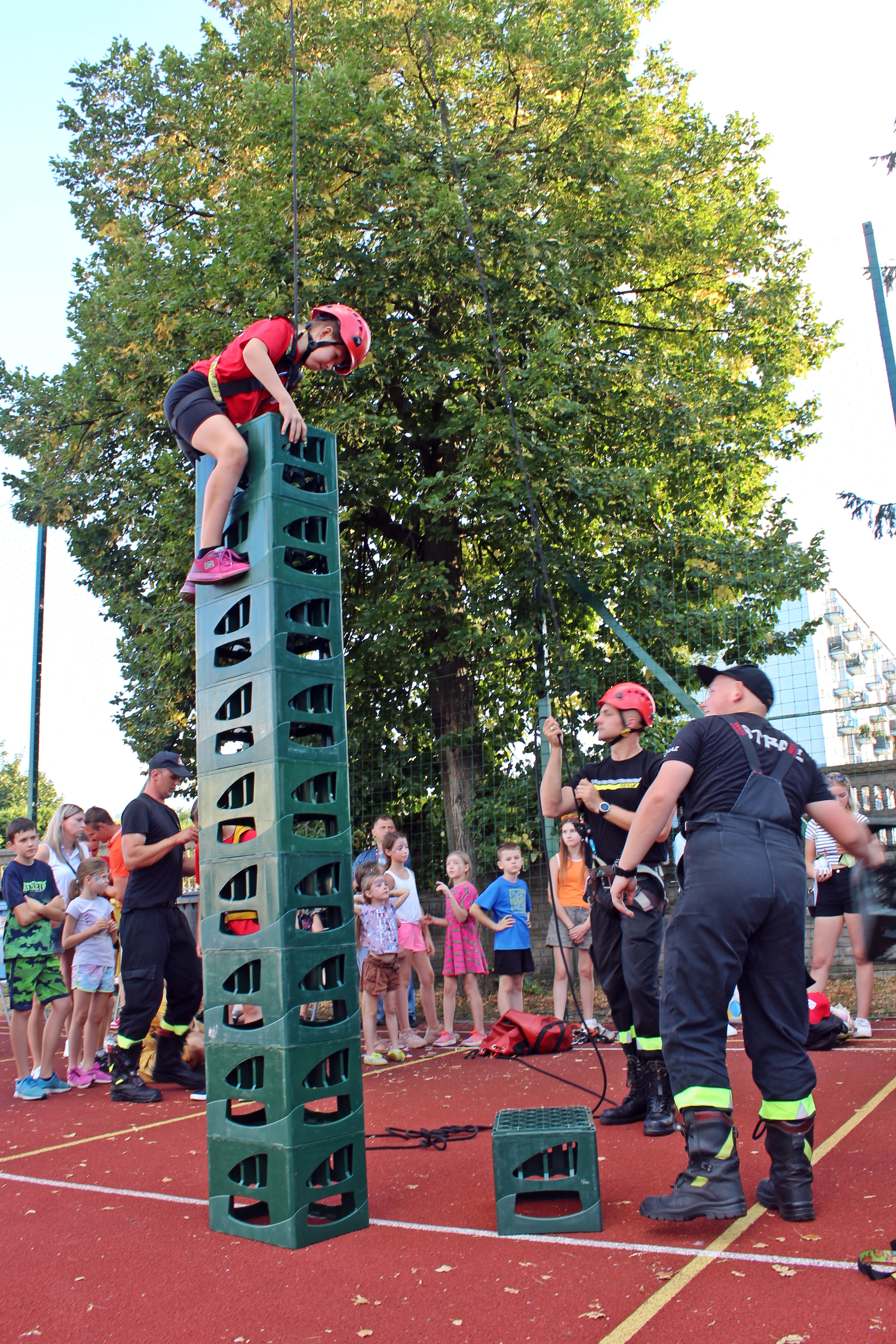 Najbardziej odważni wzięli udział we wspinaniu się na skrzynki układane samodzielnie do góry.