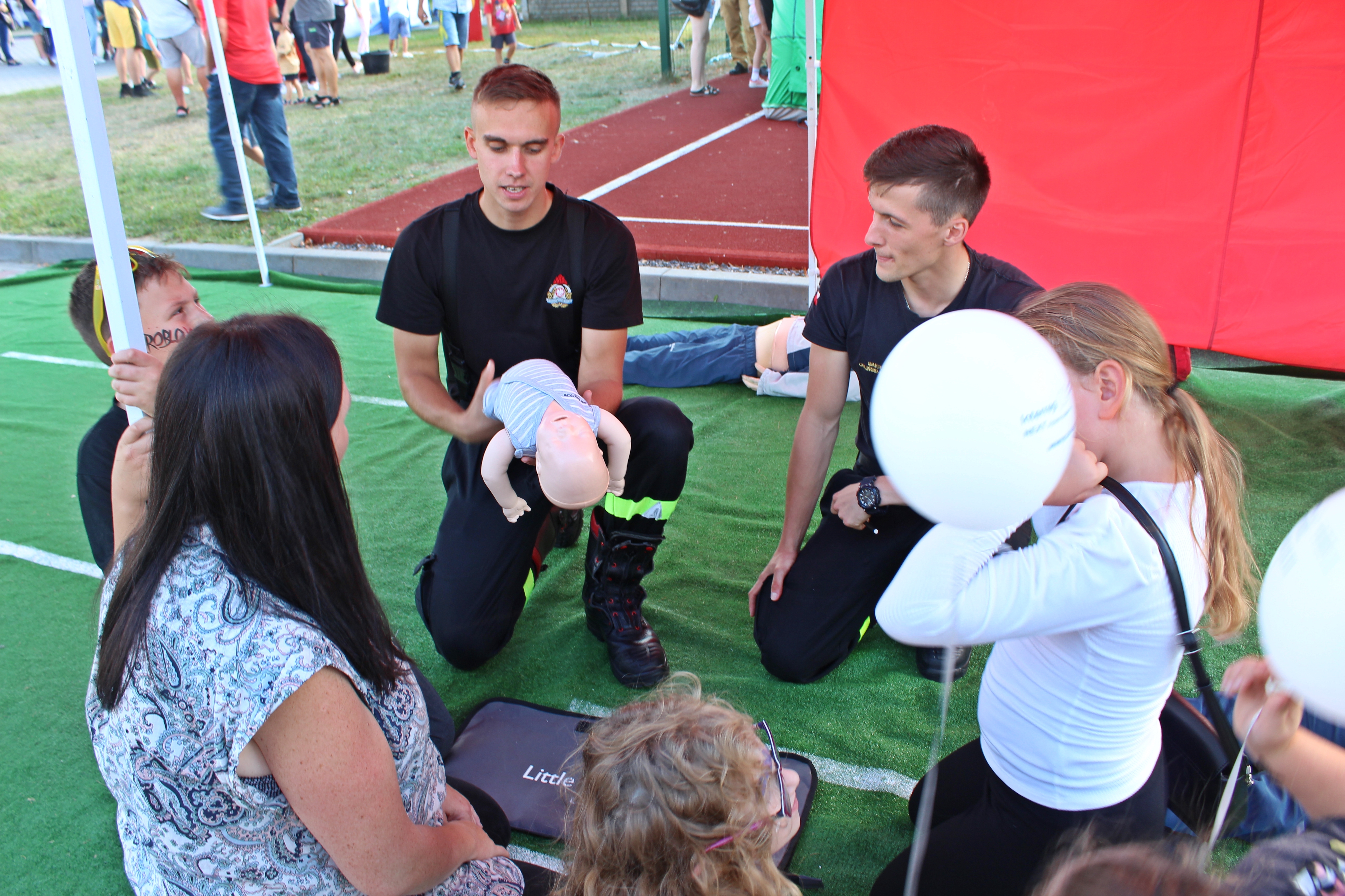 Nie zabrakło również atrakcji dla starszych – rodziców i opiekunów. Strażacy z Jednostki Ratowniczo-Gaśniczej nr 1 i nr 2 zaprezentowali swoje umiejętności zakresu ratownictwa wysokościowego i chemicznego oraz wspinanie przy użyciu drabiny hakowej. Przez cały czas trwania imprezy ratownicy prowadzili interaktywne zajęcia z udzielania pierwszej pomocy.