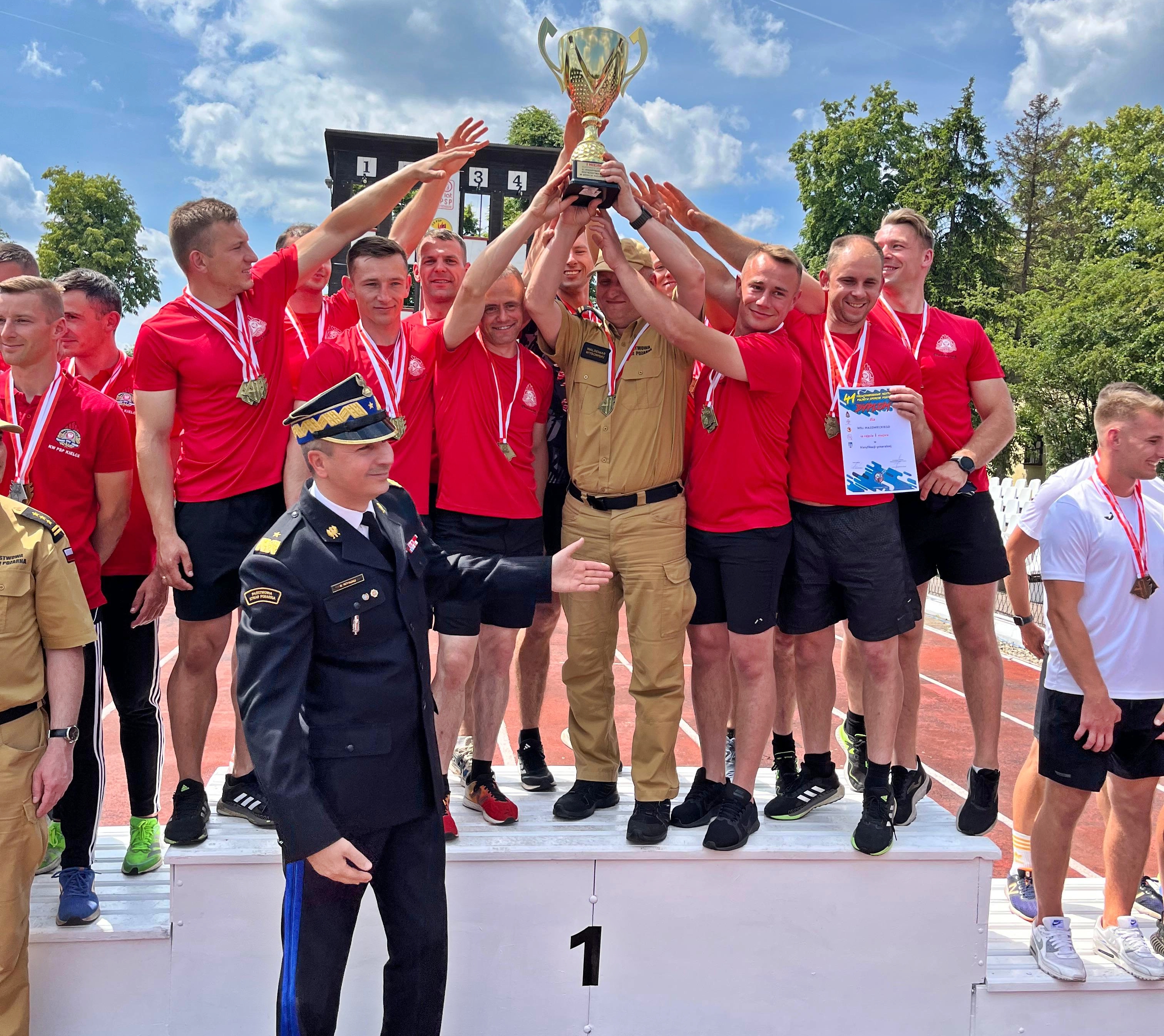 Drużyna z Mazowsza, w skład której wchodzi 3 strażaków z naszej komendy, zdobyła tytuł Mistrza Polski w sporcie pożarniczym, natomiast I miejsce w konkurencji pożarniczy tor przeszkód 100 m indywidualnie zdobył Grzegorz Celiński-Mysław, z czasem 17,14 s!