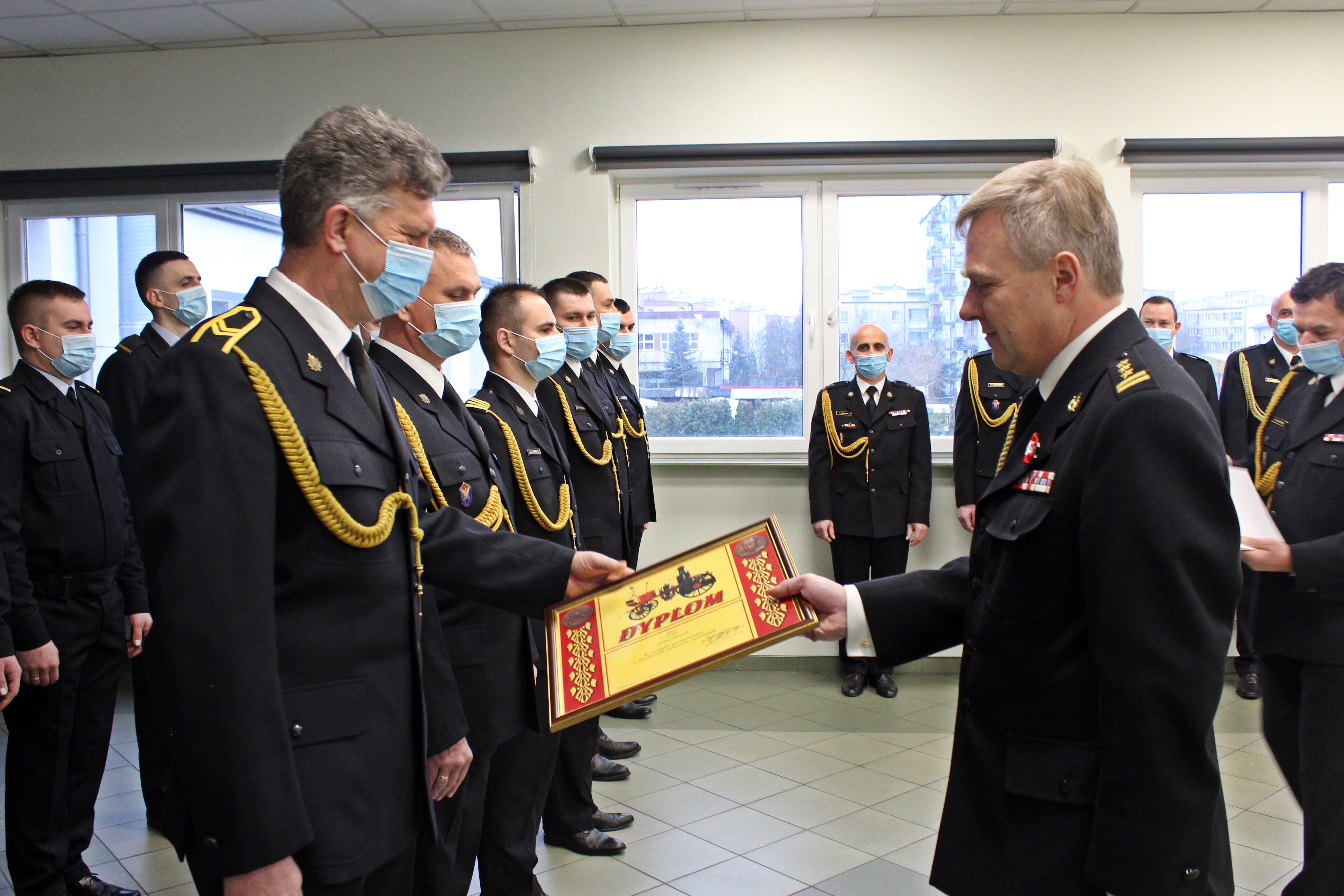 Za wzorową postawę i zaangażowanie w realizacji zadań służbowych Komendant Główny Państwowej Straży Pożarnej z okazji Narodowego Święta Niepodległości wyróżnił dyplomem okolicznościowym strażaka z KM PSP Siedlce st. ogn. Andrzeja Książka.