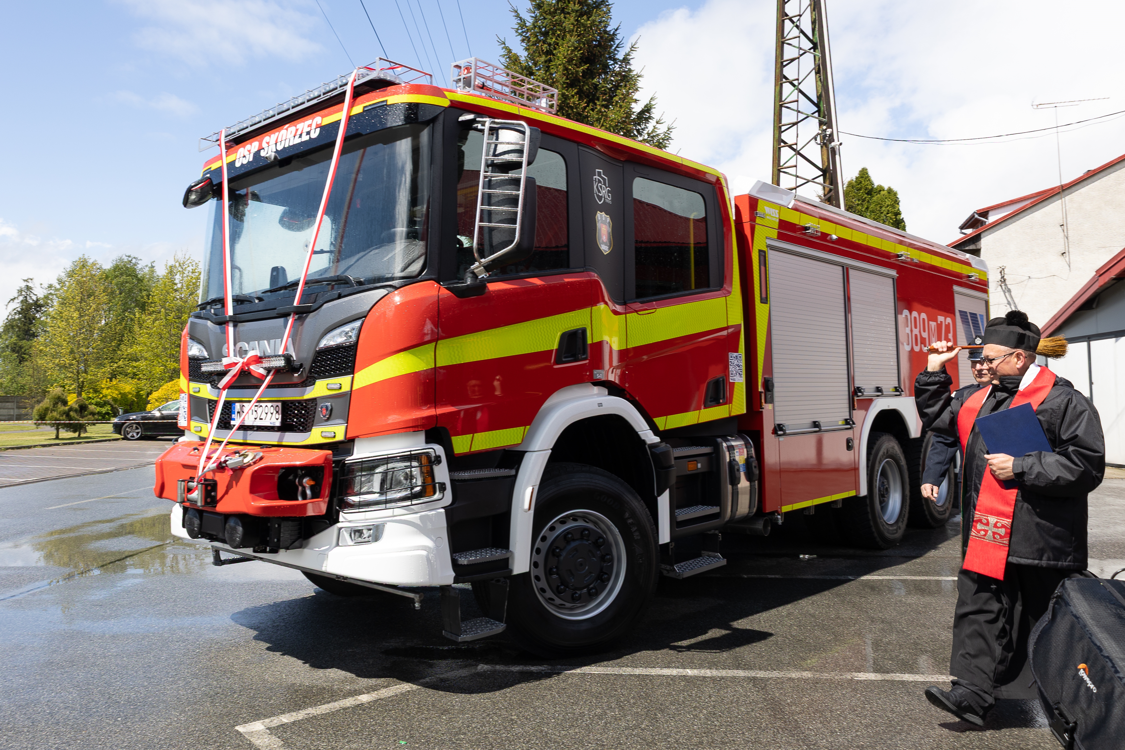 17 maja 2025 roku odbyła się uroczystość przekazania i poświęcenia nowego ciężkiego samochodu ratowniczo-gaśniczego Scania P450 dla Ochotniczej Straży Pożarnej w Skórcu.