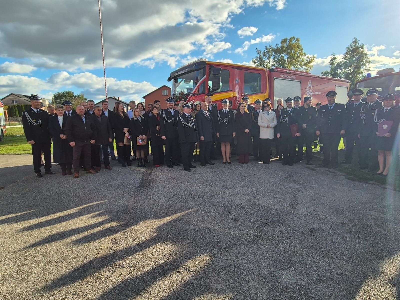 19 października 2025 roku odbyła się uroczystość przekazania i poświęcenia nowego samochodu ratowniczo - gaśniczego dla Ochotniczej Straży Pożarnej w Suchożebrach.
