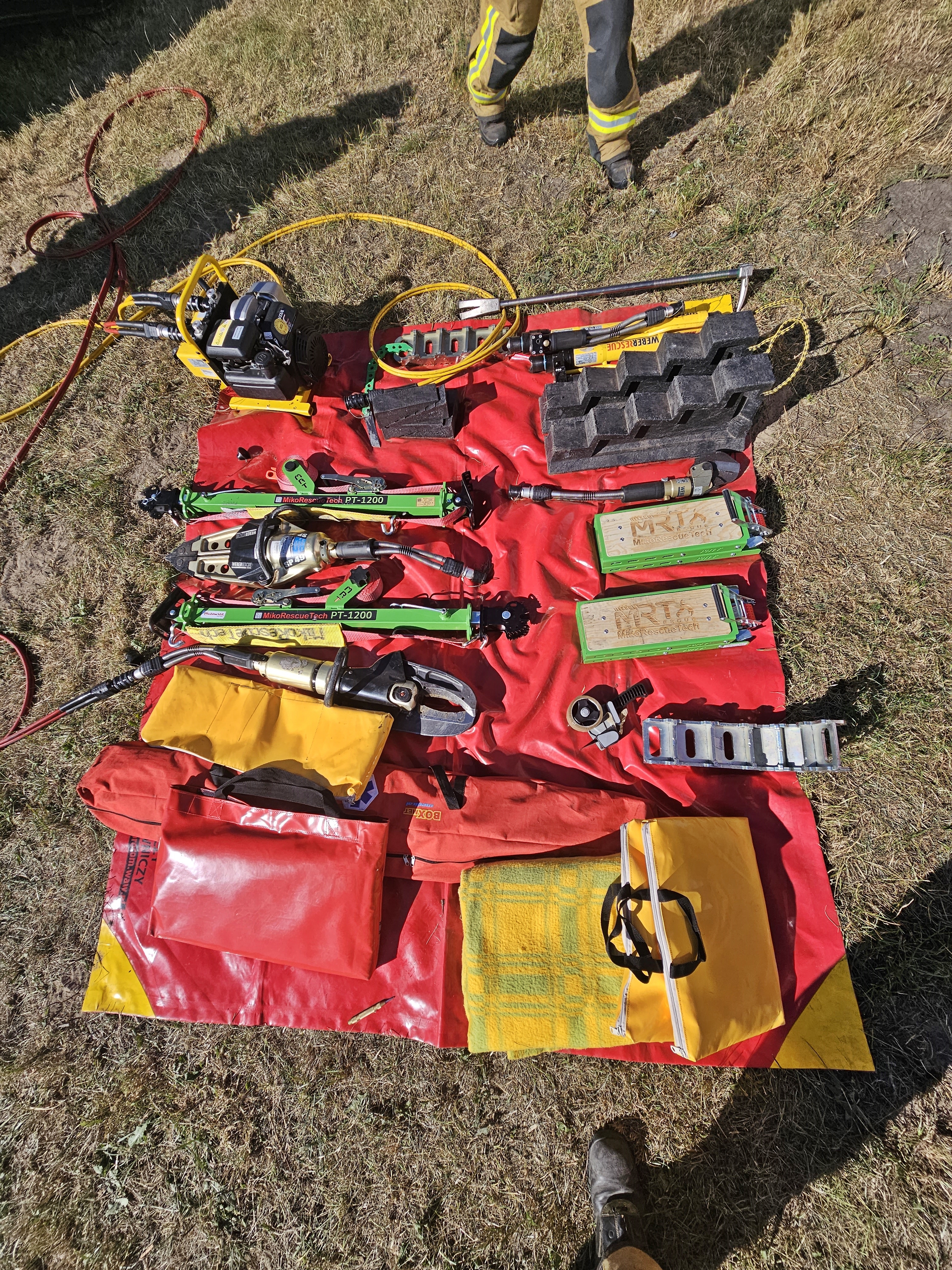 - pojazd na kołach – samochód osobowy w pozycji na kołach, zakleszczone nogi kierowcy; działania: otwarcie i usunięcie drzwi kierowcy, uniesienie kolumny kierownicy;