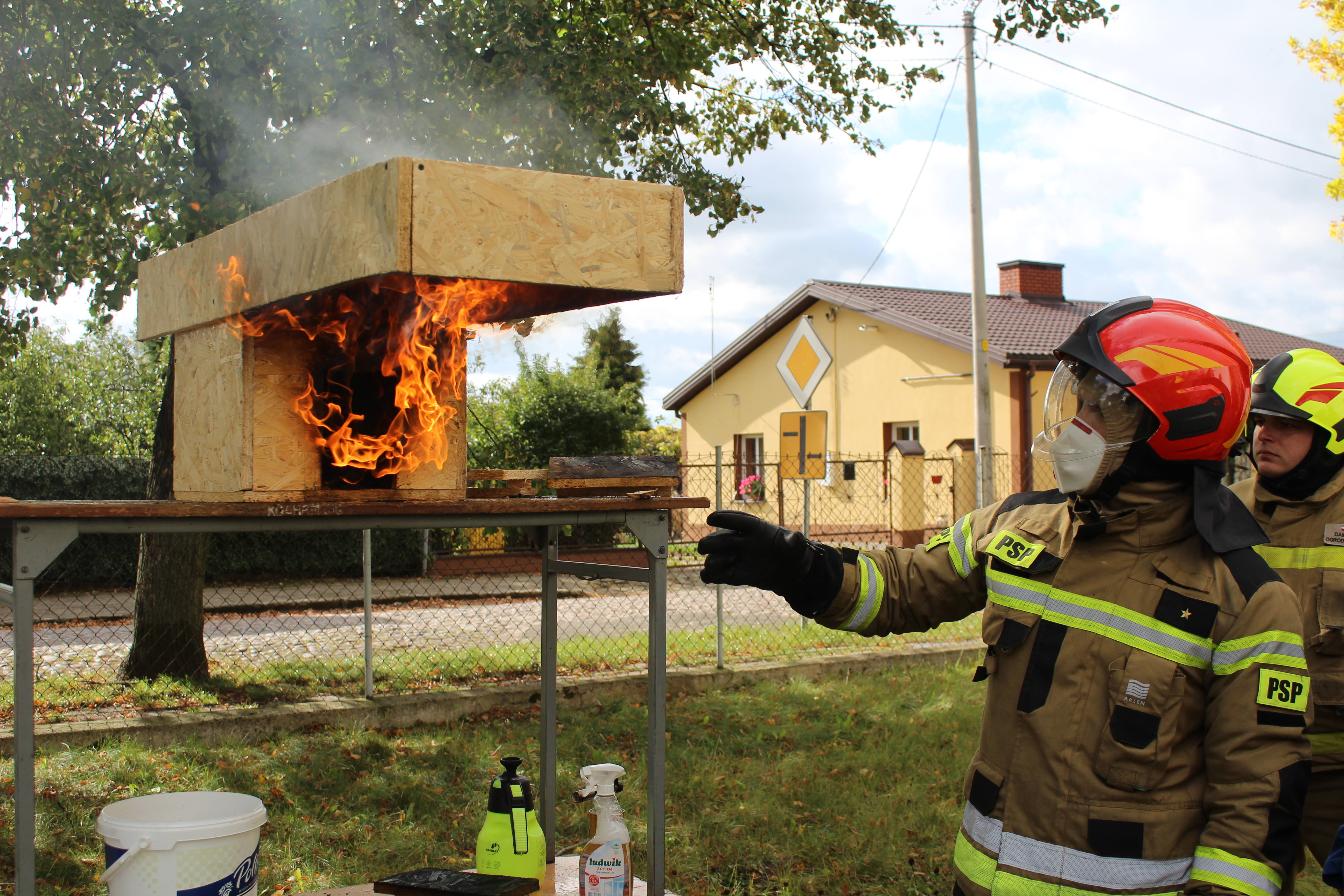 Zwieńczeniem warsztatów był pokaz rozwoju pożaru przy pomocy tzw. „małego domku dla lalek”, który w praktyczny sposób pokazał dynamikę pożaru oraz znaczenie właściwego rozpoznania i taktyki działań.