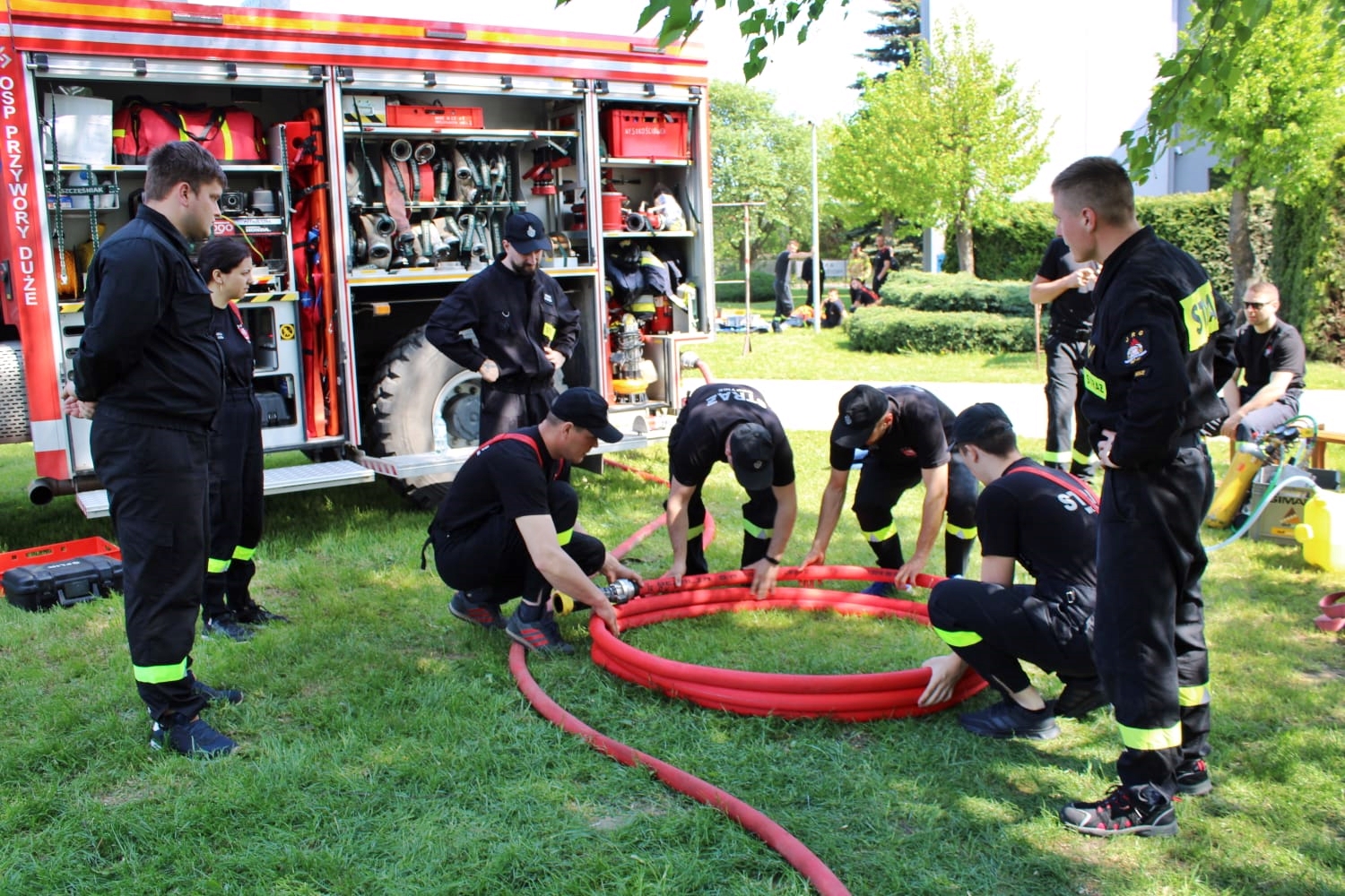 - trening ograniczania skutków wycieku substancji ropopochodnych, sprawiania kurtyn,