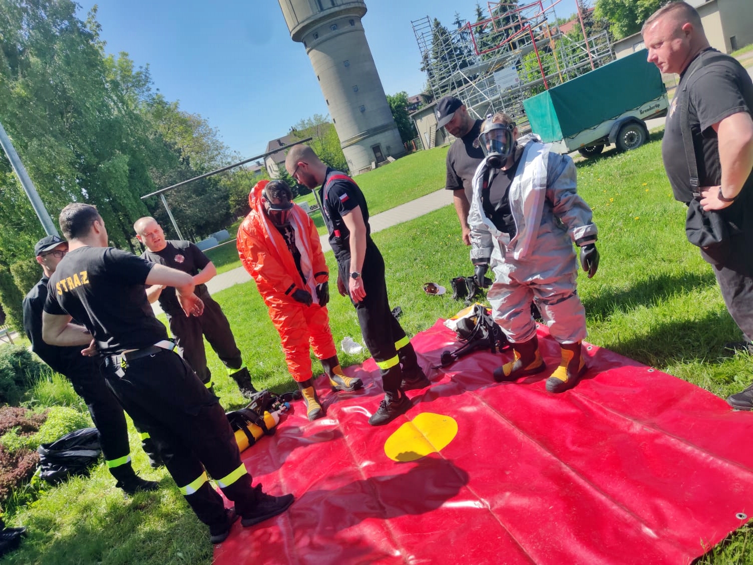 - ćwiczenia z zakresu organizowania oraz przeprowadzania dekontaminacji wstępnej ludzi na granicy strefy zagrożenia przy użyciu dostępnego sprzętu,