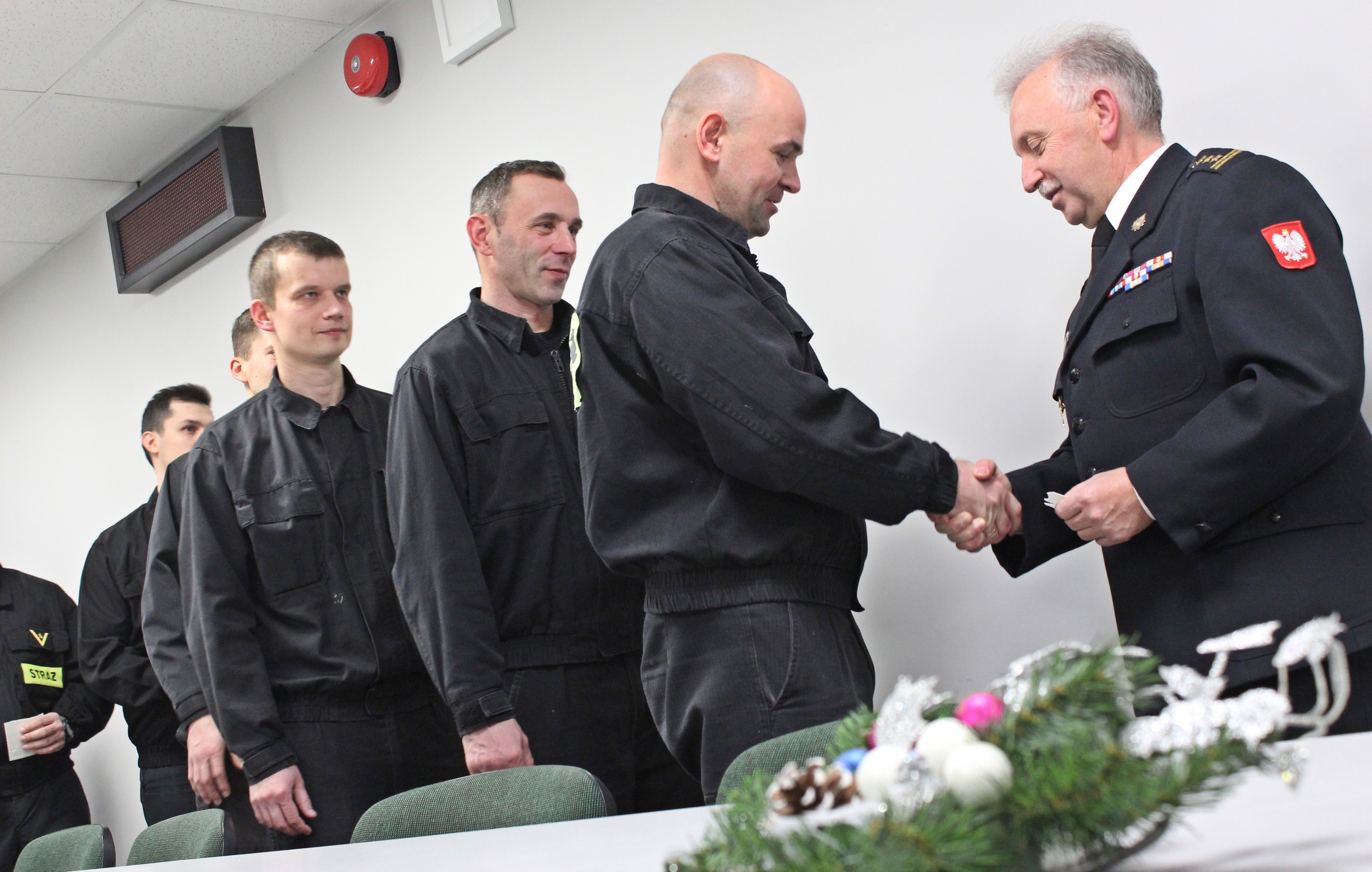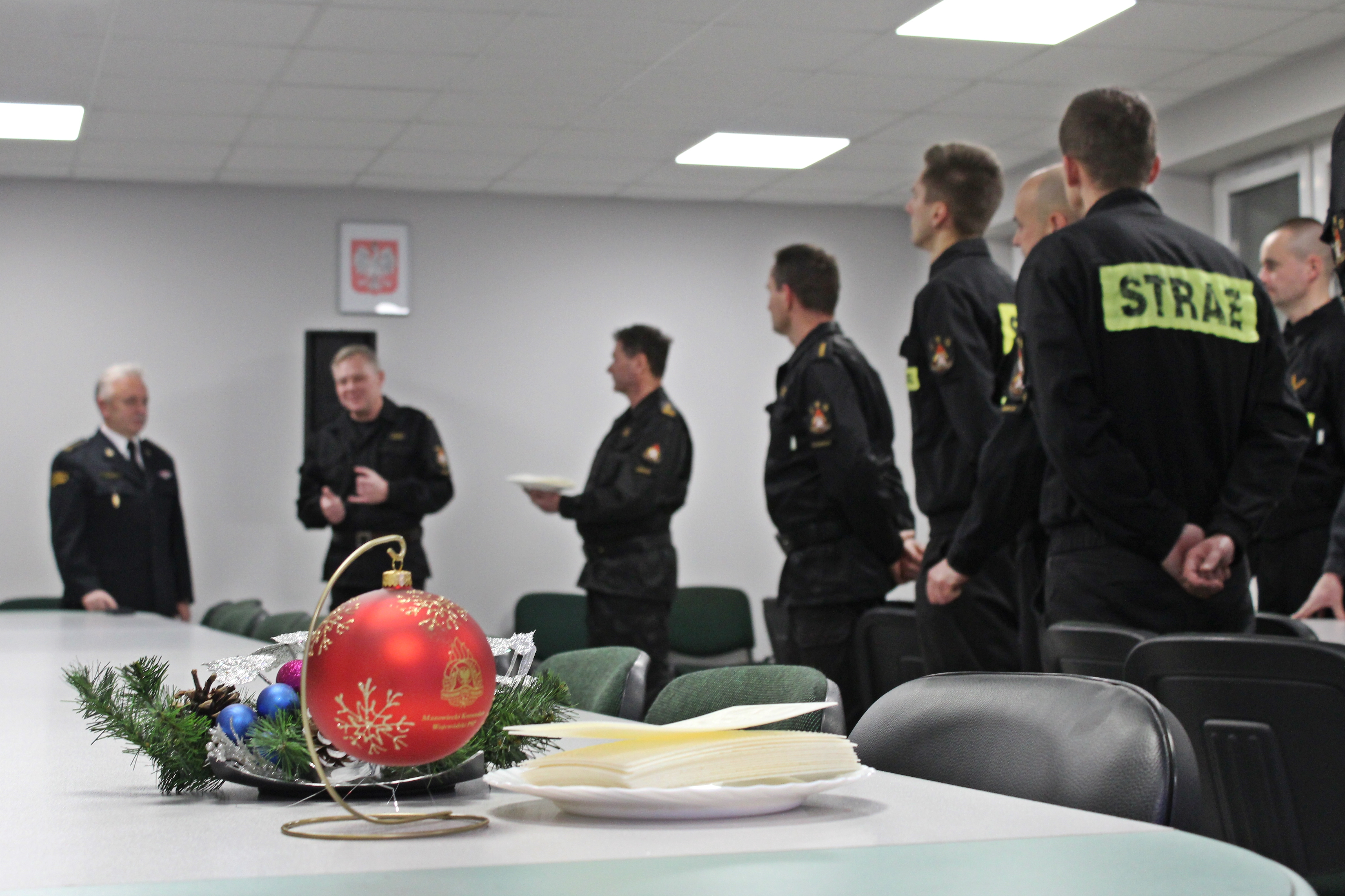 Na zakończenie wizyty Mazowiecki Komendant Wojewódzki PSP złożył wszystkim obecnym życzenia zdrowia i samych pomyślności w życiu zawodowym i osobistym oraz podzielił się opłatkiem.