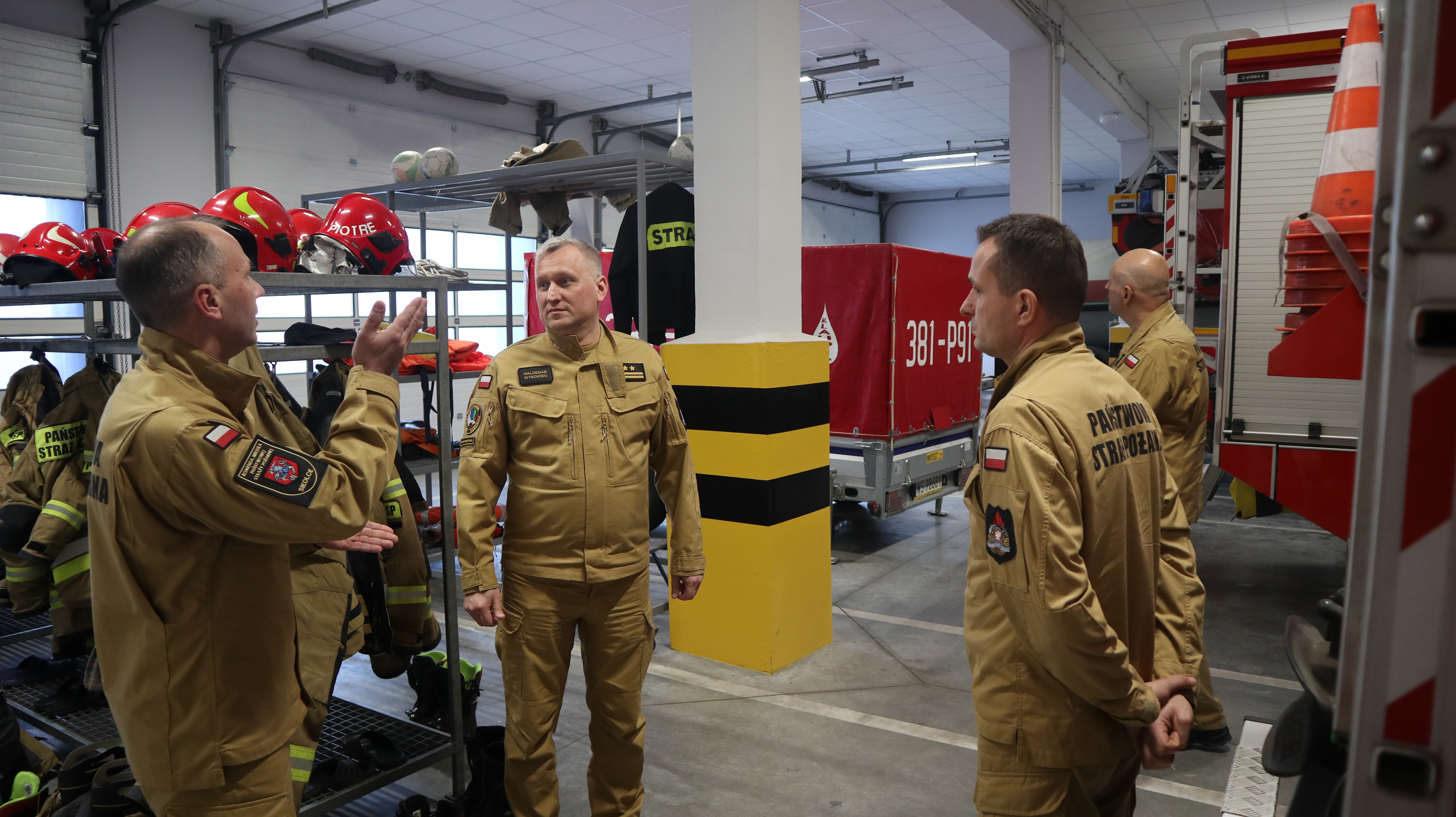 Podczas wizytacji Komendant spotkał się ze strażakami, pełniącymi w tym dniu służbę. W trakcie spotkania omówiono warunki pracy i służby strażaków, funkcjonowanie Komendy oraz sprawy bieżące. Komendant Wysowski dokonał również wizytacji zaplecza sprzętowego oraz terenu Jednostki Ratowniczo - Gaśniczej nr 1. Miłym akcentem było przekazanie sprzętu zakupionego ze środków Komendy Wojewódzkiej PSP w Warszawie.