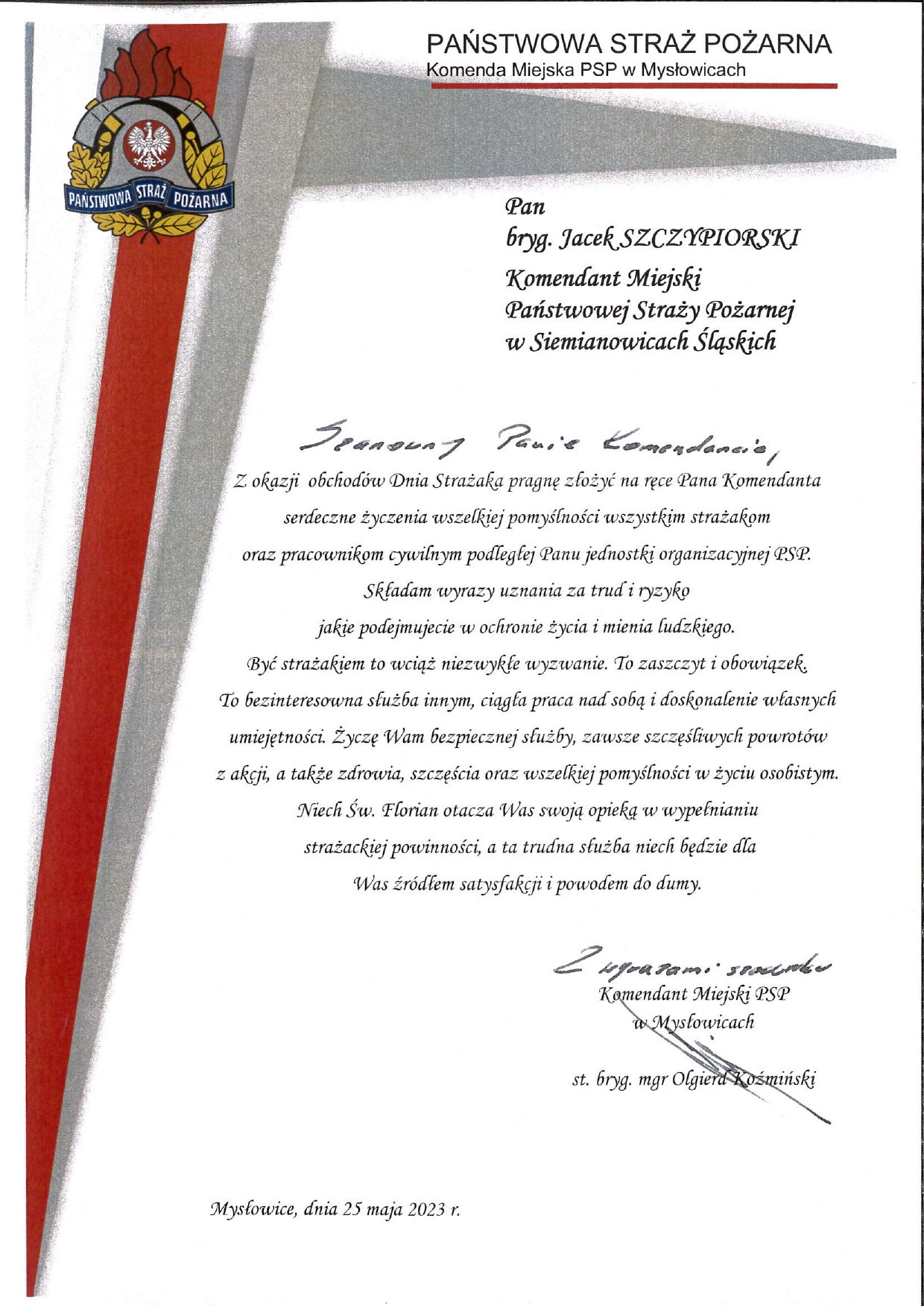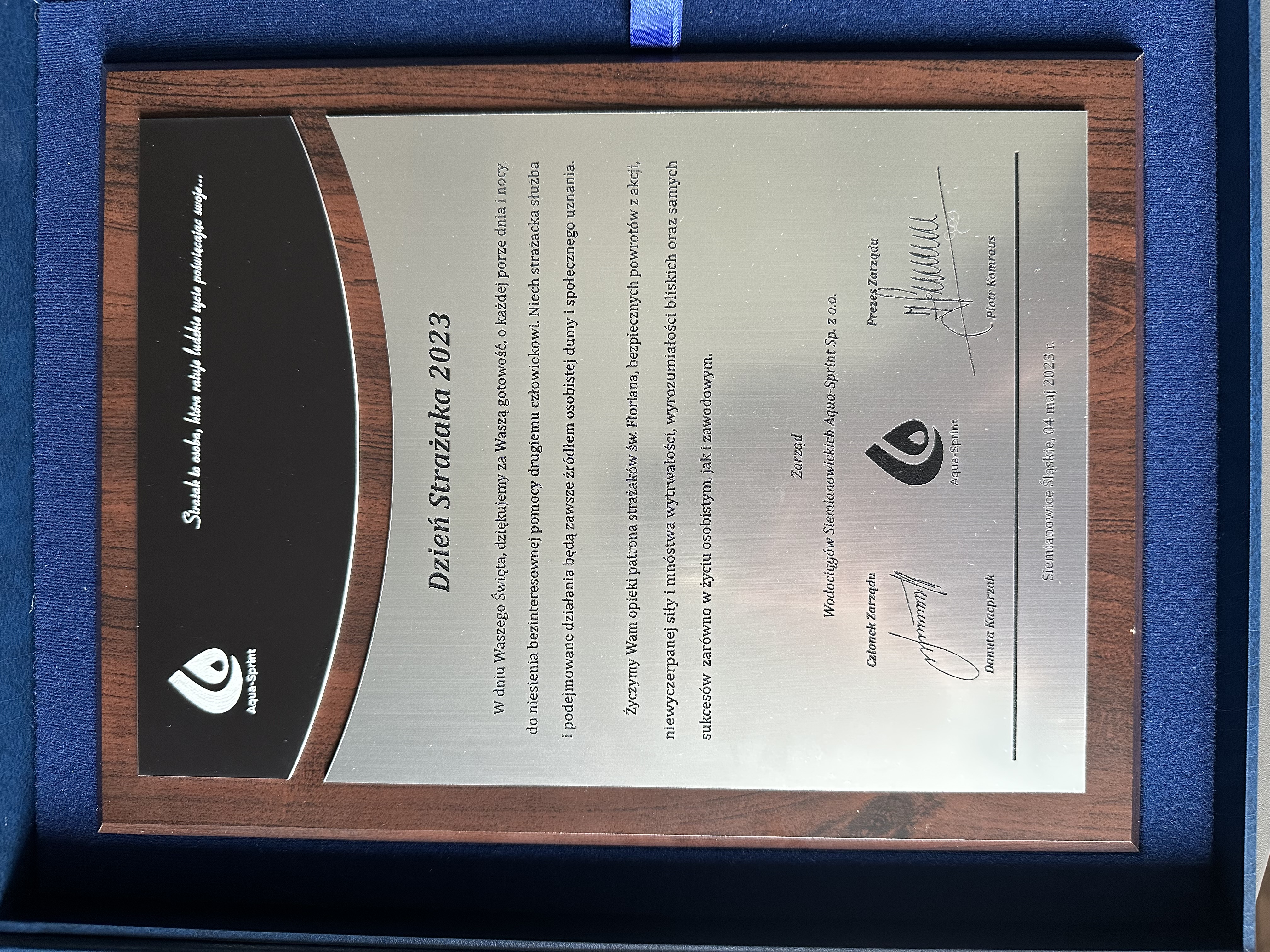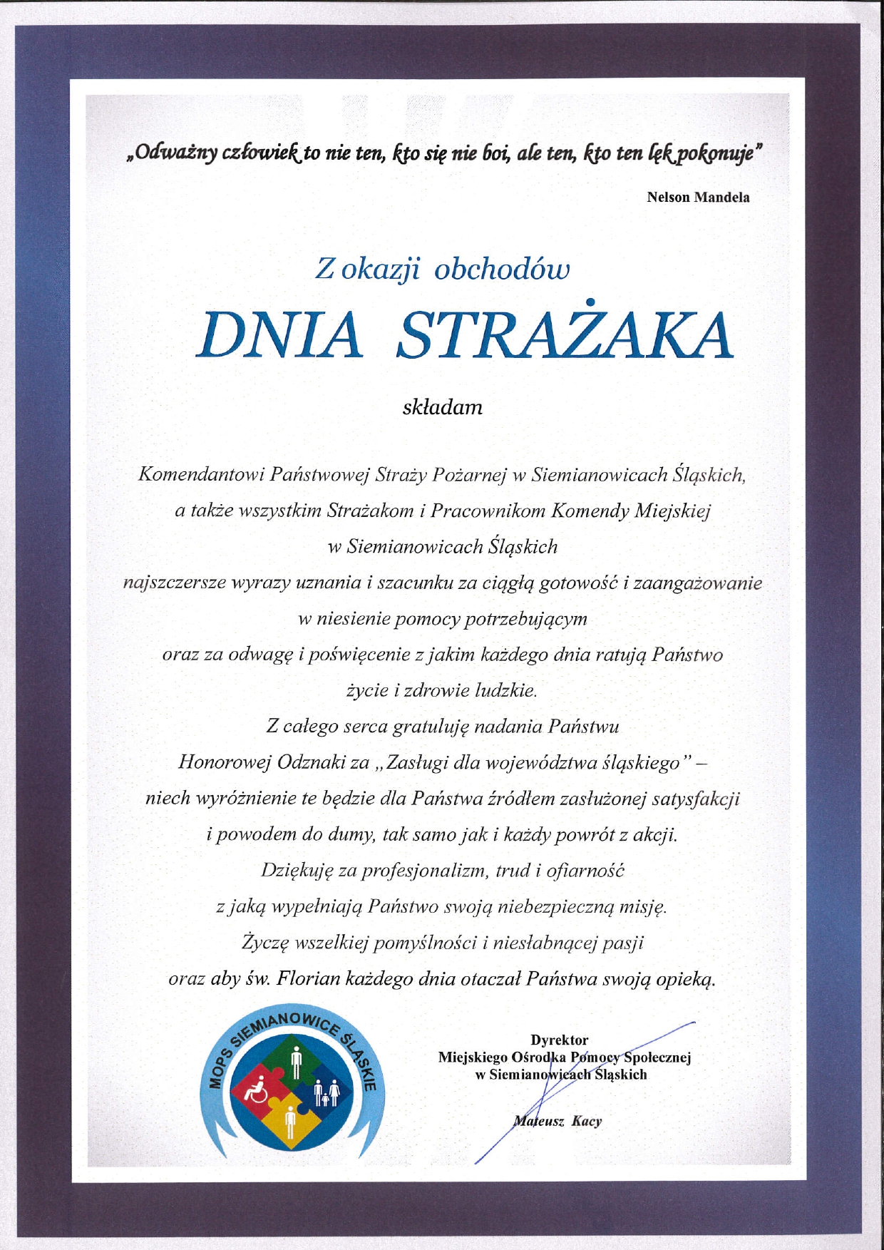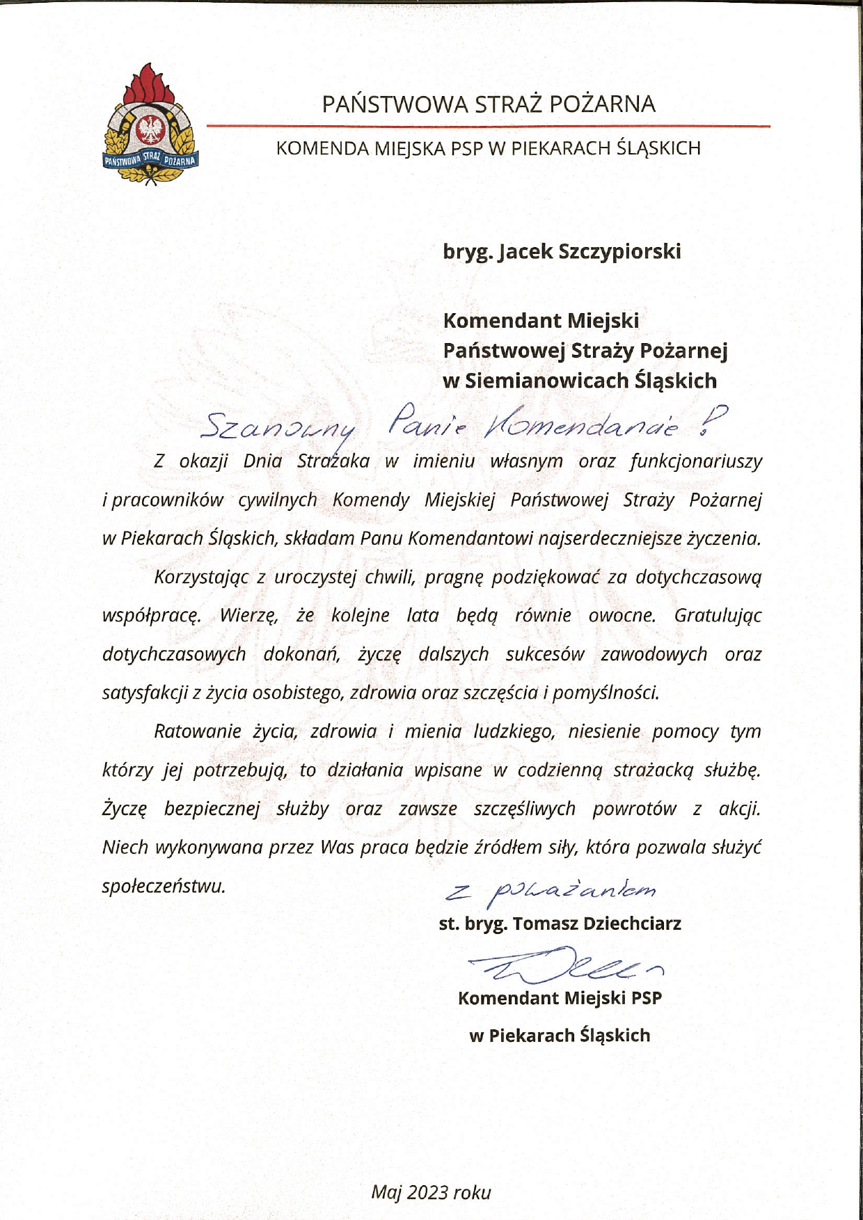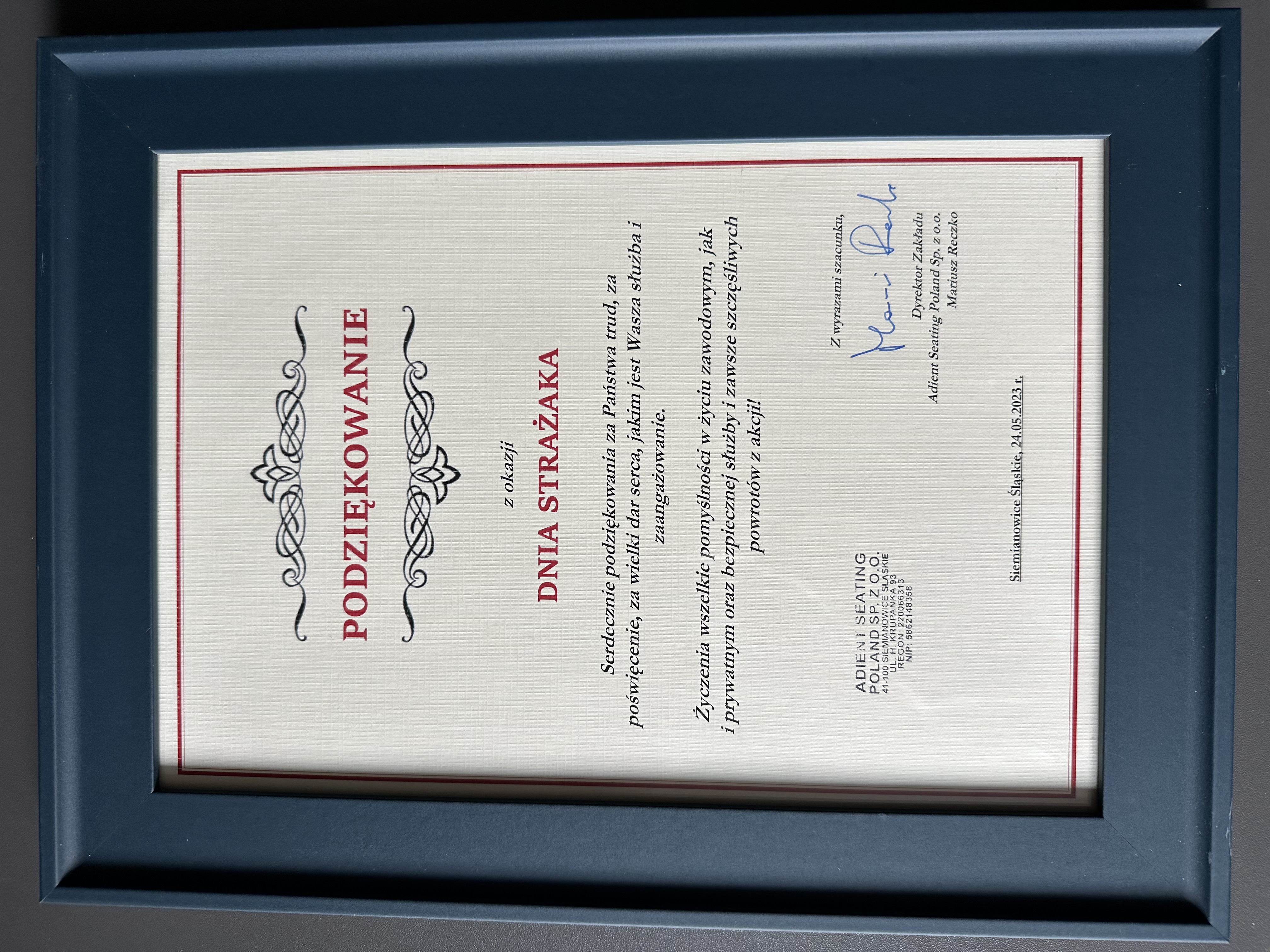 Dyplomy, życzenia oraz listy gratulacyjne otrzymane na dzień strażaka
