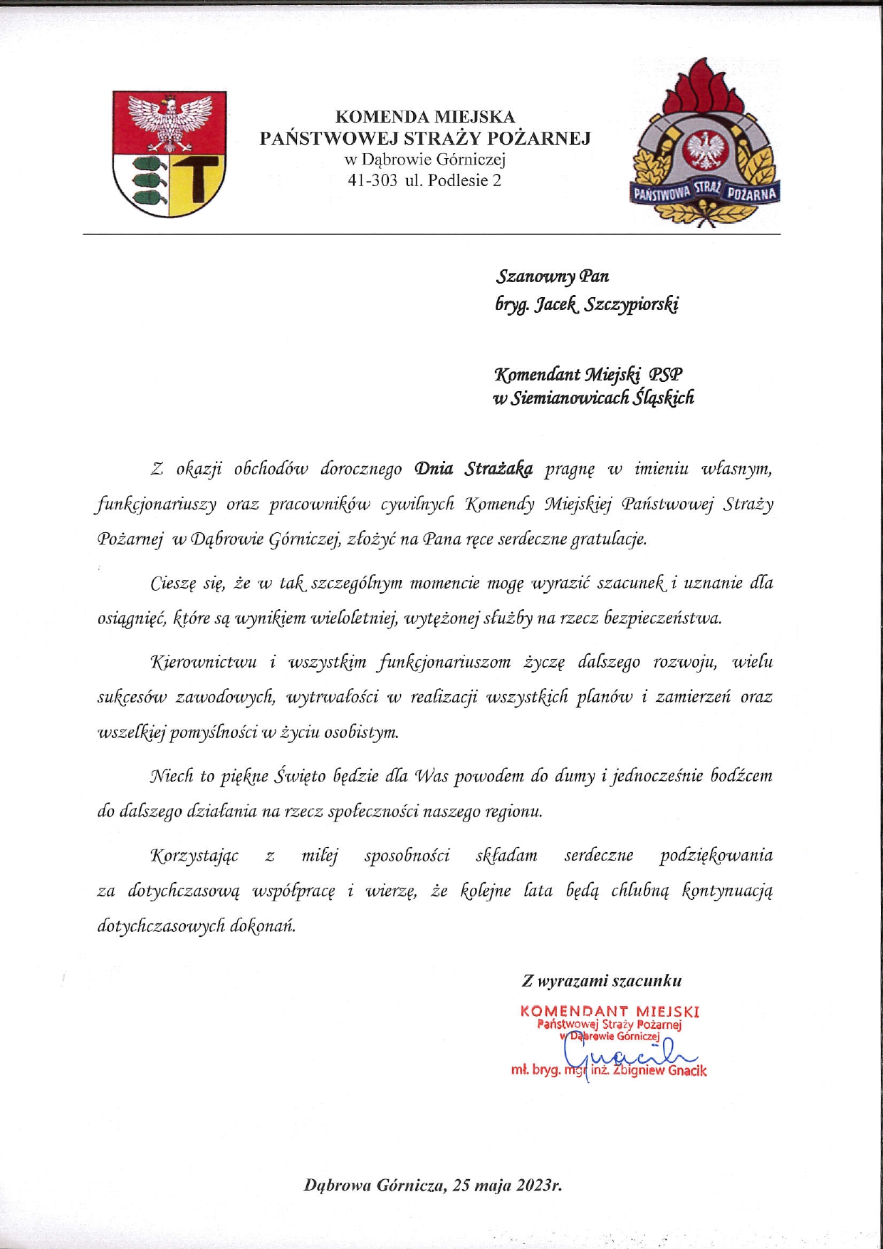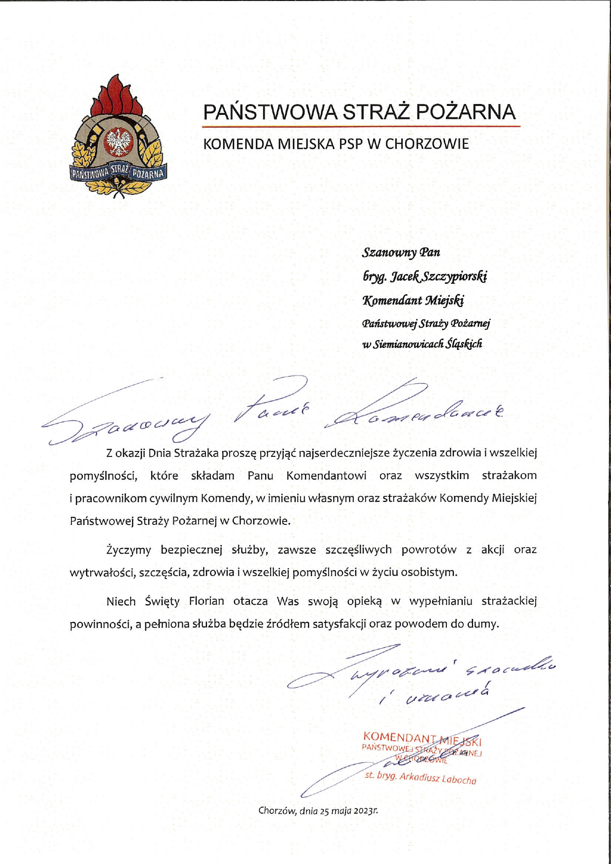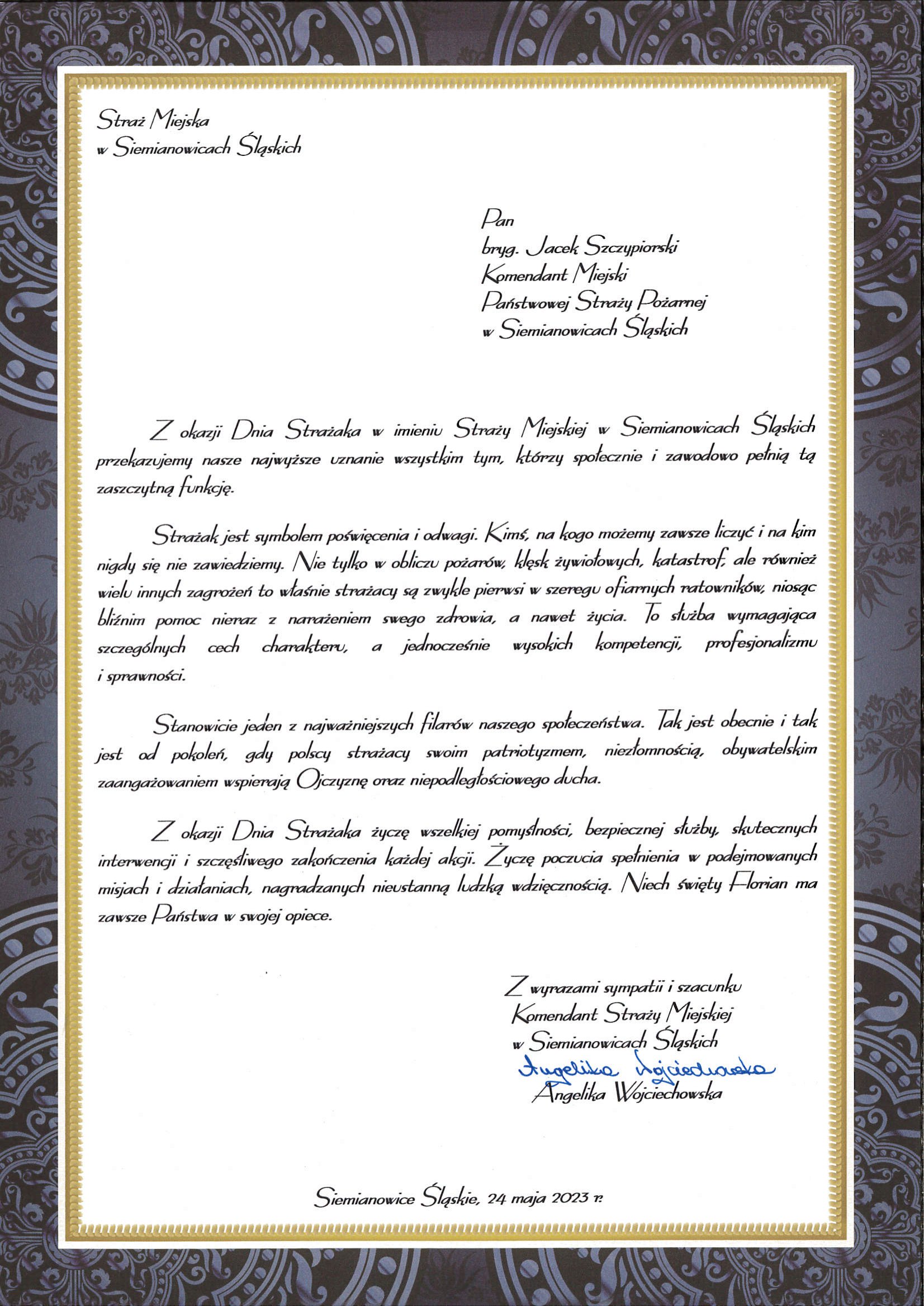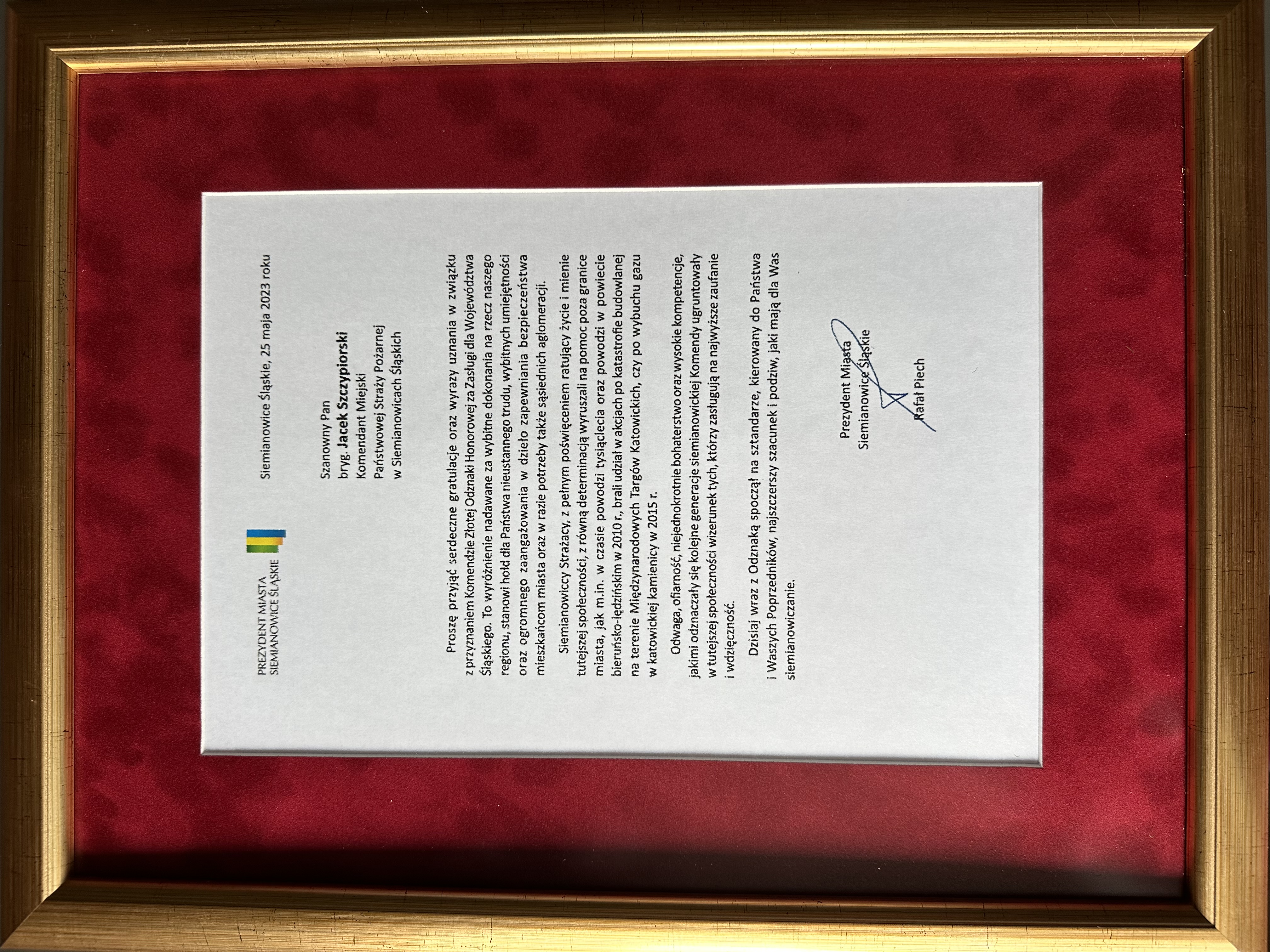 Dyplomy, życzenia oraz listy gratulacyjne otrzymane na dzień strażaka