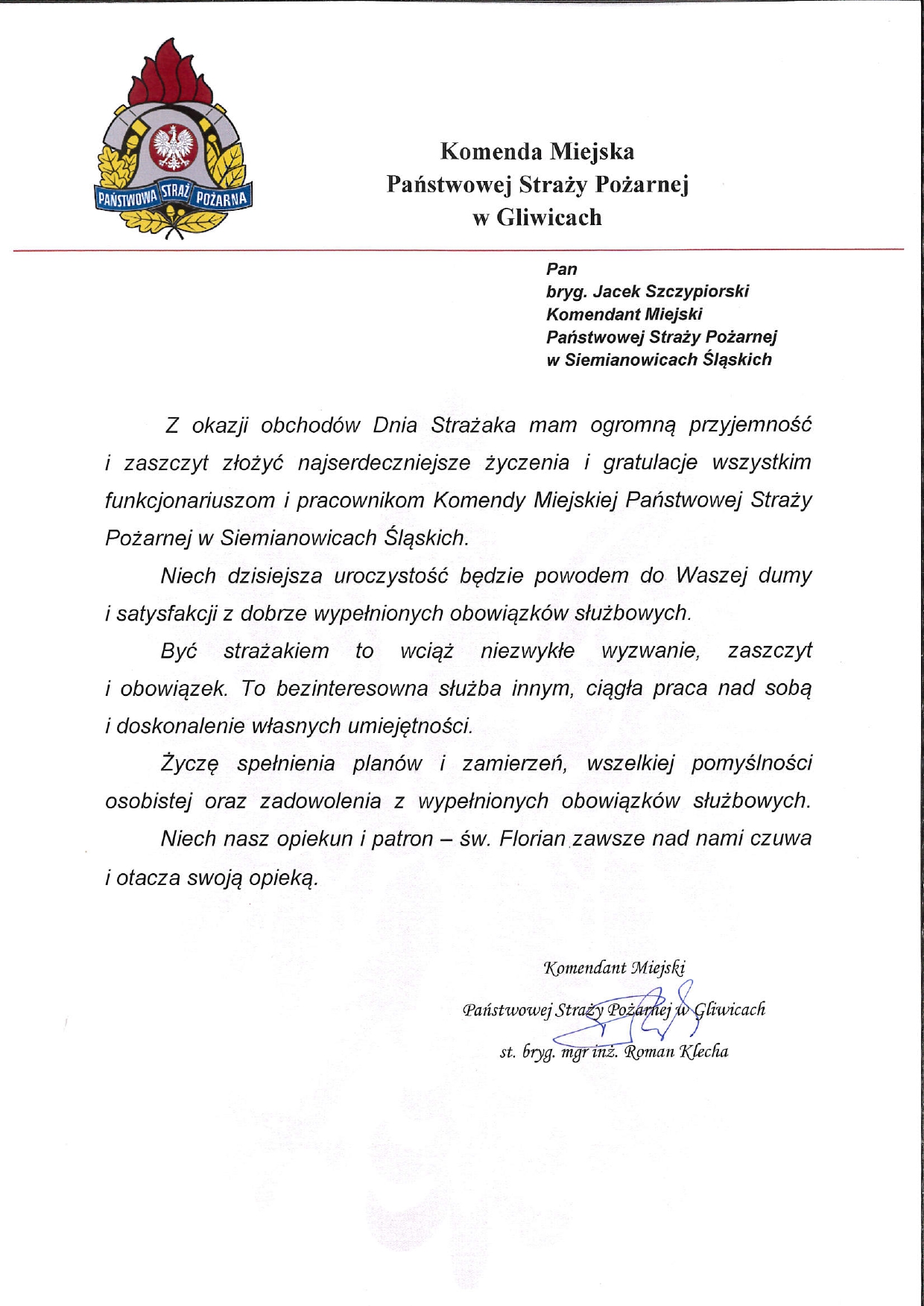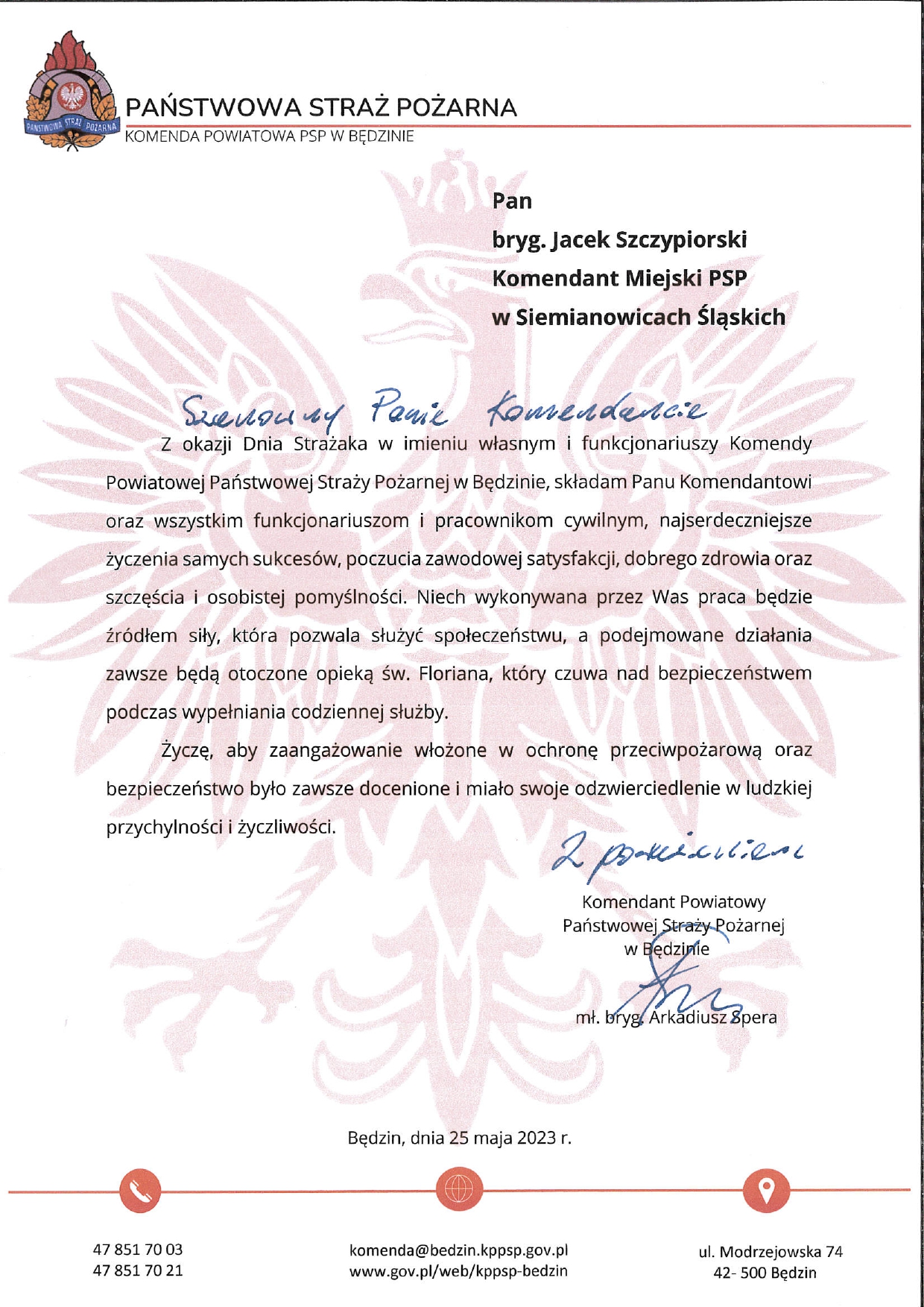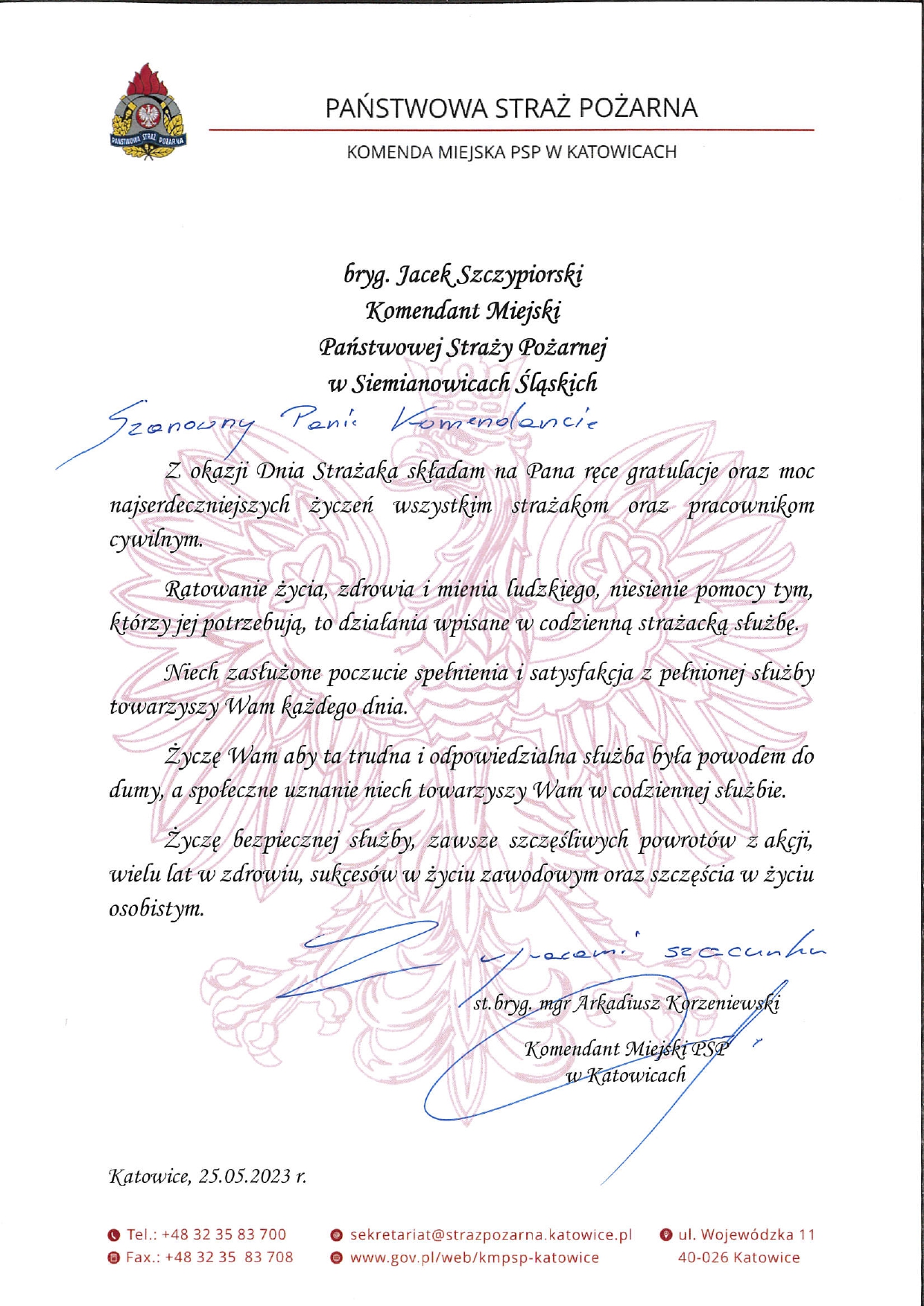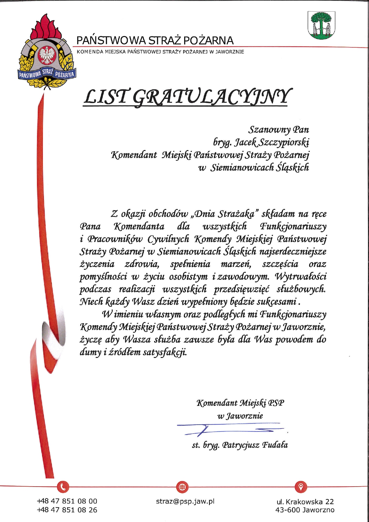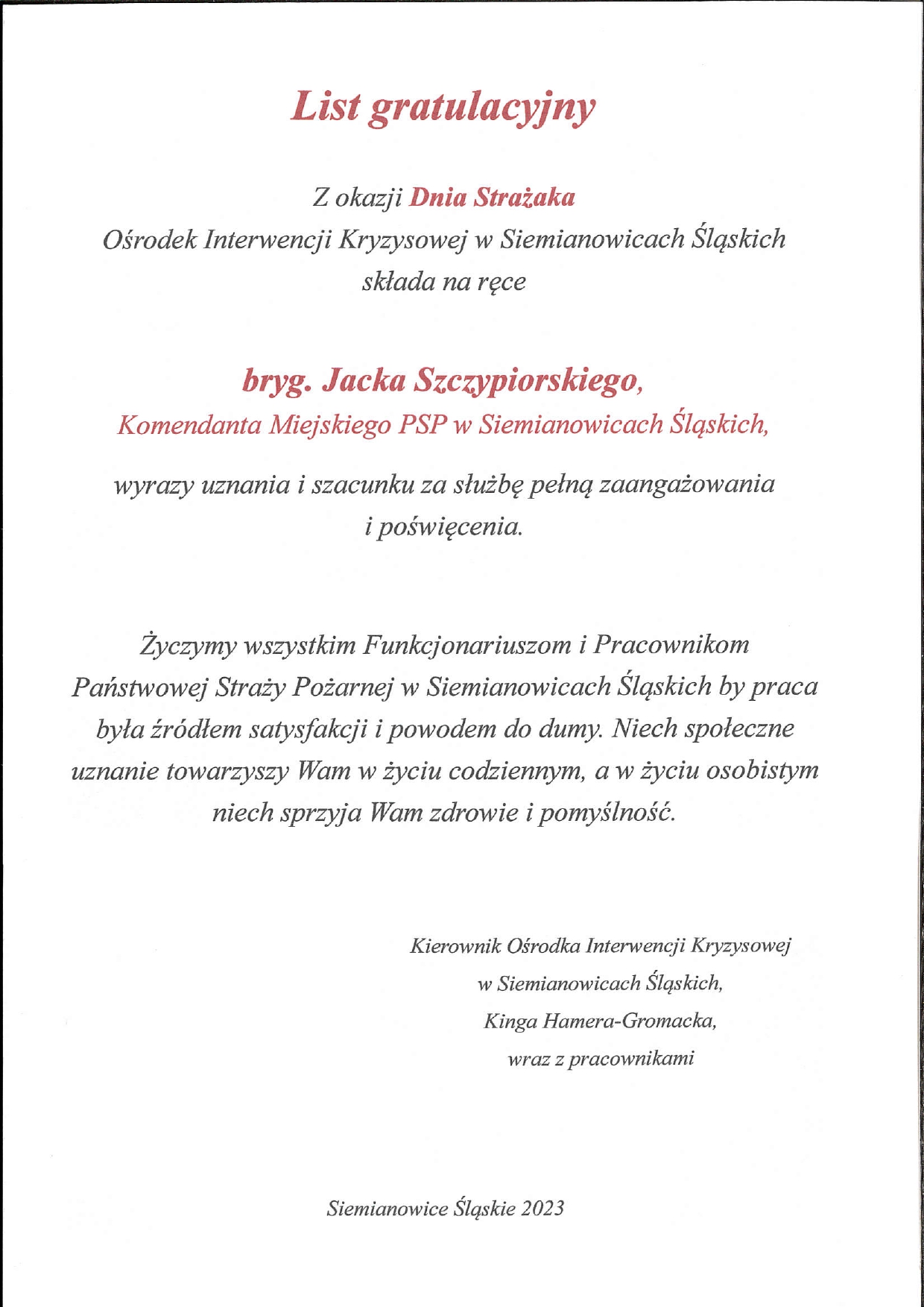 Dyplomy, życzenia oraz listy gratulacyjne otrzymane na dzień strażaka