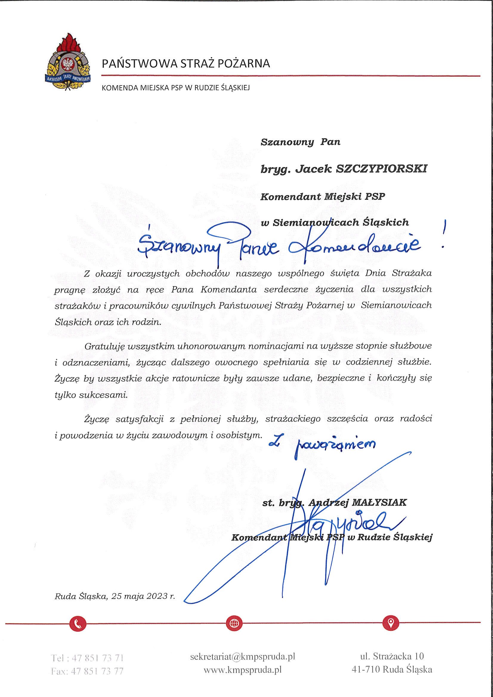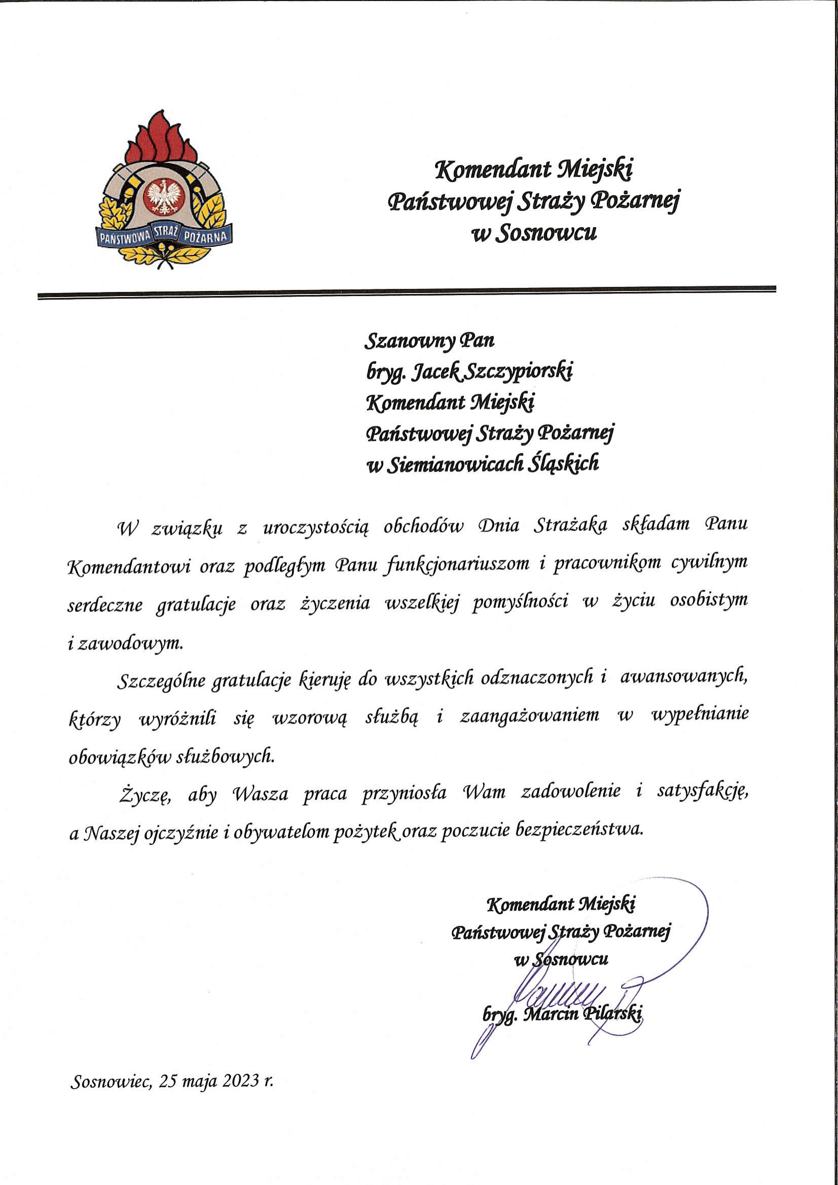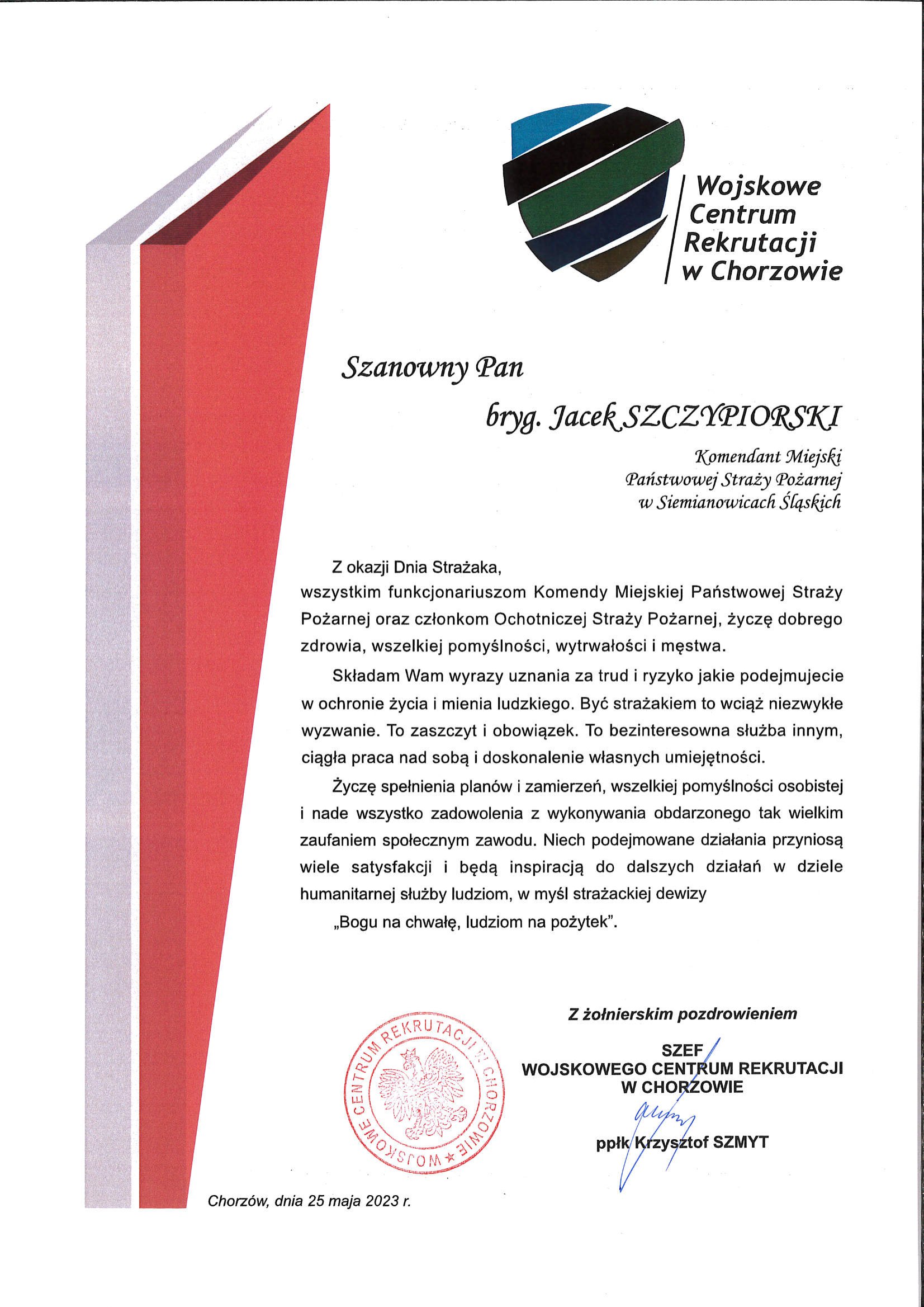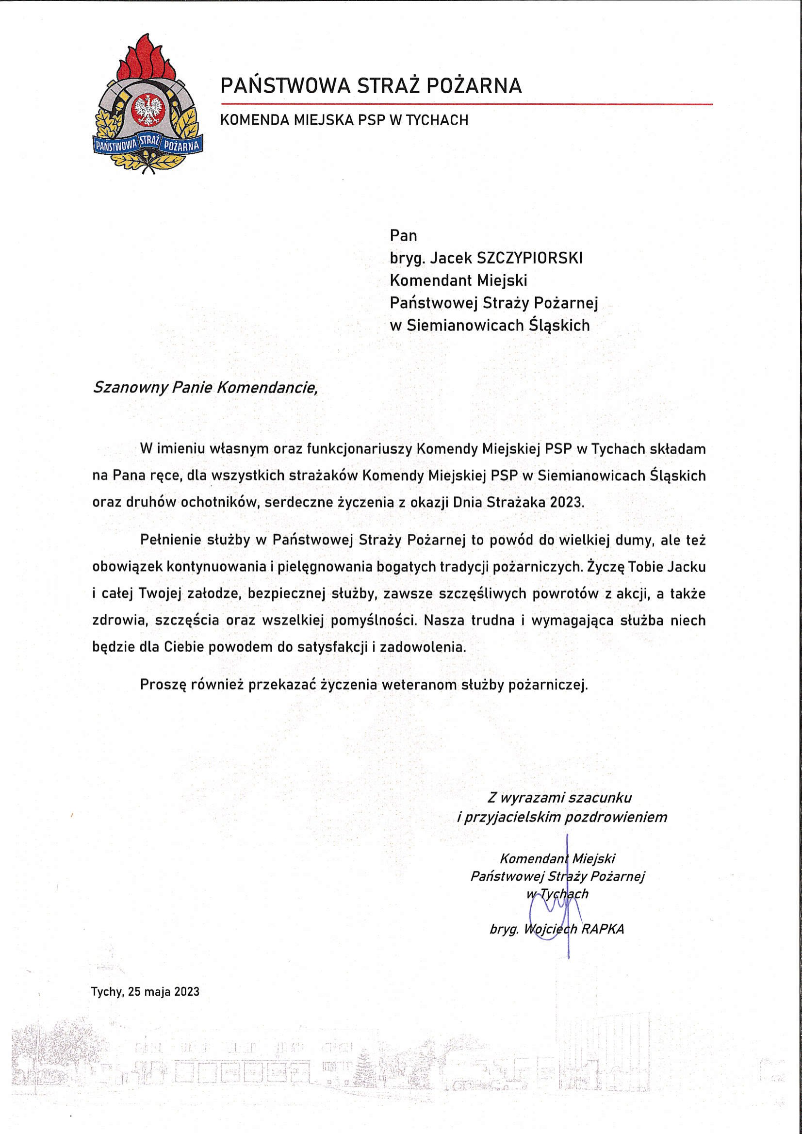 Dyplomy, życzenia oraz listy gratulacyjne otrzymane na dzień strażaka