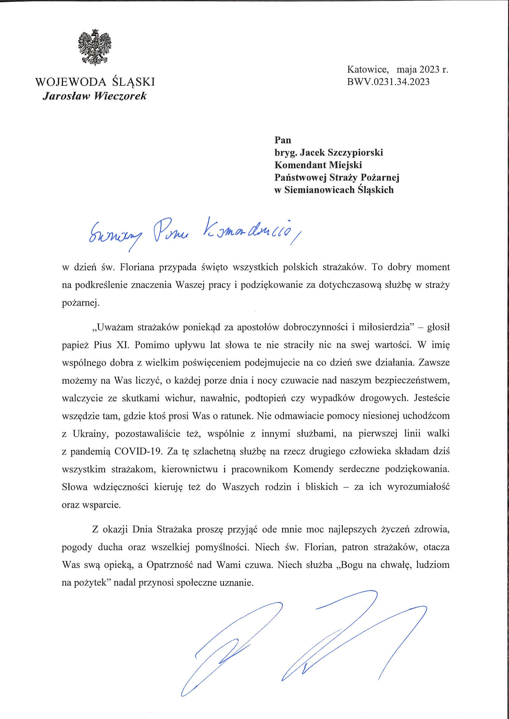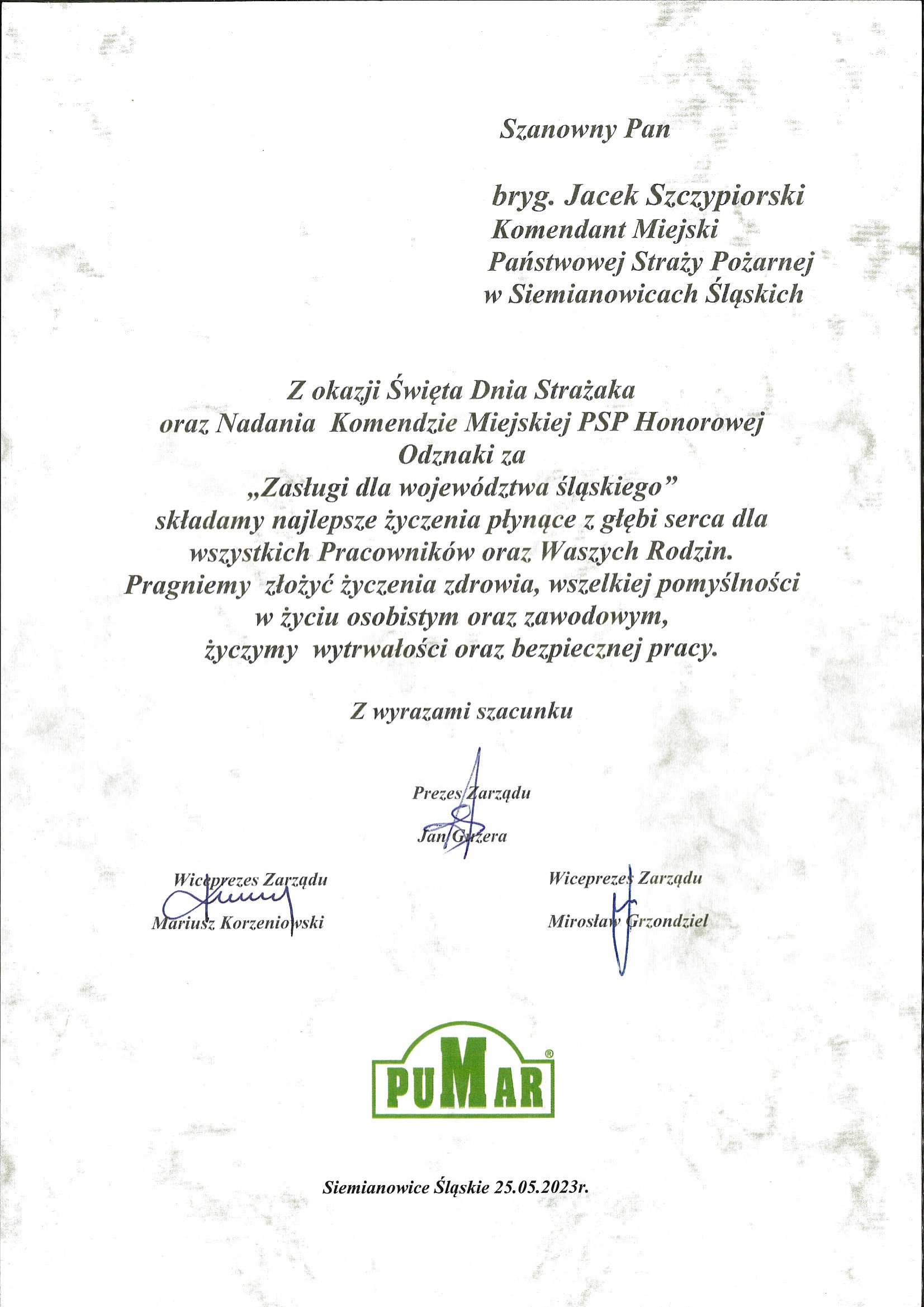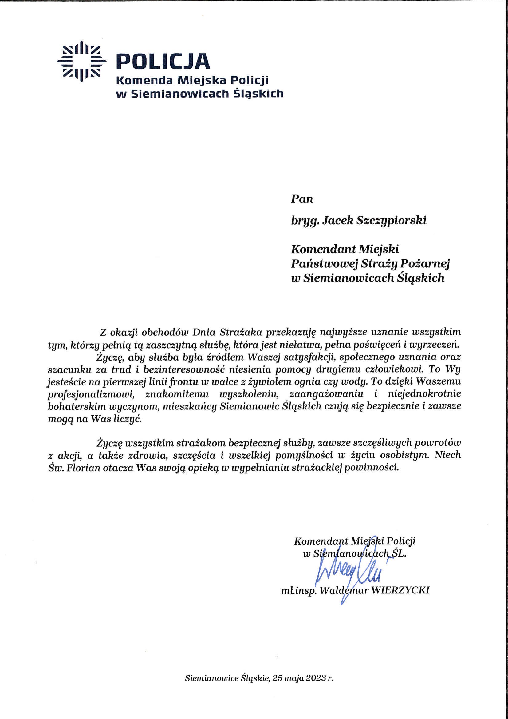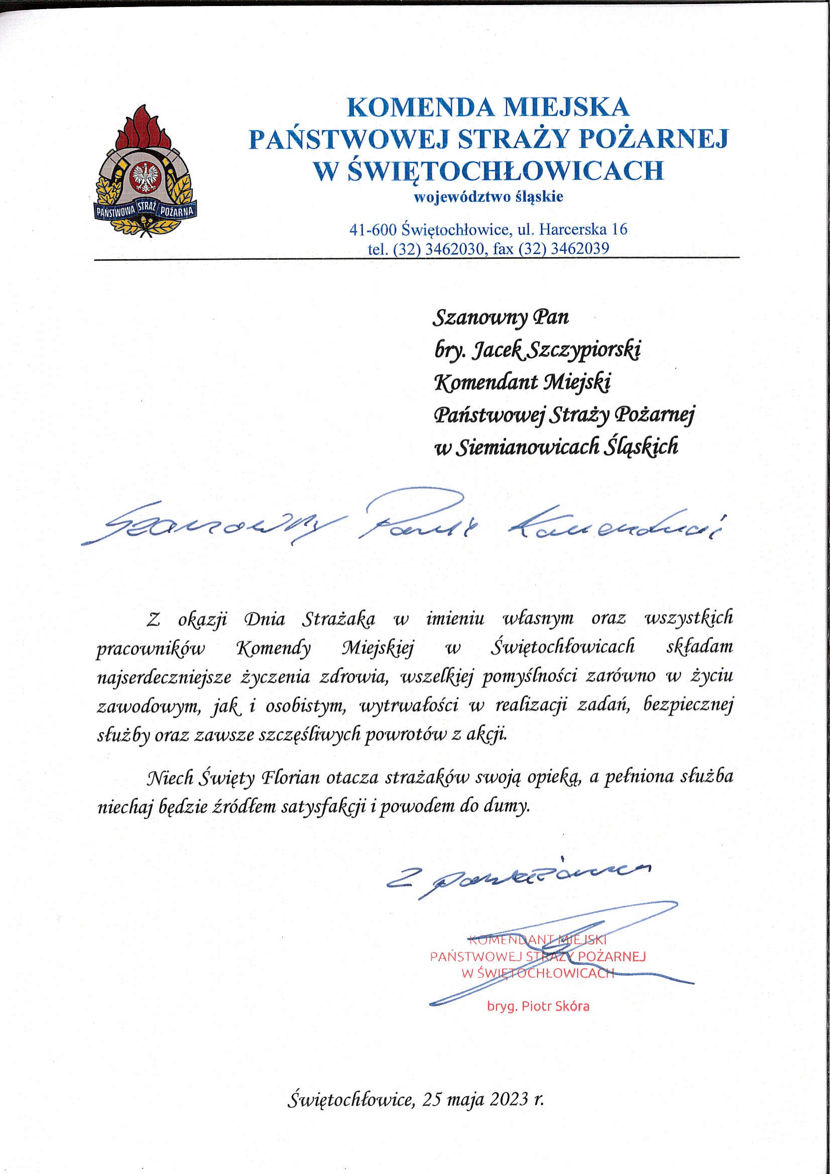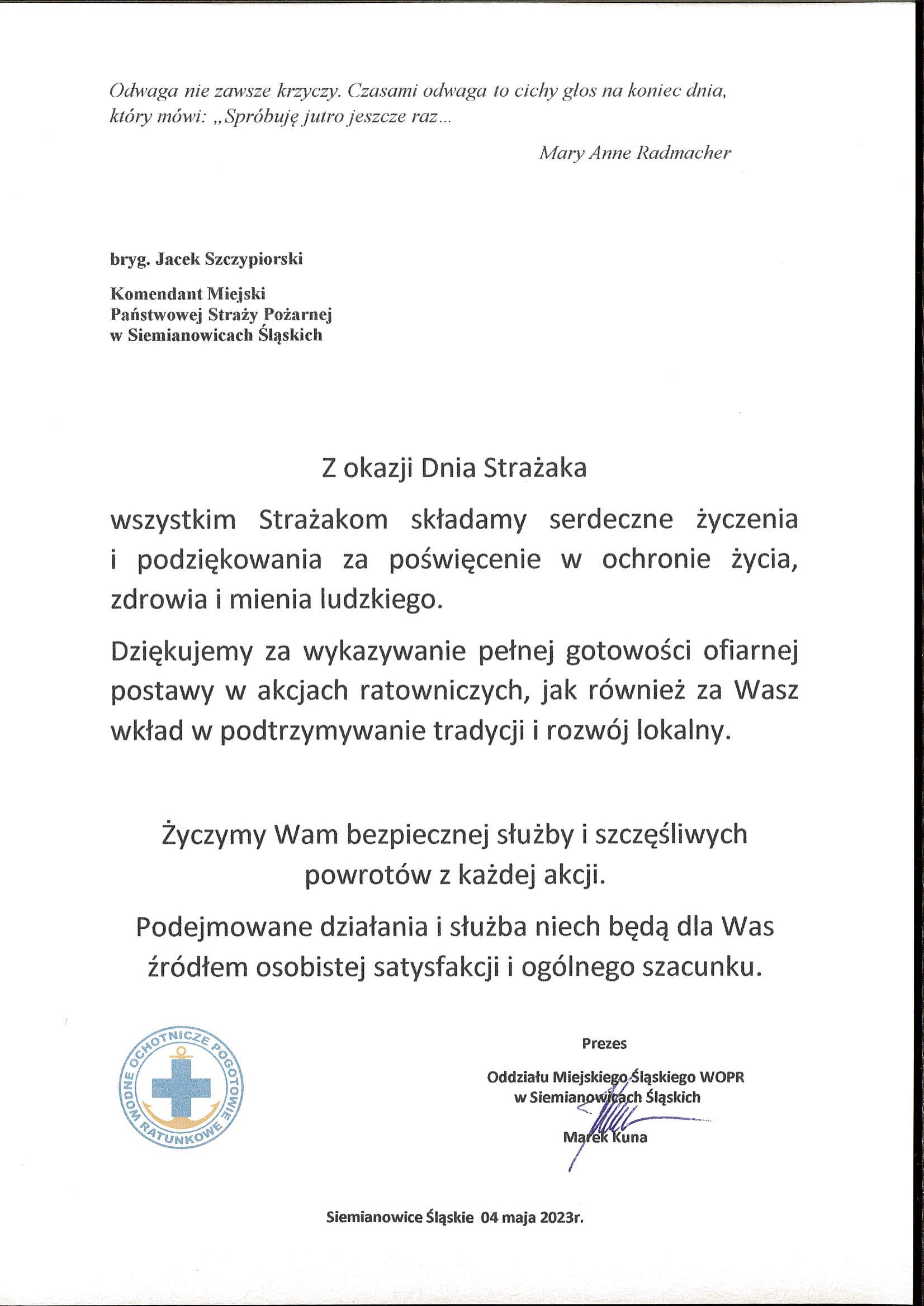 Dyplomy, życzenia oraz listy gratulacyjne otrzymane na dzień strażaka