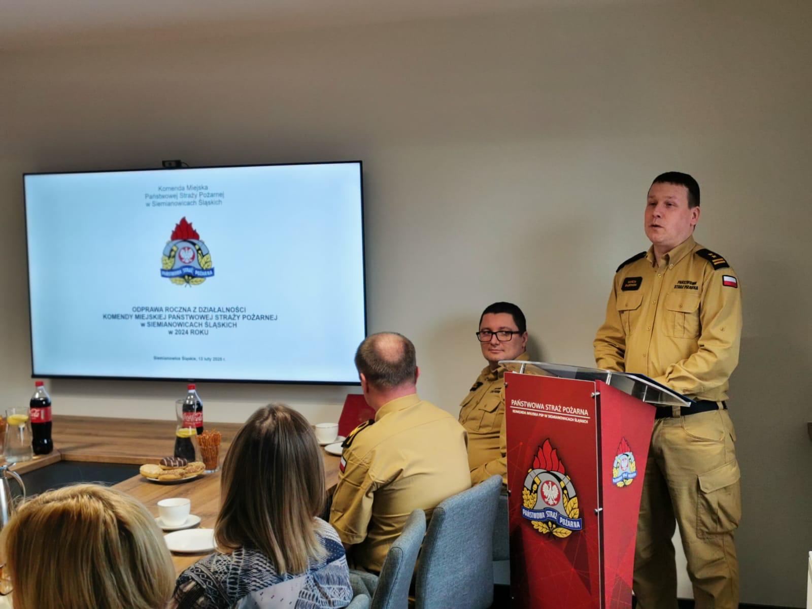 Odprawa roczna podsumowująca działalność Komendy Miejskiej Państwowej Straży Pożarnej w Siemianowicach Śląskich w 2024 roku.