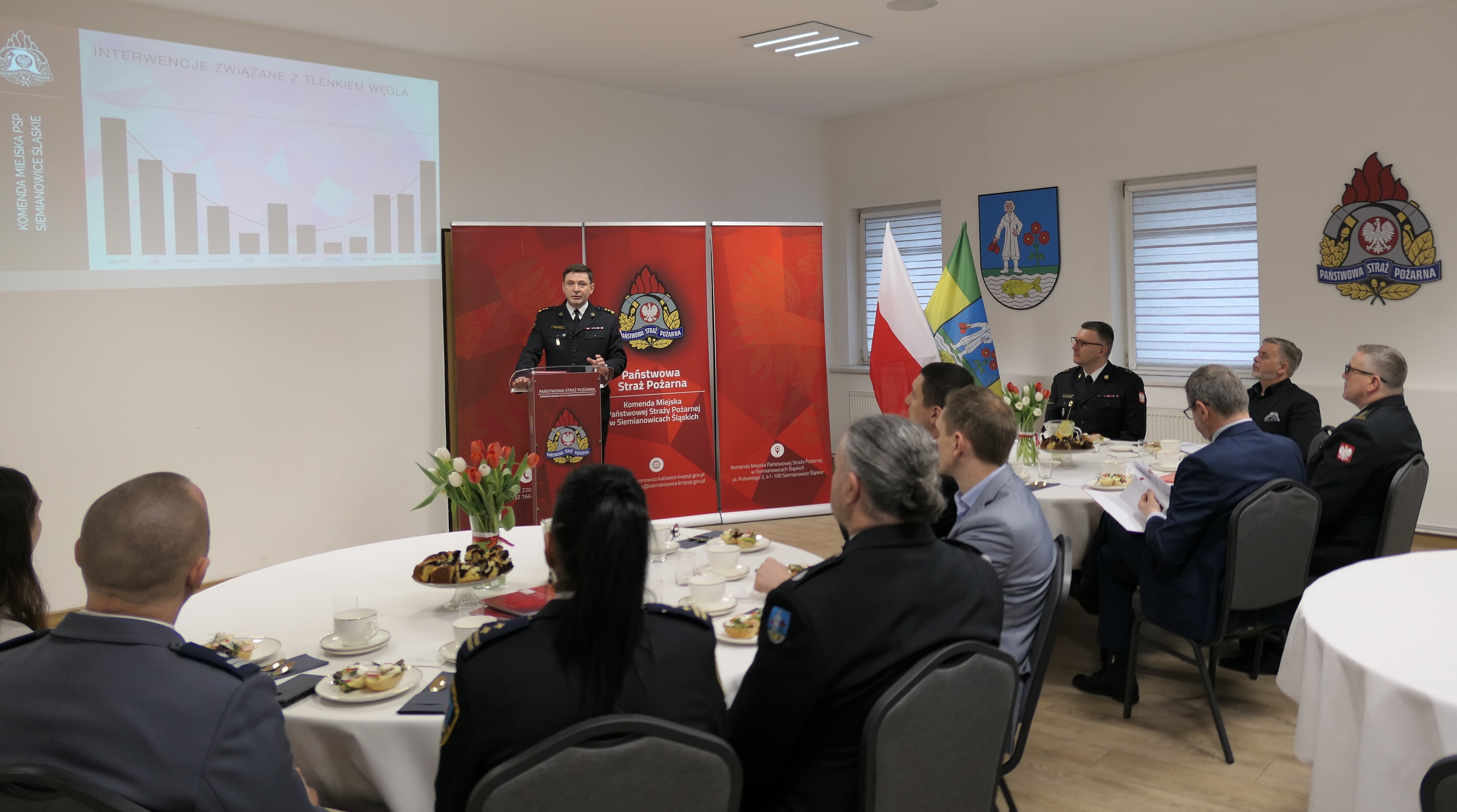 W trakcie spotkania Komendant Miejski PSP w Siemianowicach Śląskich bryg. Jacek Szczypiorski zaprezentował dane dotyczące działalności komendy w roku ubiegłym, z uwzględnieniem ilości i rodzaju podejmowanych działań przez strażaków jednostki ratowniczo-gaśniczej. Ponadto przedstawił zagadnienia z działalności operacyjno-szkoleniowej, logistycznej, kontrolno-rozpoznawczej, działalności w ramach prewencji społecznej, a także współpracy z jednostką Ochotniczej Straży Pożarnej w Siemianowicach Śląskich.