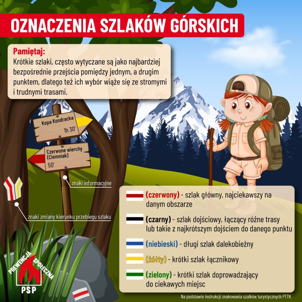 - Zapoznaj się z oznakowaniem szlaków turystycznych (czerwony, niebieski, żółty, zielony, czarny).