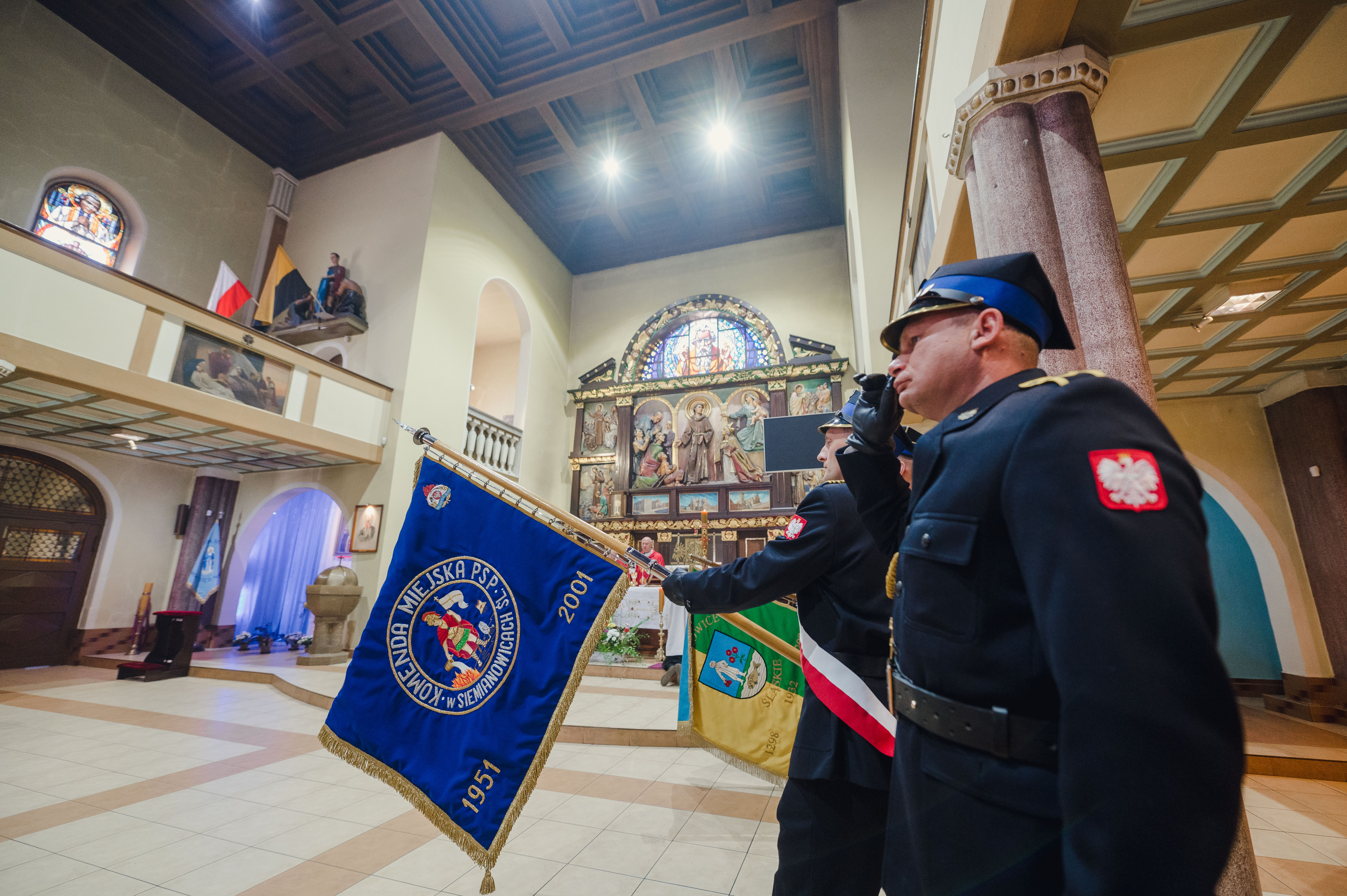 w kościele pw. św. Antoniego z Padwy. Następnie siemianowiccy strażacy złożyli kwiaty pod figurą św. Floriana przy siemianowickim Skwerze Laury.
