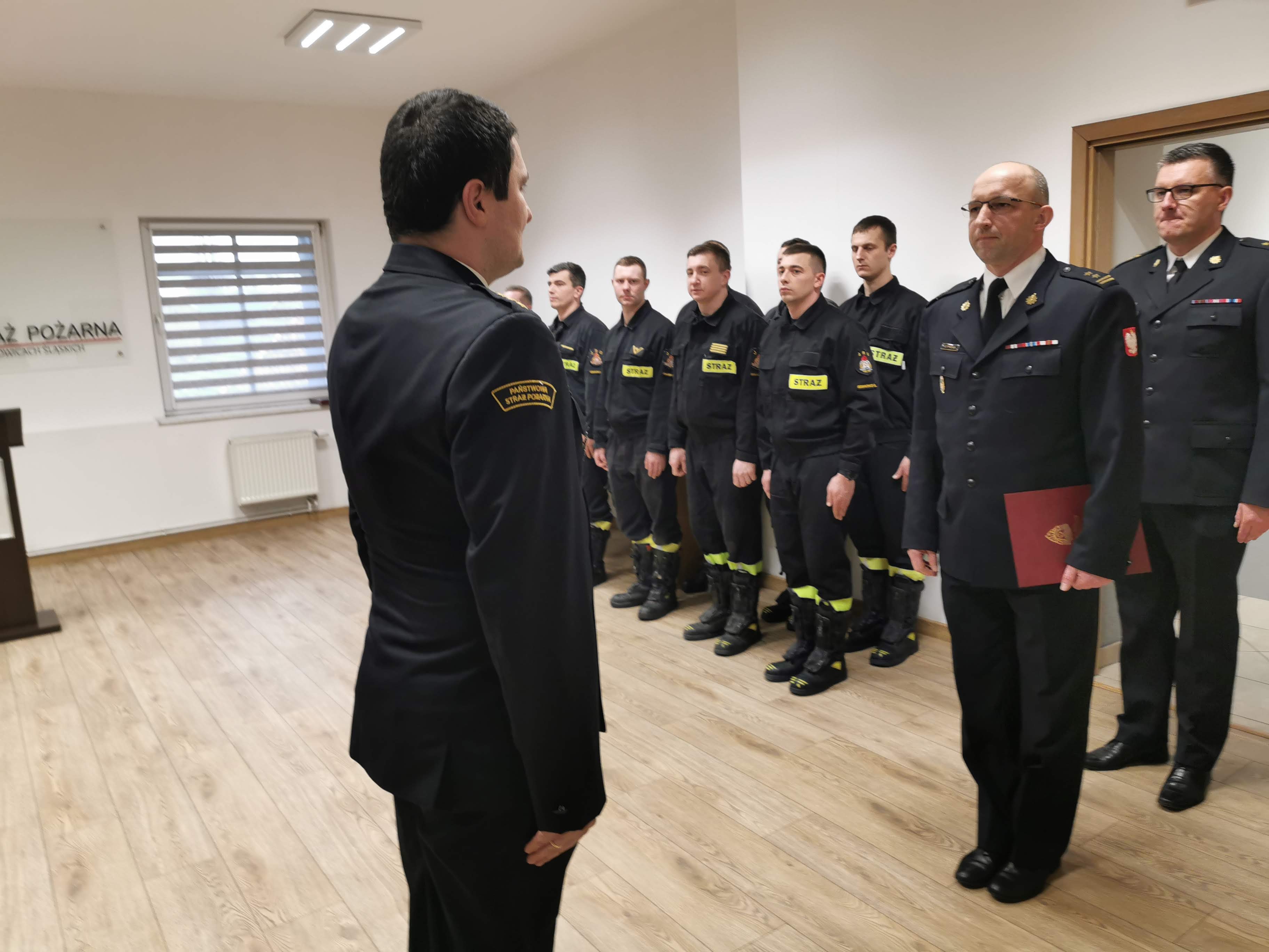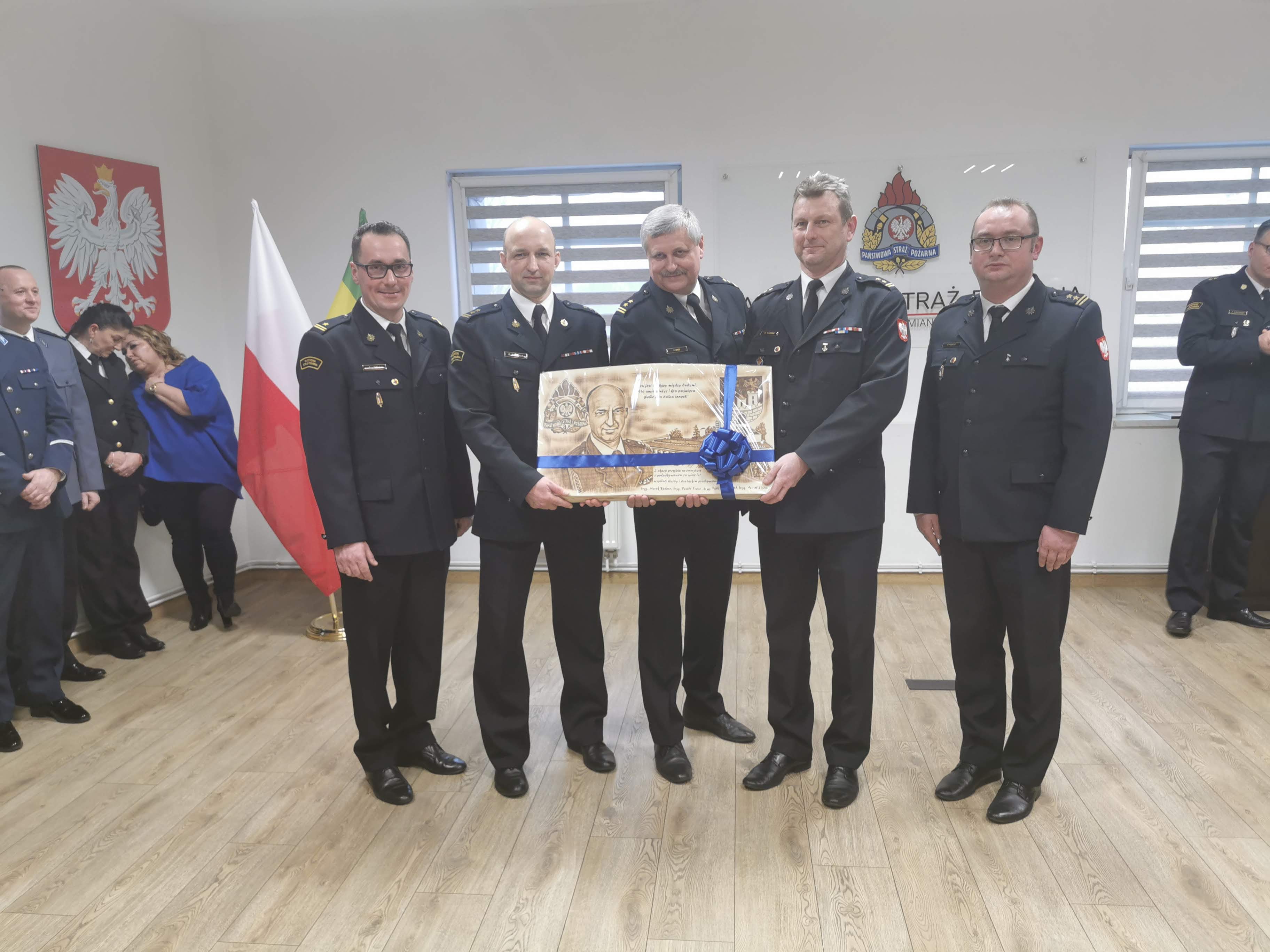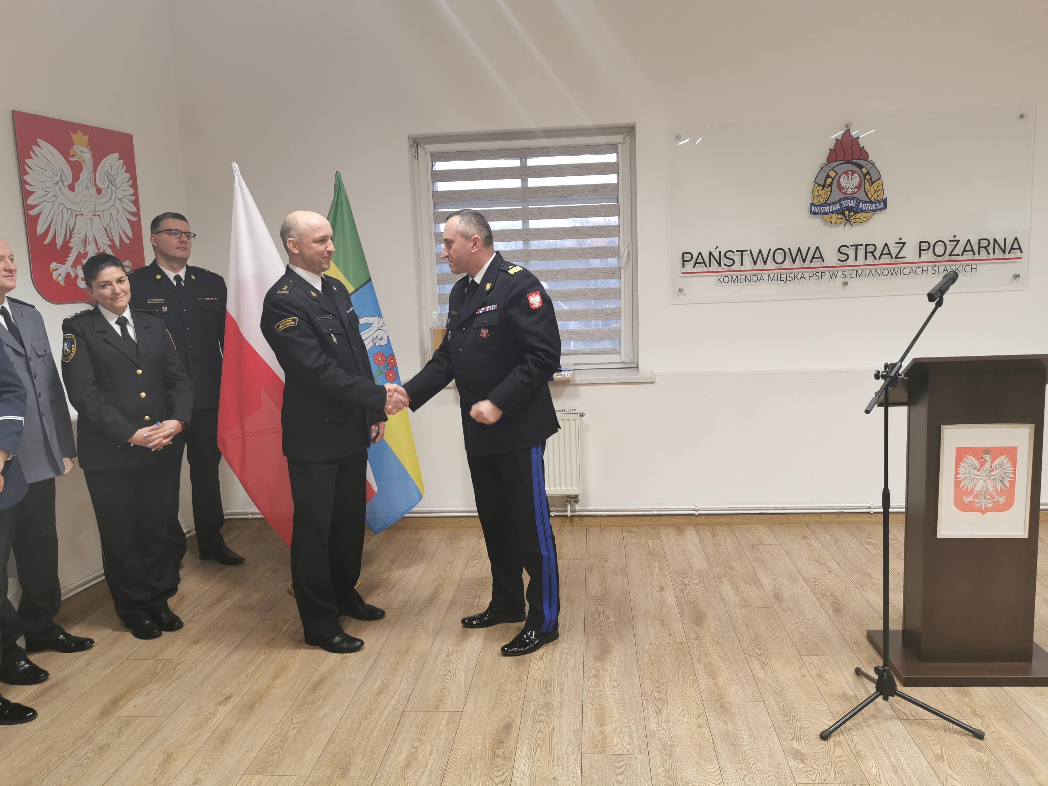 Podczas uroczystości mł. kpt Sebastian Karpiński w imieniu Komendanta Miejskiego PSP w Siemianowicach Śląskich bryg. Jacka Szczypiorskiego przebywającego służbowo poza granicami kraju, odczytał podziękowania z okazji odejścia na zaopatrzenie emerytalne oraz wręczył okolicznościowy dyplom.
