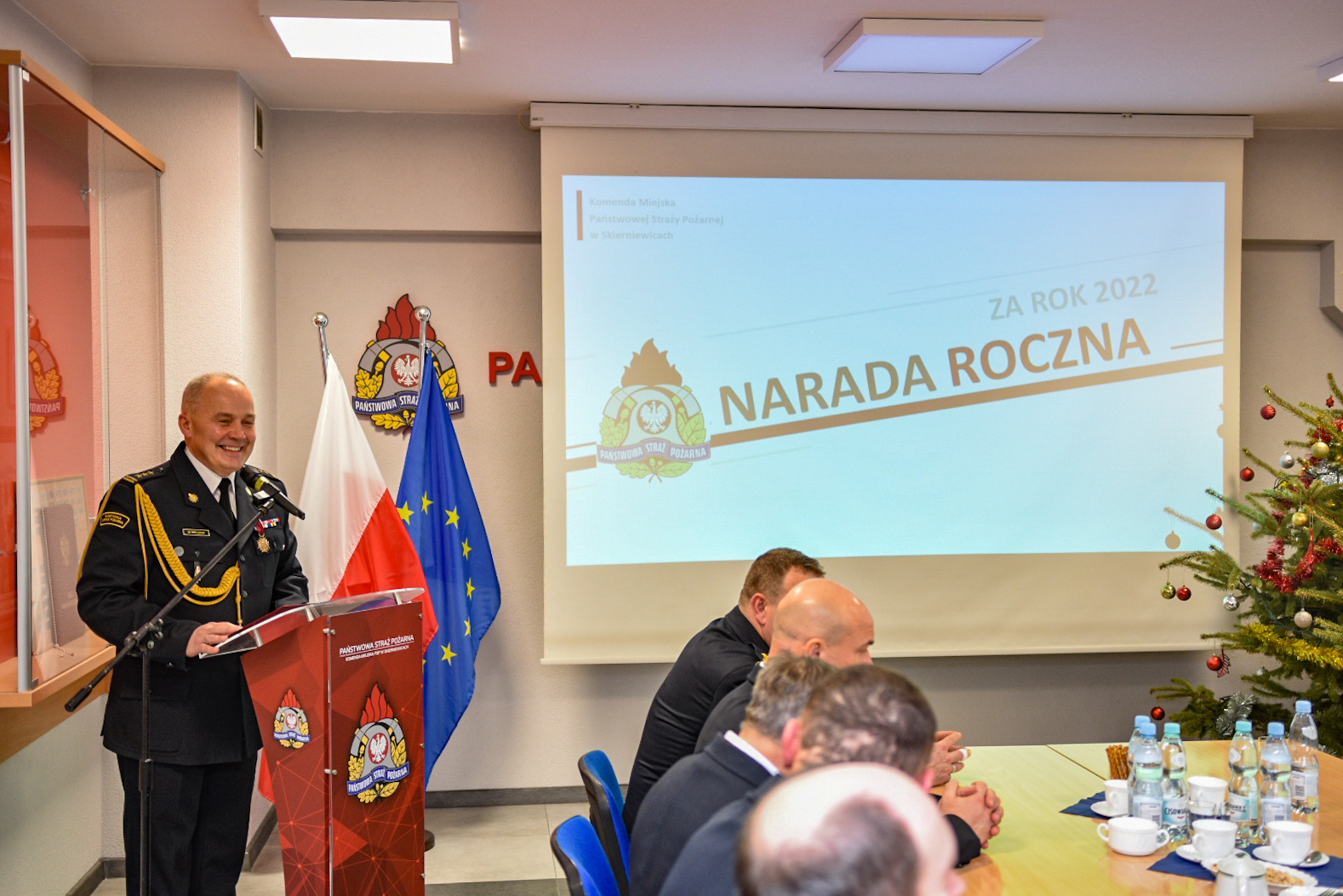 W dniu 03.02.2023 r. odbyła się narada roczna, podsumowująca działalność Państwowej Straży Pożarnej i krajowego systemu ratowniczo – gaśniczego na terenie miasta Skierniewice i powiatu skierniewickiego w 2022 roku, połączona z uroczystą zbiórką z okazji przekazania nowego średniego samochodu ratowniczo – gaśniczego Renault, samochodu specjalnego z drabiną mechaniczną Iveco Magirus dla Komendy Miejskiej Państwowej Straży Pożarnej w Skierniewicach oraz średniego samochodu ratowniczo – gaśniczego Mercedes Atego dla Ochotniczej Straży Pożarnej w Żelaznej.
