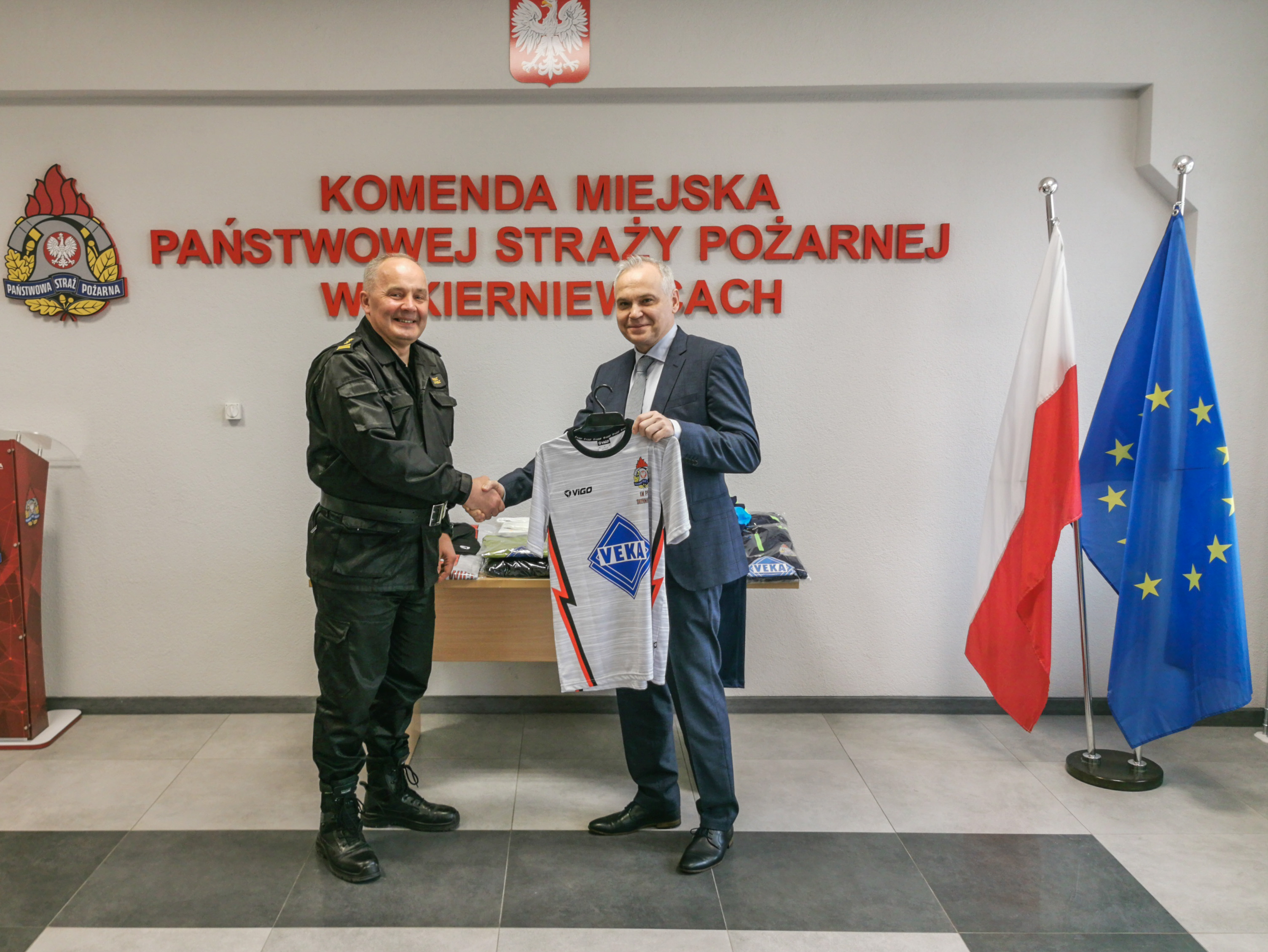 W dniu 15.03.2022 r. odbyło się przekazanie zakupionych w 2021 roku przez spółkę Veka Polska sp. z o. o. strojów sportowych dla zawodników reprezentujących nasza Komendę w zawodach sportowych. Przekazania dokonał Prezes Zarządu spółki Paweł Ciepły. Przekazano 16 kompletów strojów.