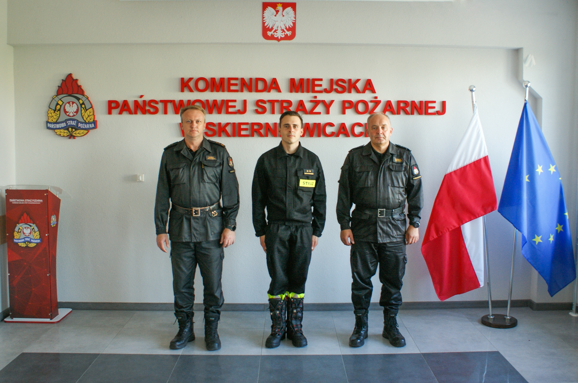 Od dnia 01.07.2021 r. służbę w komendzie podjął tegoroczny absolwent studiów II stopnia w Szkole Głównej Służby Pożarniczej mł. kpt. mgr inż. Michał Wojtkiewicz. Podczas zmiany służby Komendant Miejski PSP w Skierniewicach st. bryg. Mariusz Wielgosz wręczył mianowanemu oficerowi decyzję personalną. Młodszy kapitan Michał Wojtkiewicz będzie pełnił służbę na drugiej zmianie w jednostce ratowniczo - gaśniczej w Skierniewicach na stanowisku absolwent-oficer.