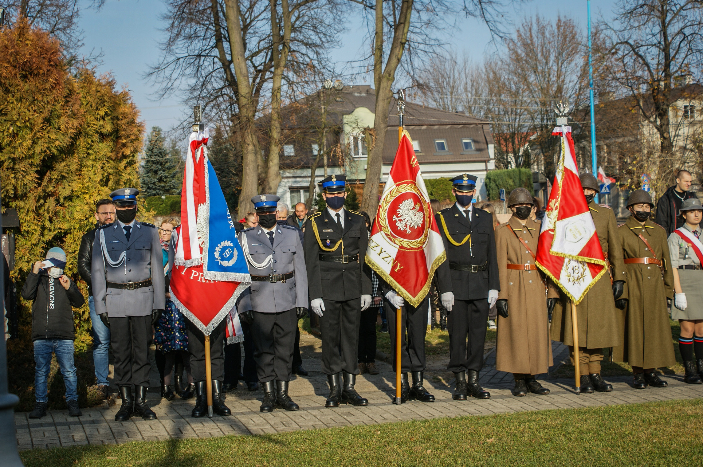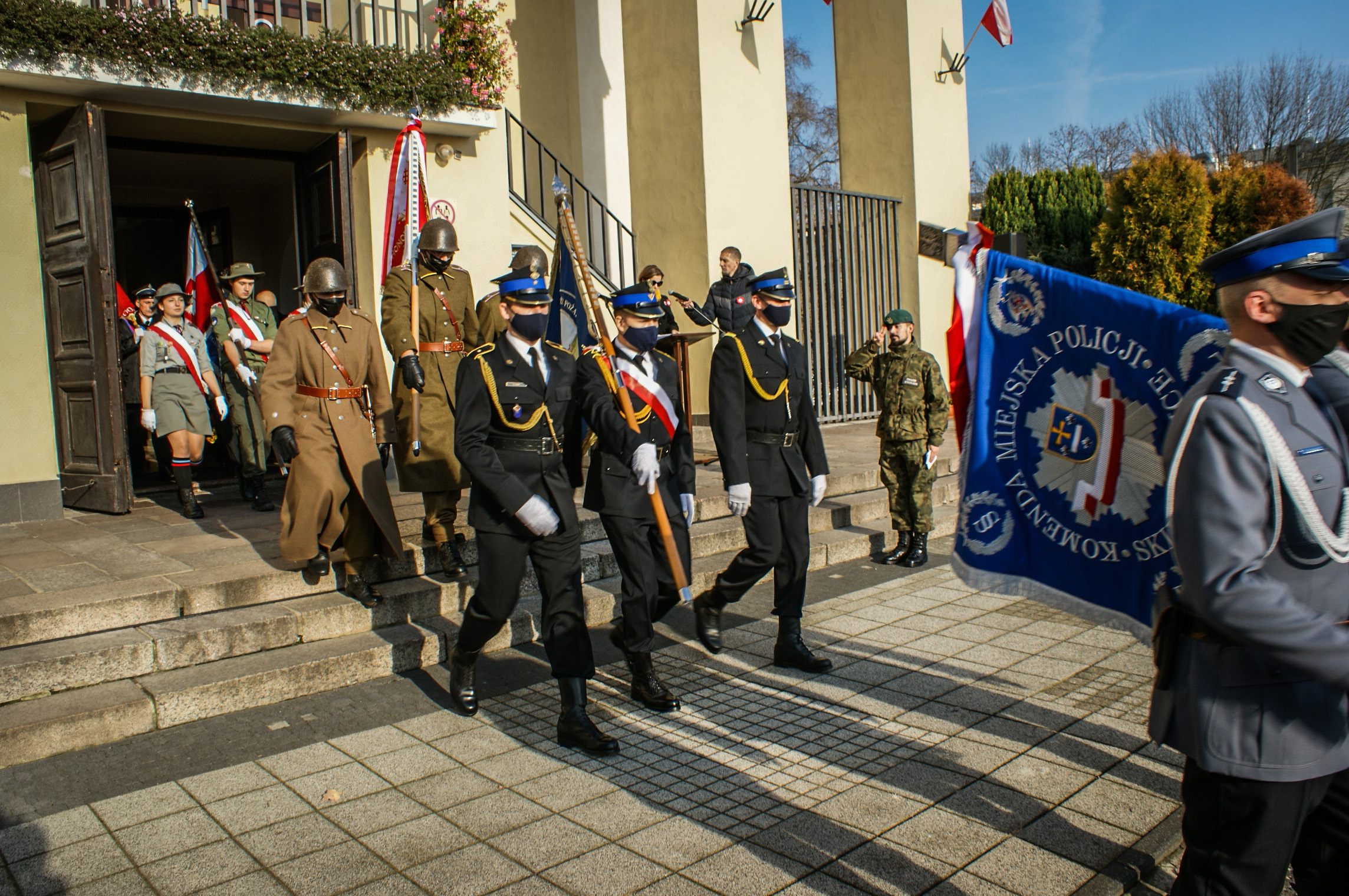 Obchody Święta Niepodległości w Skierniewicach z udziałem Komendanta Miejskiego Państwowej Straży Pożarnej w Skierniewicach st. bryg. Mariusza Wielgosza oraz Zastępcy Komendanta Miejskiego Państwowej Straży Pożarnej w Skierniewicach bryg. Roberta Gruchałę. Jak co roku poczet sztandarowy oraz delegacja brały udział w obchodach miejskich na placu św. Jana Pawła II.
