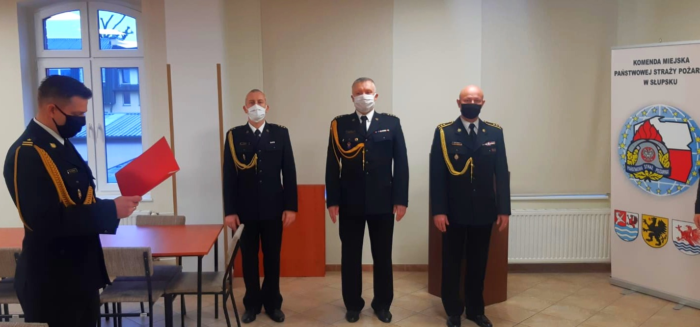 Ze względu na panującą sytuację epidemiczną nominacje w imieniu pomorskiego komendanta wojewódzkiego PSP w obecności dowódców jednostek ratowniczo-gaśniczych wręczył komendant miejski PSP w Słupsku mł. bryg. Krzysztof Trocki.