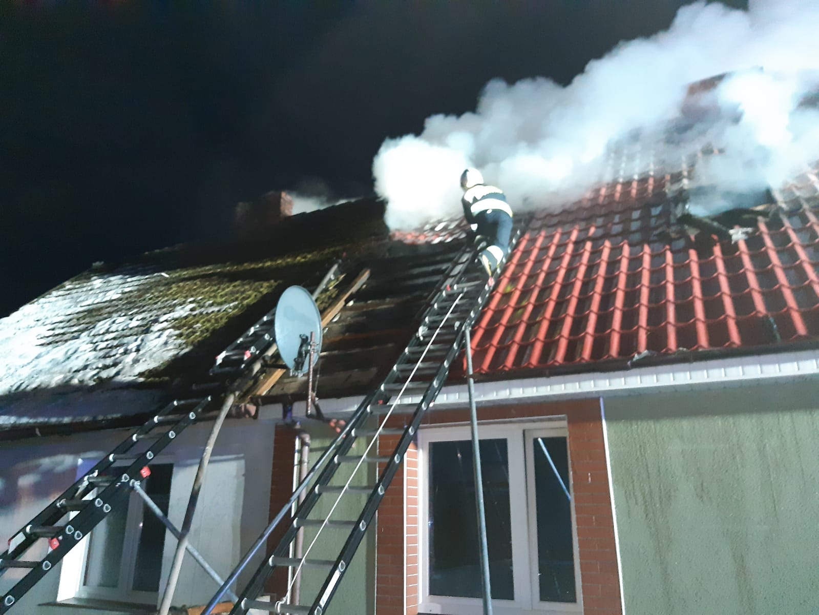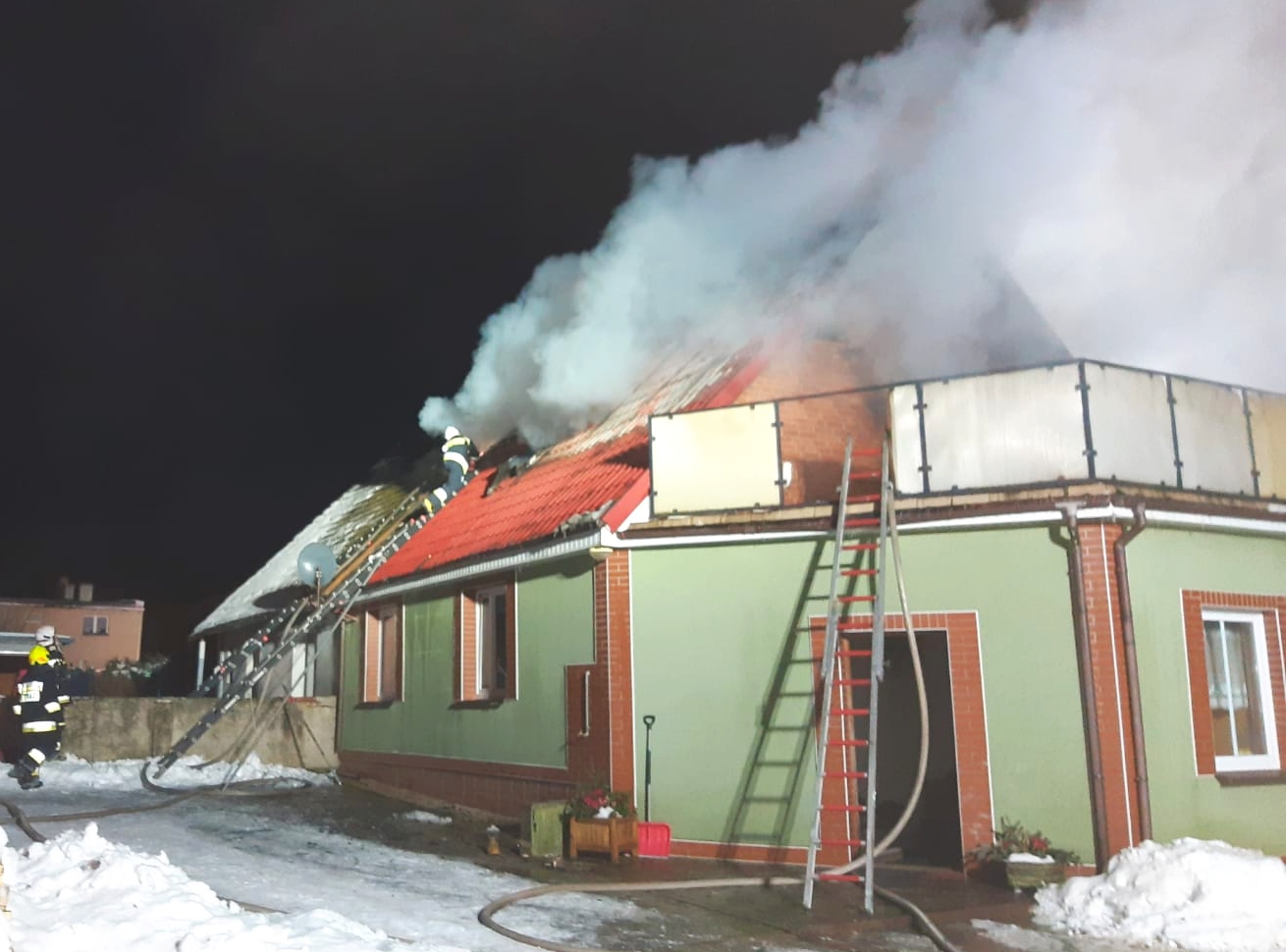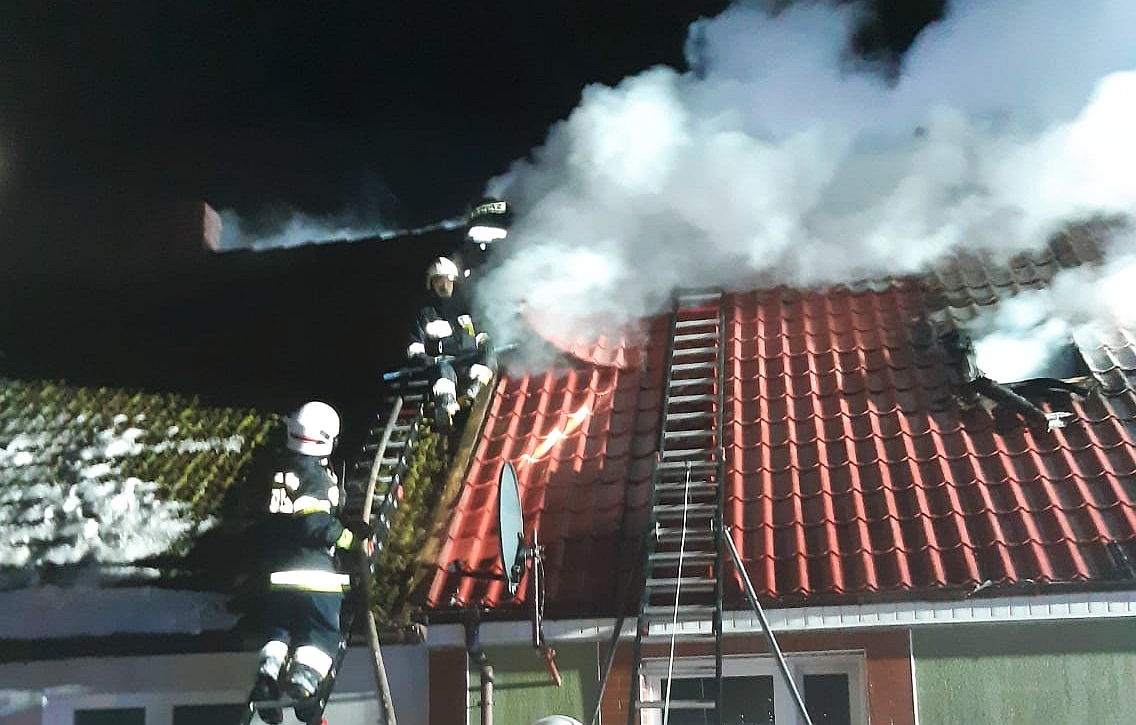 i skutecznym działaniom gaśniczym żywioł rozprzestrzenił się jedynie w obrębie poddasza. W trakcie akcji z obiektu wyniesiono 2 butle z gazem. Po zakończeniu akcji ponownie przeszukano obiekt i zabezpieczono teren pożaru. Obyło się bez osób poszkodowanych. Na tą chwilę nie jest znana przyczyna powstania zdarzenia.