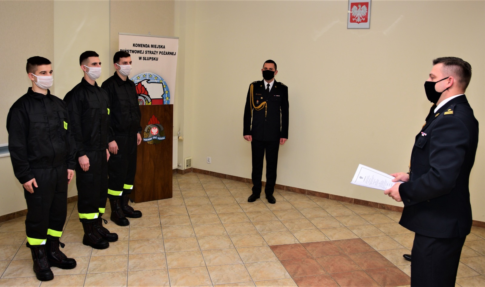 8 grudnia 2020 r. w siedzibie Komendy Miejskiej PSP w Słupsku odbyło się ceremonia złożenia ślubowania przez trzech funkcjonariuszy PSP : Jana Cymermana, Adriana Jałochę i Janusza Ogonowskiego.