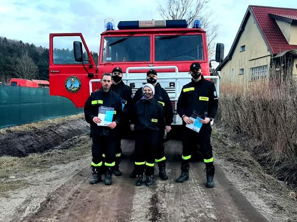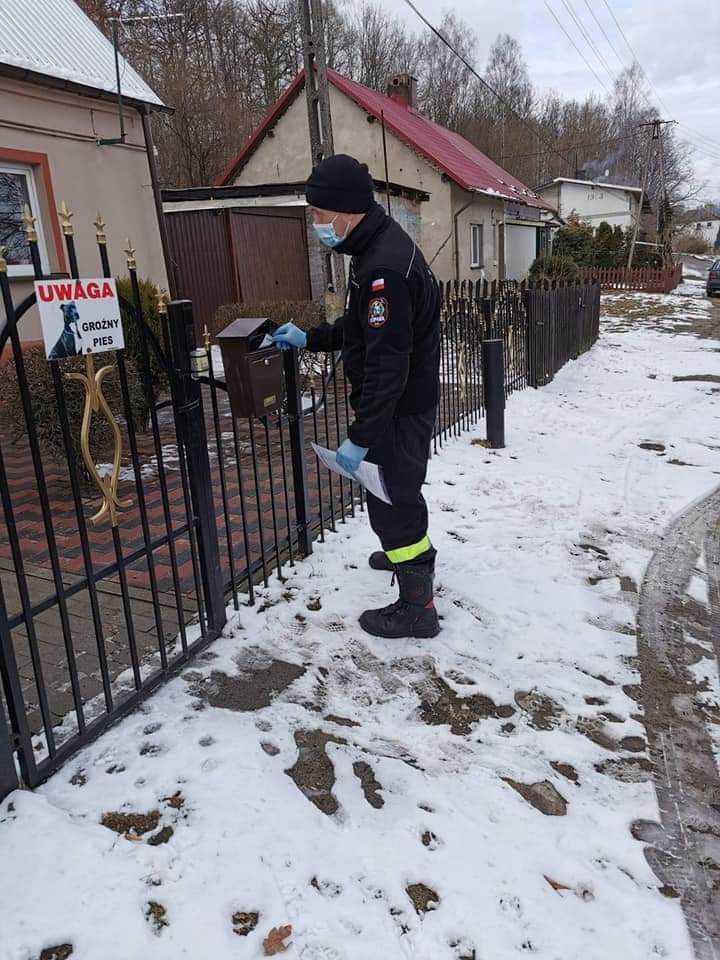 STRAŻACY ROZPOCZĘLI KOLPORTAŻ ULOTTEK INFORMACYJNYCH MA TEMAT PROFILAKTYKI ORAZ SZCZEPIEŃ PRZECIWKO COVID-19