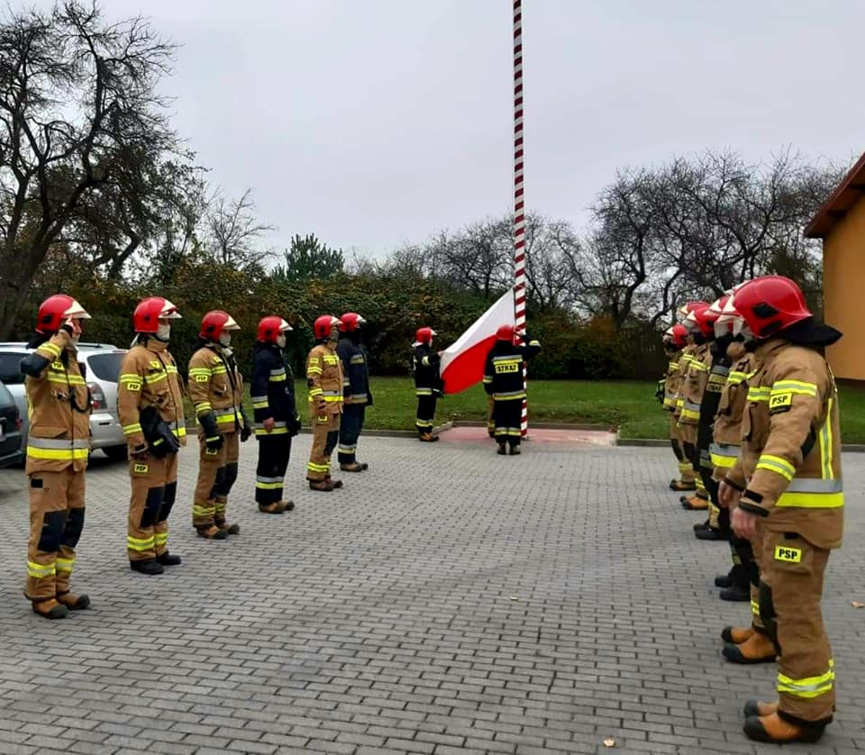 Jak co roku upamiętniono w KM PSP w Słupsku święto 11 listopada. W jednostkach ratowniczo-gaśniczych uroczyście podniesiono flagi państwowe na maszty. Strażacy odśpiewali także hymn państwowy.