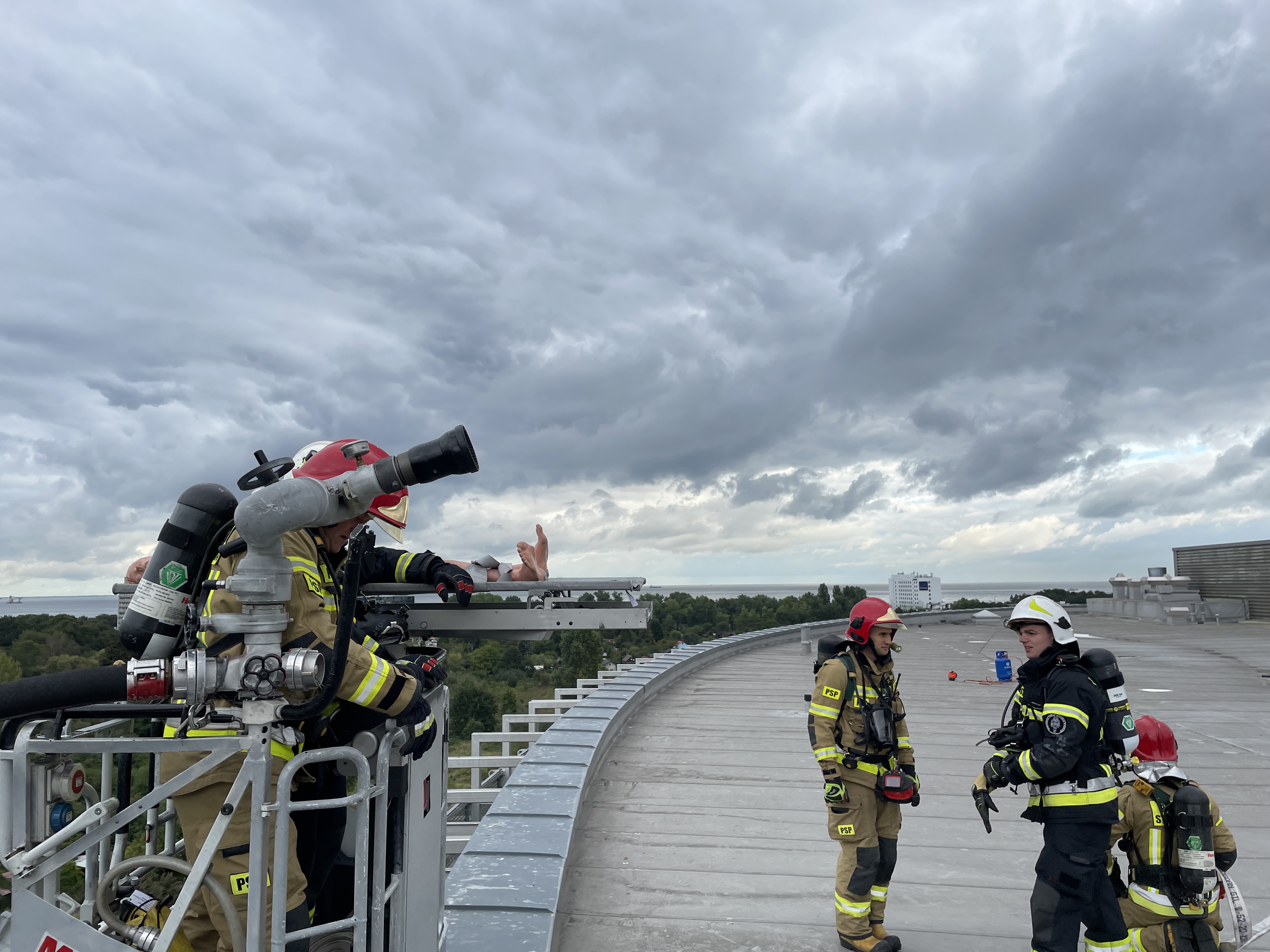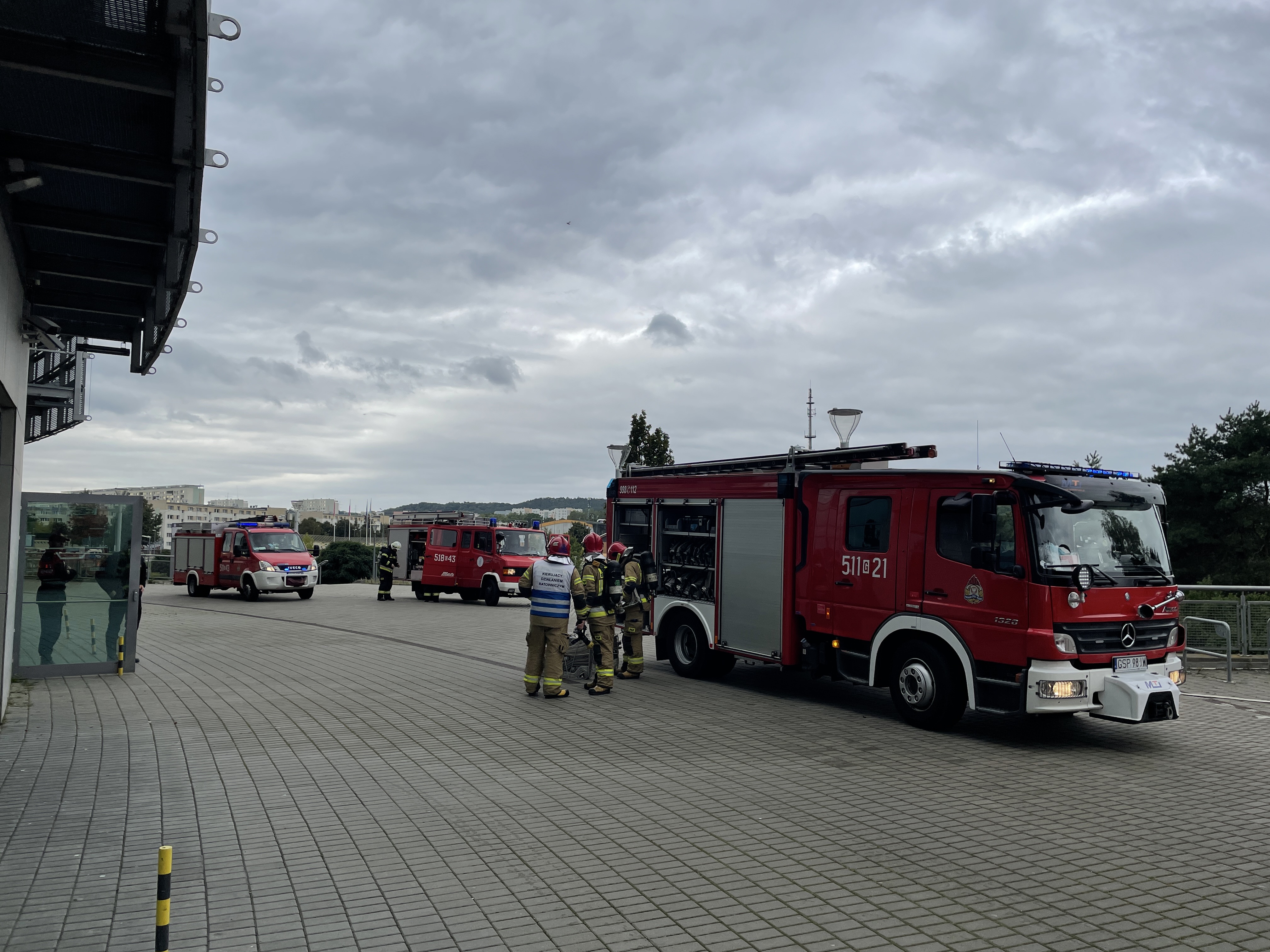 Hala WIdowiskowo Sportowa Ergo Arena położona na granicy Sopotu i Gdańska, to obiekt o rozbudowanym i skomplikowanym rozkładzie pomieszczeń. Ponieważ w obiekcie tym może przebywać jednocześnie ok 15 tyś ludzi, jak również ze względu na odbywające się tam liczne imprezy masowe, strażacy jednostek ratowniczo-gaśniczych w Sopocie i Gdańsku oraz strażacy ochotnicy z Sopotu, corocznie przeprowadzją tam wspólne ćwiczenia. W bieżącym roku odbyły się one dla wszystkich zmian służbowych w dniach 20-22 września 2021 r. Założeniem ćwiczeń była ewakuacja poszkodowanego pracownika prowadzącego prace remontowe na dachu obiektu i ugaszenie pożaru. Dodatkowym utrudnieniem było oddziaływanie ognia na butlę z gazem. Po zakończonych ćwiczeniach odbyło się podsumowanie oraz zapozanie z obiektem.