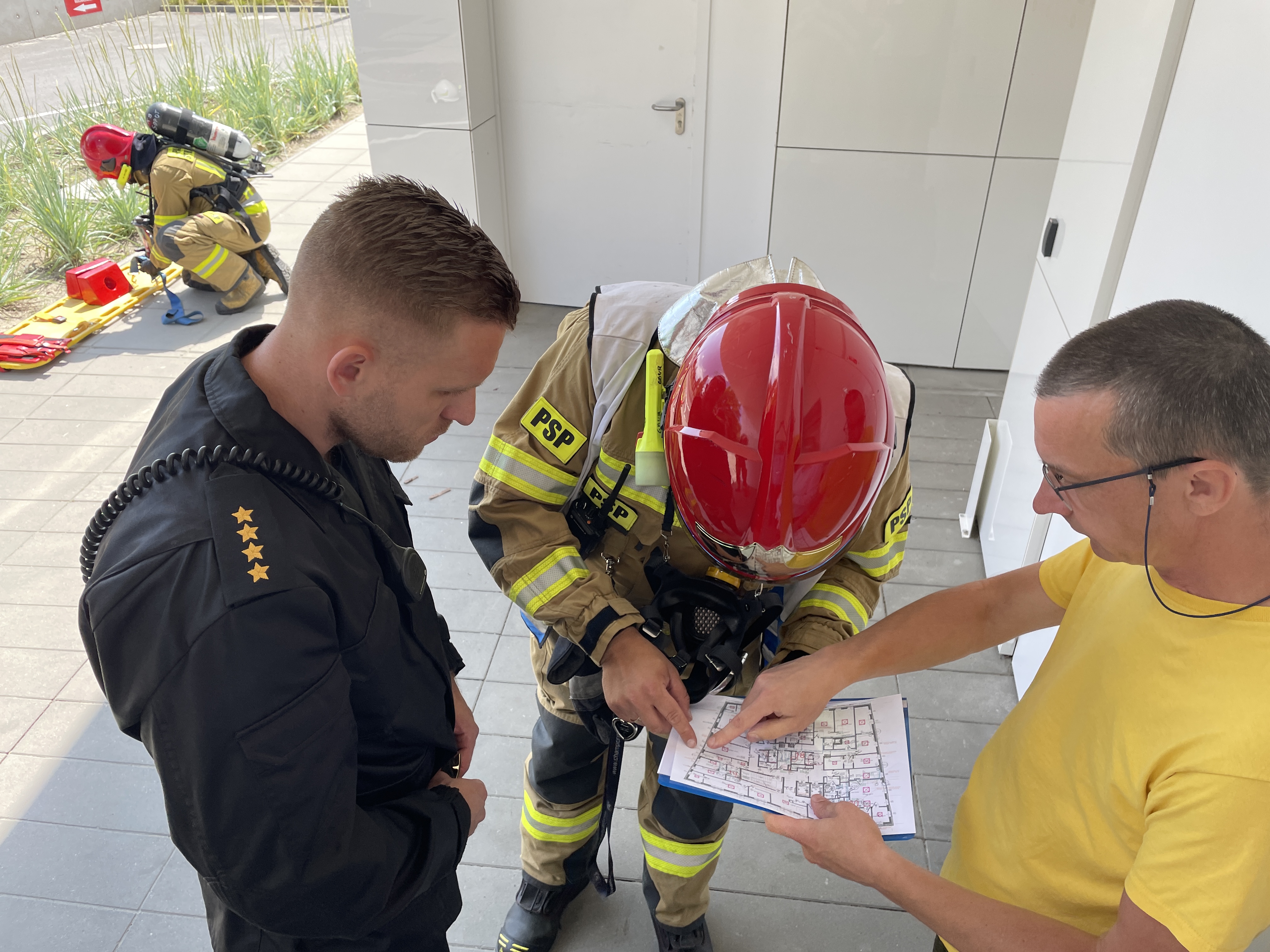 Medyczne Laboratorium Diagnostyczne INVICTA w Sopocie to obiekt o specyficznej formie działalności. Ponieważ w obiekcie tym prowadzone są badania laboratoryjne na próbkach różnego rodzaju materiałów biologicznych czy zakaźnych, przeprowadzone zostały tam ćwiczenia ratowniczo-gaśnicze. Odbyły się one dla wszystkich zmian służbowych jednostki ratowniczo-gaśniczej oraz strażaków ochotników w dniach 28 - 30 czerwca 2021 r. Założeniem ćwiczeń była ewakuacja nieprzytomnego poszkodowanego pracownika, prowadzącego badania laboratoryjne w jednym z pomieszczeń i ugaszenie pożaru. Dodatkowym utrudnieniem było zranienie się ratownika podczas działań w pomieszczeniu laboratorium. Po zakończonych ćwiczeniach odbyło się podsumowanie oraz zapozanie z obiektem.
