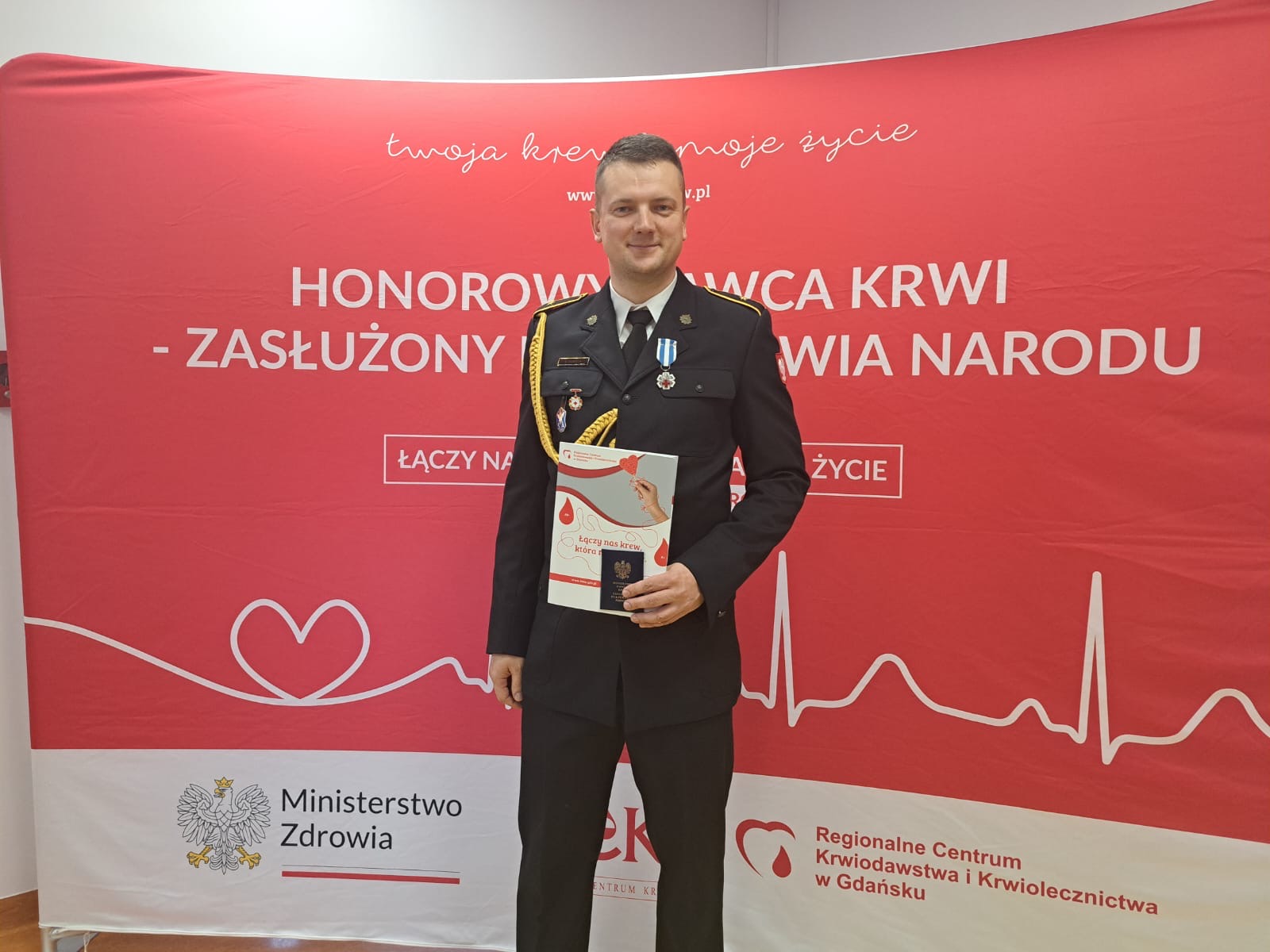 Wśród odznaczonych Honorowych Dawców Krwi znalazł się również funkcjonariusz Komendy Miejskiej Państwowej Straży Pożarnej w Sopocie asp. Daniel Kobiela, który pomoc i ratowanie życia drugiemu człowiekowi "ma we krwi", a Jego postawa i propagowanie szlachetnej idei honorowego krwiodawstwa jest godne naśladowania.