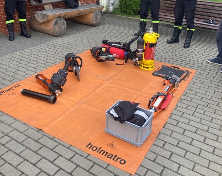 W dniu 15 lipca 2021r. odbył się pokaz sprzętu ratowniczo-gaśniczego będący w ofercie firmy Delta Service. Podczas prezentacji przedstawiciel omówił i pokazał użycie m.in.: