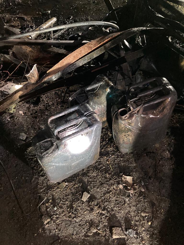 Na miejsce zadysponowano zastępy z jednostki ratowniczo-gaśniczej PSP Sopot oraz OSP Sopot. Po przybyciu na miejsce potwierdzono, że pożarem objeta jest prawdopodobnie altana lub barak. Sprawiono linię gasniczą i przystąpiono do gaszenia pożaru. W trakcie rozpoznania szczegółowego, uzyskano informację od Policji będącej na miejscu przed naszym przybyciem, że wcześniej doszło do wybuchów, a w promieniu kilkudziesięsiu metrów znajdowały się kawałki pogiętych blach. Dokonano zmiany zamiaru taktycznego oraz przegrupowania sił, a następnie przystąpiono do schładzania zlokalizowanych w trakcie gaszenia baraku butli z gazami technicznymi. Po upływie godziny, zgodnie z zachowaniem procedur, przeniesiono całe butle do przygotowanego zbiornika z wodą celem ich dalszego chłodzenia przewidzianego na co najmniej 20 godzin. Dokonano dokładnego przeszukania pogorzeliska oraz przyległego terenu w promieniu ok 100 metrów. Łącznie w spalonym baraku warsztatowym oraz jego pobliżu odnaleziono rozerwane butle z tlenem technicznym -1 szt., acetylenem -1 szt., propan butanem -2 szt. oraz nie uszkodzone butle z propan butanem - 4 szt, CO2 -3 szt. i 3 kanistry z paliwem. W dalszym etapie działań prowadzono dozorowanie miejsca chłodzenia butli, na przemian z jednostką OSP. Działania zakończono po godzinie 21 kolejnego dnia.
