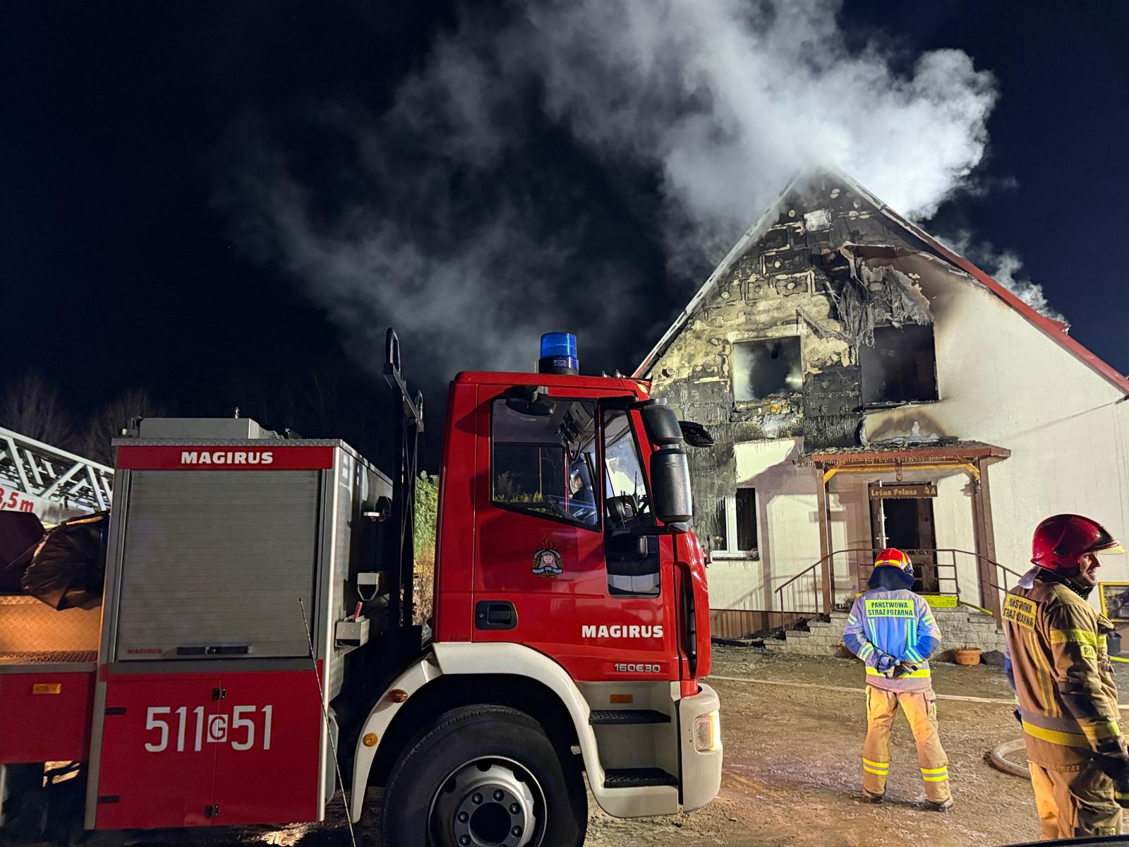 15 lutego 2025 r. o godzinie 18:51 dyżurny SKKM w Sopocie otrzymał zgłoszenie z którego wynikało, że w pokoju na pierwszym piętrze budynku jednorodzinnego na ul. Leśna Polana wybuchł pożar. Po przyjeździe pierwszych zastępów na miejsce zdarzenia KDR zastał w pełni rozwinięty pożar którym objęte było pierwsze piętro oraz poddasze budynku. Z budynku przed przyjazdem JOP ewakuowało się 9 osób. Działania polegały na zabezpieczeniu miejsca akcji, odłączeniu mediów i przystąpienia do gaszenia palącego się obiektu. Podczas działań podano 2 prądy wody w natarciu. Zaopatrzenie wodne było realizowanie poprzez dowożenie. W związku ze zdarzeniem nikt nie potrzebował pomocy medycznej. Dla mieszkańców budynku, którzy ucierpieli w wyniku pożaru Wydział Bezpieczeństwa i Zarzadzania Kryzysowego w Sopocie zapewnił schronienie w jednym z Sopockich hoteli. Do działań zadysponowano 8 zastępów w PSP (25 os.) 2 OSP (9 os.) 2 patrole Policji, 1 Straży Miejskiej i 1 Pogotowia Energetycznego. Łącznie w działania zaangażowane były 42 osoby. Działania trwały 7 godzin.