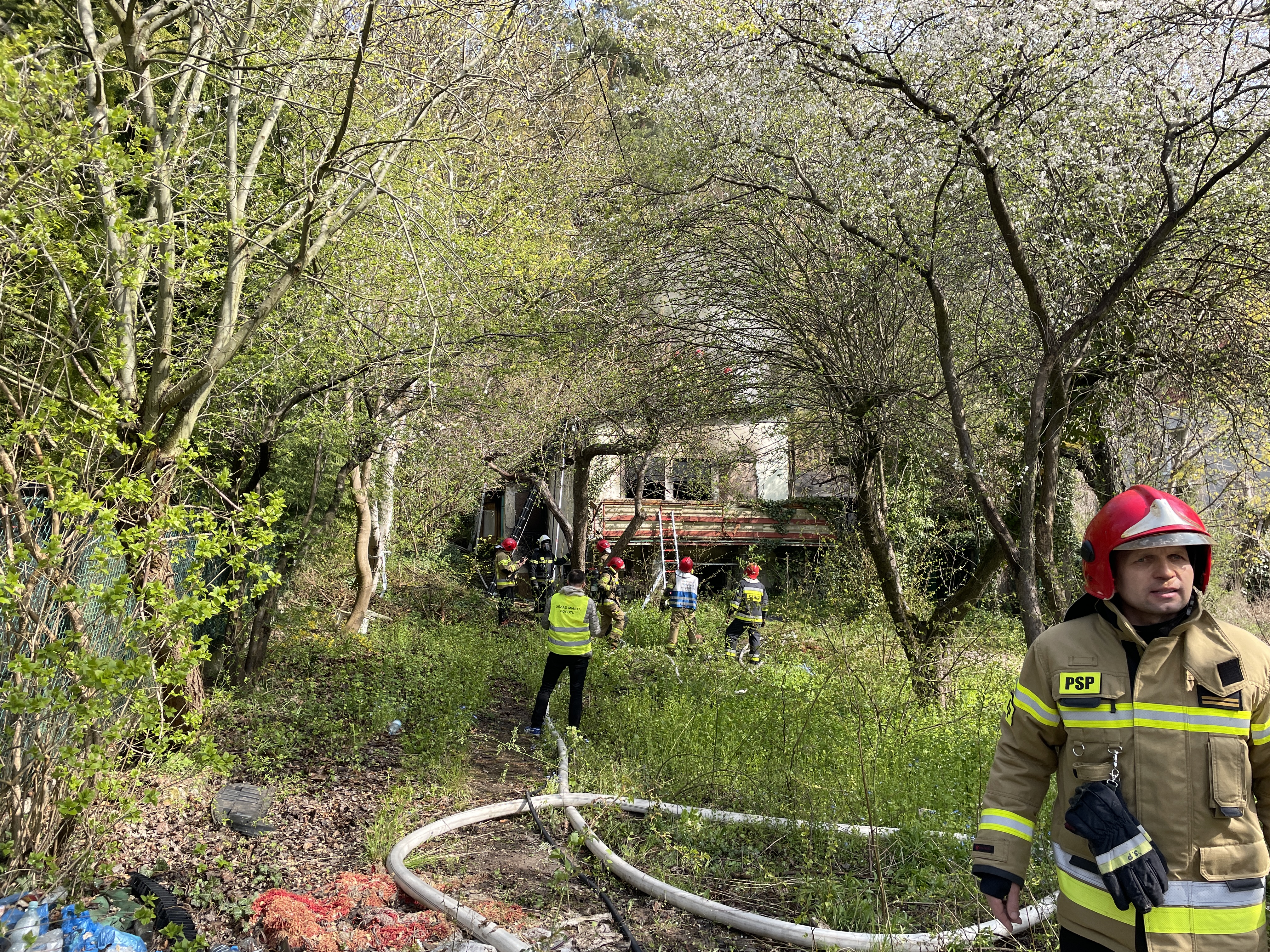 O godz. 9:16 dyżurny stanowiska kierowania komendanta miejskiego PSP w Sopocie otrzymał zgłoszenie o pożarze pustostanu przy ul. Żeromskiego. Po przybyciu na miejsce zdarzenia potwierdzono, że pożarem objęty jest cały budynek wraz z drewnianą przybudówką. Po zabezpieczeniu miejsca zdarzenia odłączono prowizorycznie doprowadzoną instalację elektryczną, a następnie przytąpino do gaszenia za pomocą czterech prądów gaśniczych. Po dojeździe kolejnych jednostek podano trzy kolejne prądy gaśnicze, wprowadzając jednocześnie również rotę do środka. Po ugaszeniu pożaru przystąpiono do częściowej rozbiórki dachu celem likwidacji zarzewi pożaru oraz dokonano dokładnego przeszukania pomieszczeń.