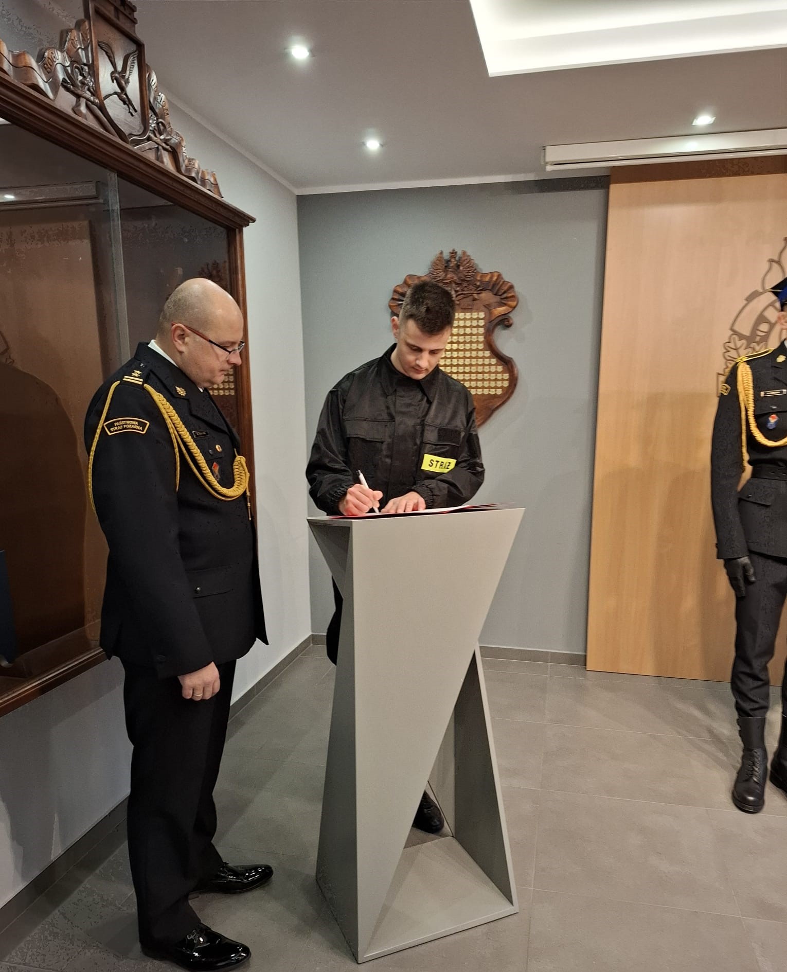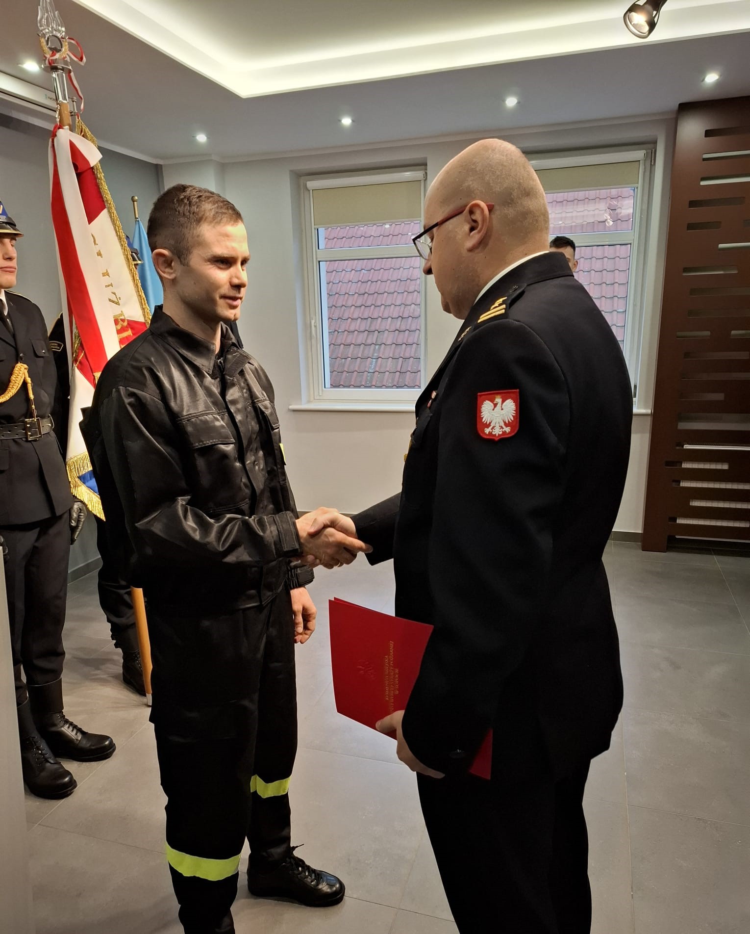 Podczas uroczystości został również wręczony str. Kacprowi Grubbie akt mianowania na stanowisko stażysty w Sekcji ds. przeciwdziałania zagrożeniom.