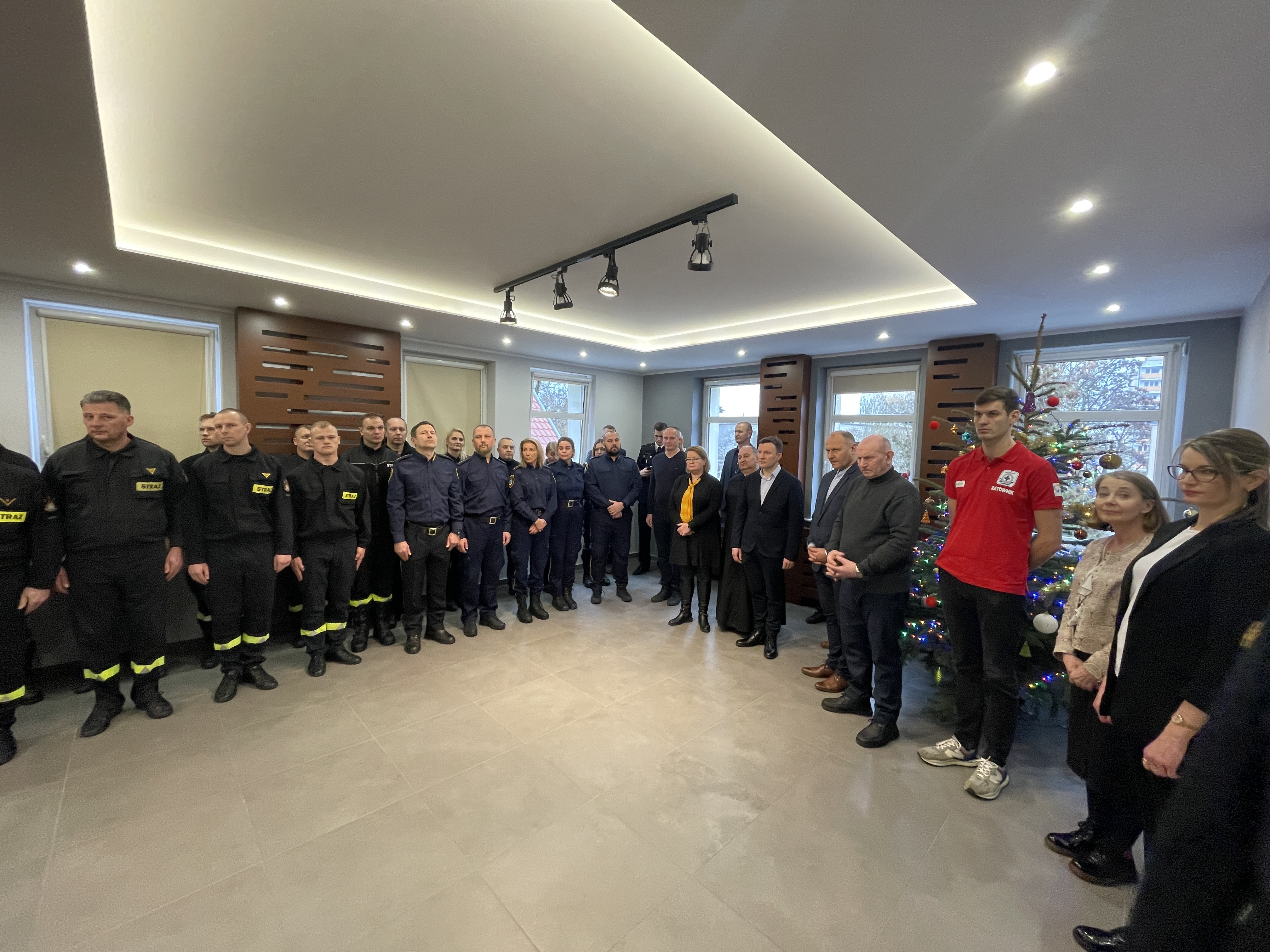 Podczas spotkania komendanci strazy pożarnej i straży miejskiej oraz przedstawiciele władz samorządowych, podziękowali strażnikom, funkcjonariuszom, druhom i pracownikom cywilnym za zaangażowanie w realizację zadań na rzecz służby i bezpieczeństwa mieszkańców. Następnie wszyscy podzielili się opłatkiem, składając najserdeczniejsze życzenia zdrowia, pogody ducha i wszelkiej pomyślności.