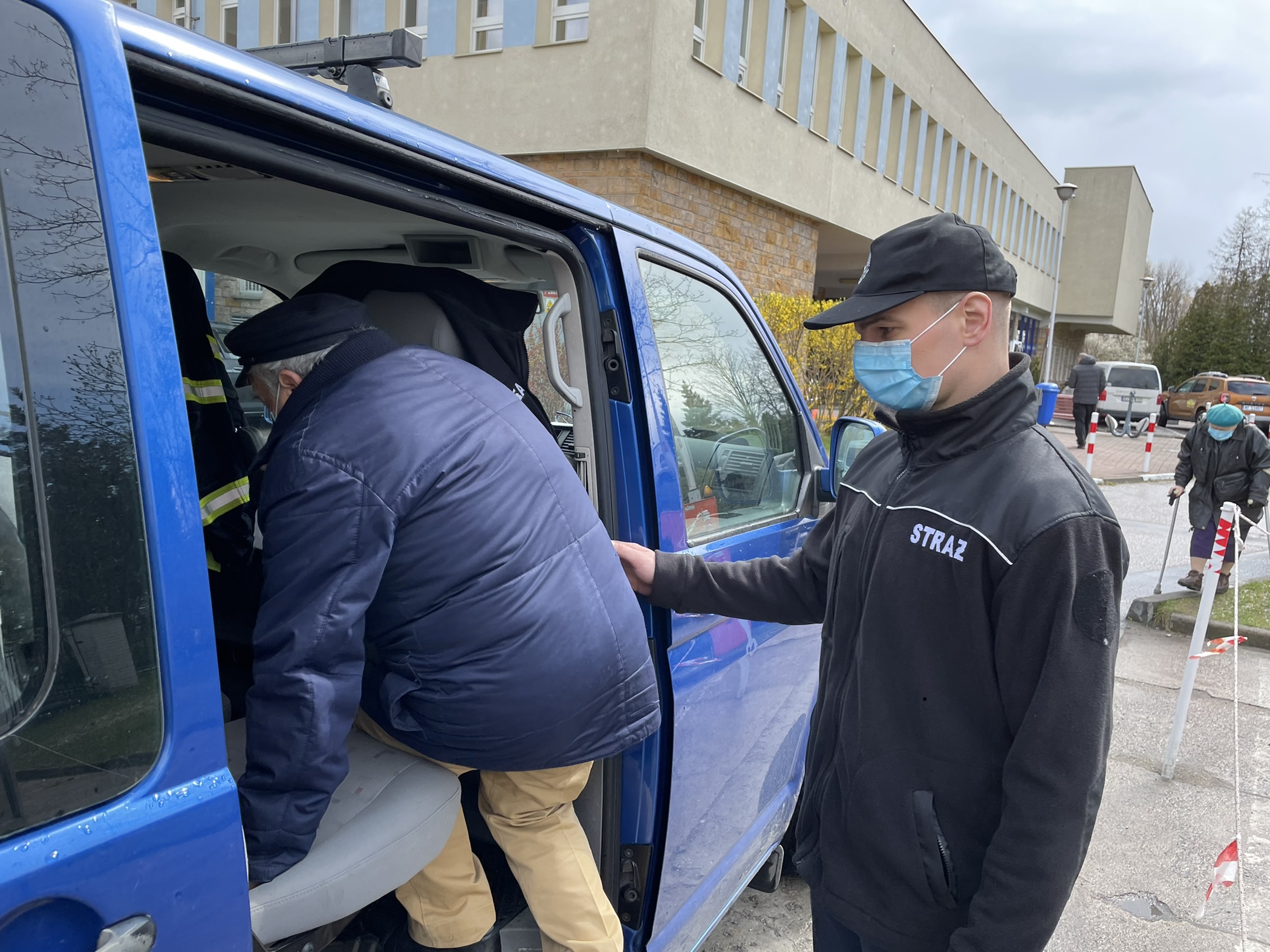 W ramach ogólnopolskiej akcji szczepień przeciw COVID-19 strażacy pomagają dotrzeć do punktów szczepień osobom, które nie mogą tam dojechać we własnym zakresie. Akcja jest prowadzona we współpracy z punktami szczepień oraz jednostkami samorządu terytorialnego. Gminy wskazywały potrzeby i przekazywały je komendantom miejskim i powiatowym PSP.