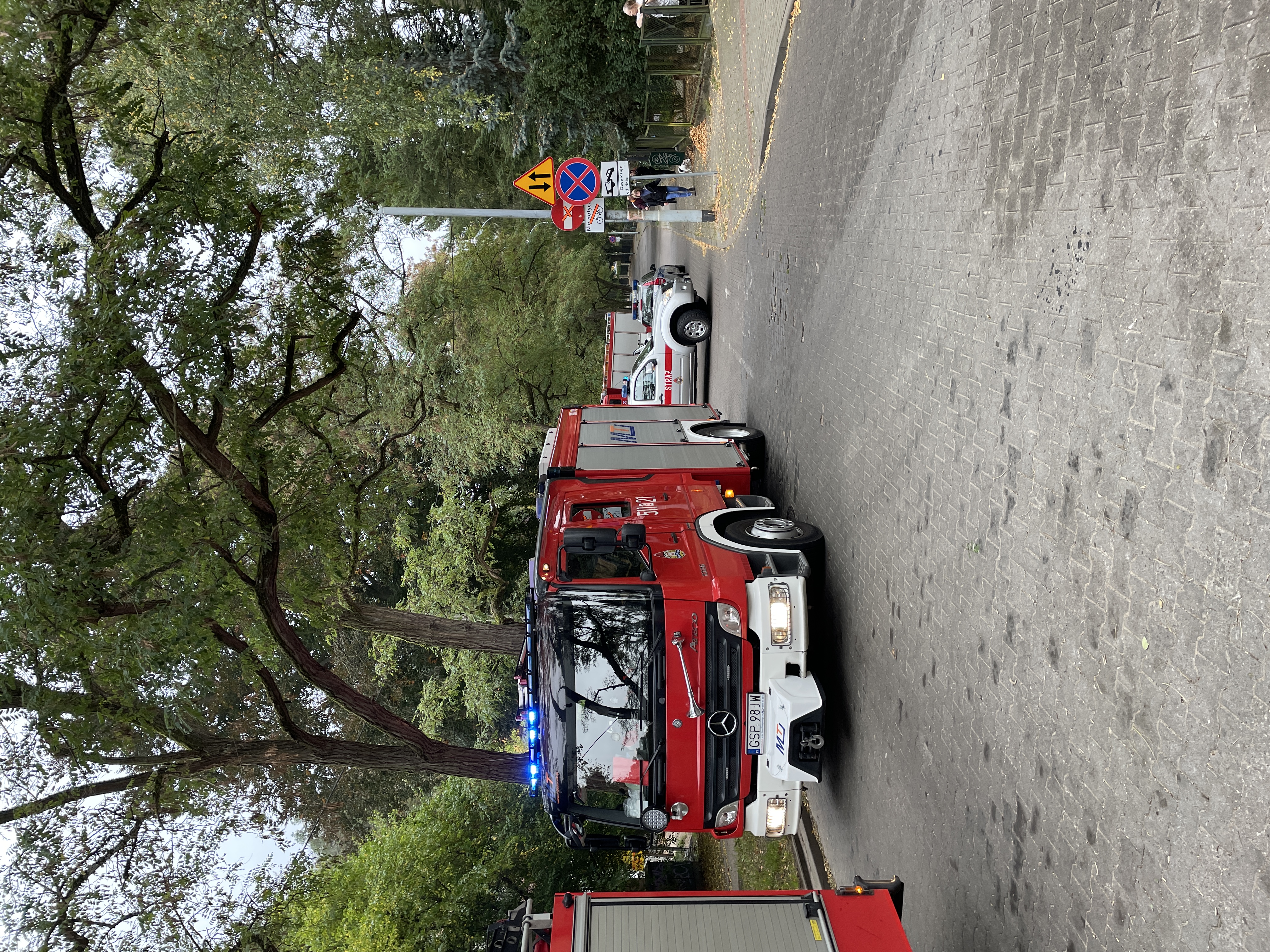 Liczba zastępów (osób): 4 zastępy PSP (9 os.), Policja – 2 radiowozy (5 os.), LPR - 1 śmigłowiec (3 os.), Straż Miejska - 1 radiowóz (2 os.).