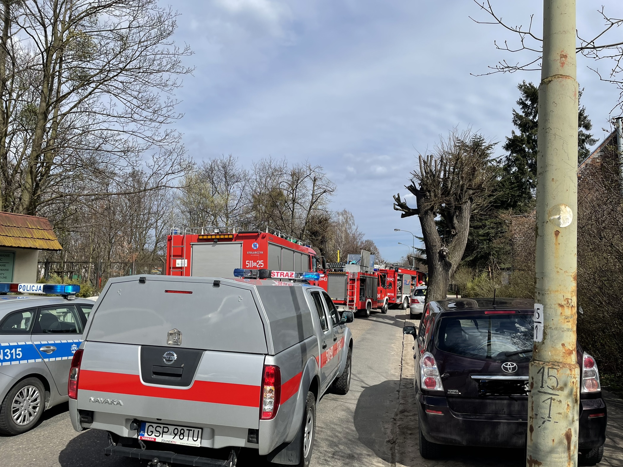 Liczba zastępów (osób): 4 zastępy PSP (9 os.), Policja – 3 radiowozy (6 os.), ZRM - 1 samochód (2 os.).