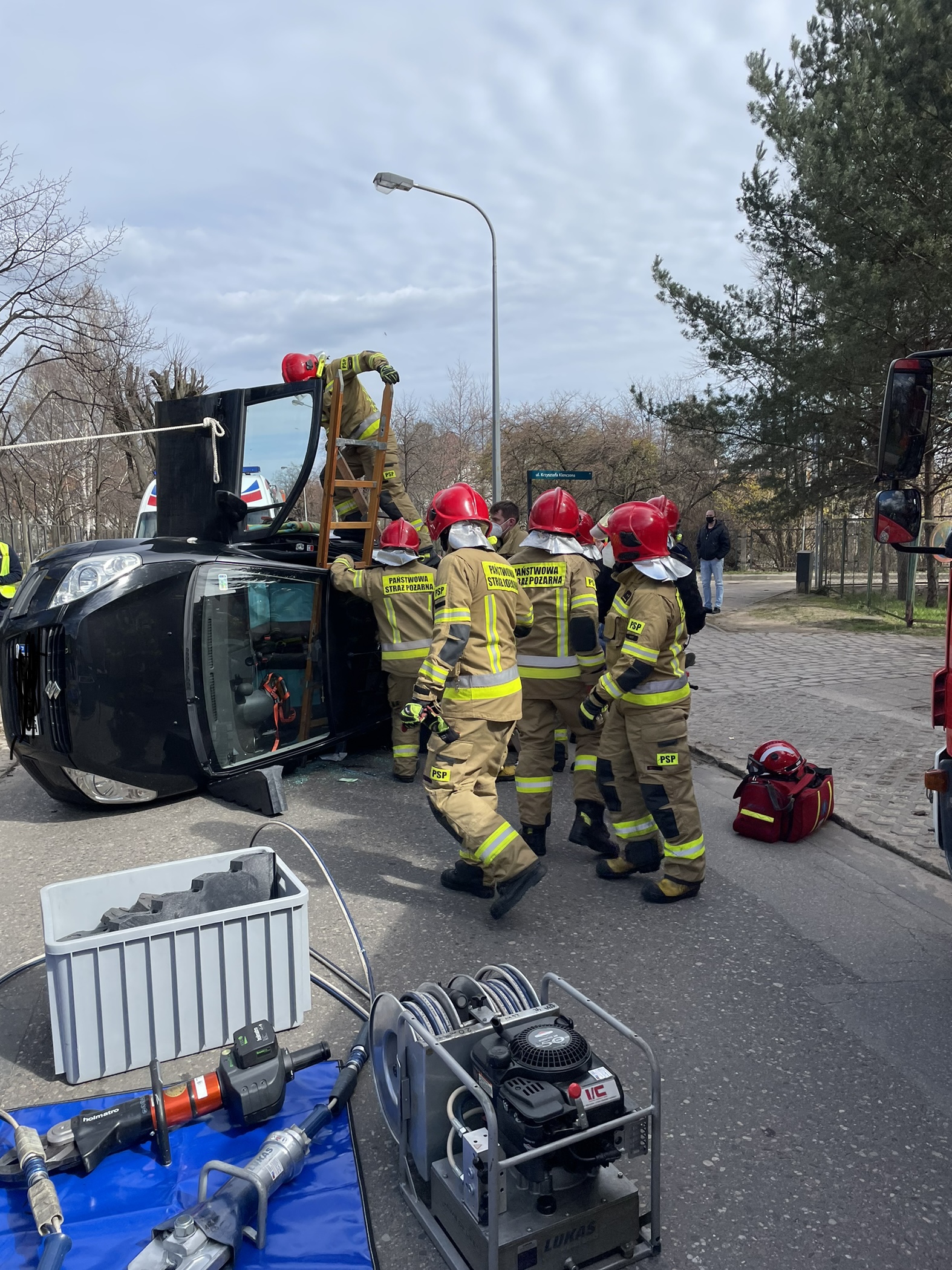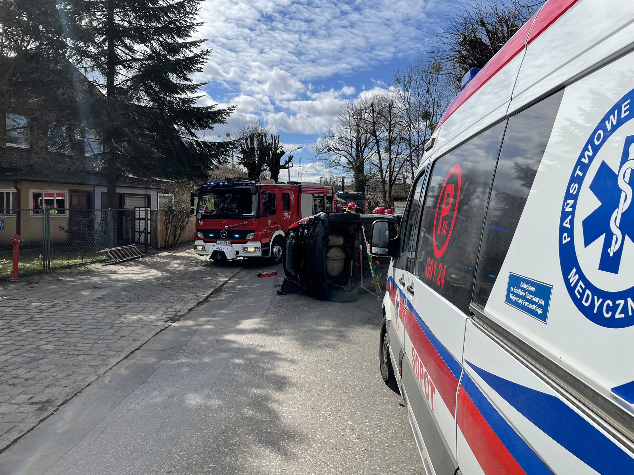 13 kwietnia 2021 roku o godz. 12:38 dyżurny stanowiska kierowania komendanta miejskiego PSP w Sopocie otrzymał zgłoszenie o wypadku – samochód leżący na boku na ulicy Jana z Kolna.