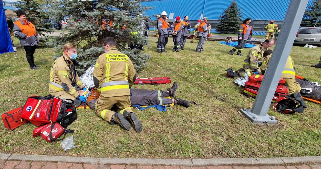 Ćwiczenia na terenie huty ArcelorMittal w Sosnowcu
