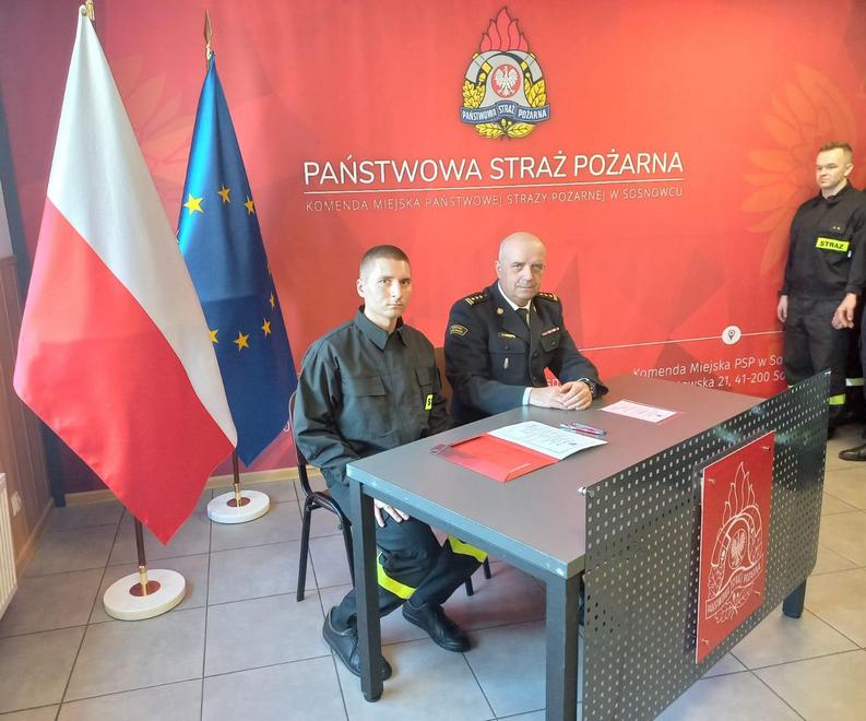 4 kwietnia 2025 roku w Komendzie Miejskiej PSP w Sosnowcu odbyło się uroczyste ślubowanie strażaka, który rozpoczął służbę w Państwowej Straży Pożarnej. Ślubowanie przyjął Komendant Miejski Państwowej Straży Pożarnej w Sosnowcu st. bryg. Marcin Pilarski. Po ślubowaniu nastąpiło podpisanie oraz wręczenie aktu ślubowania.