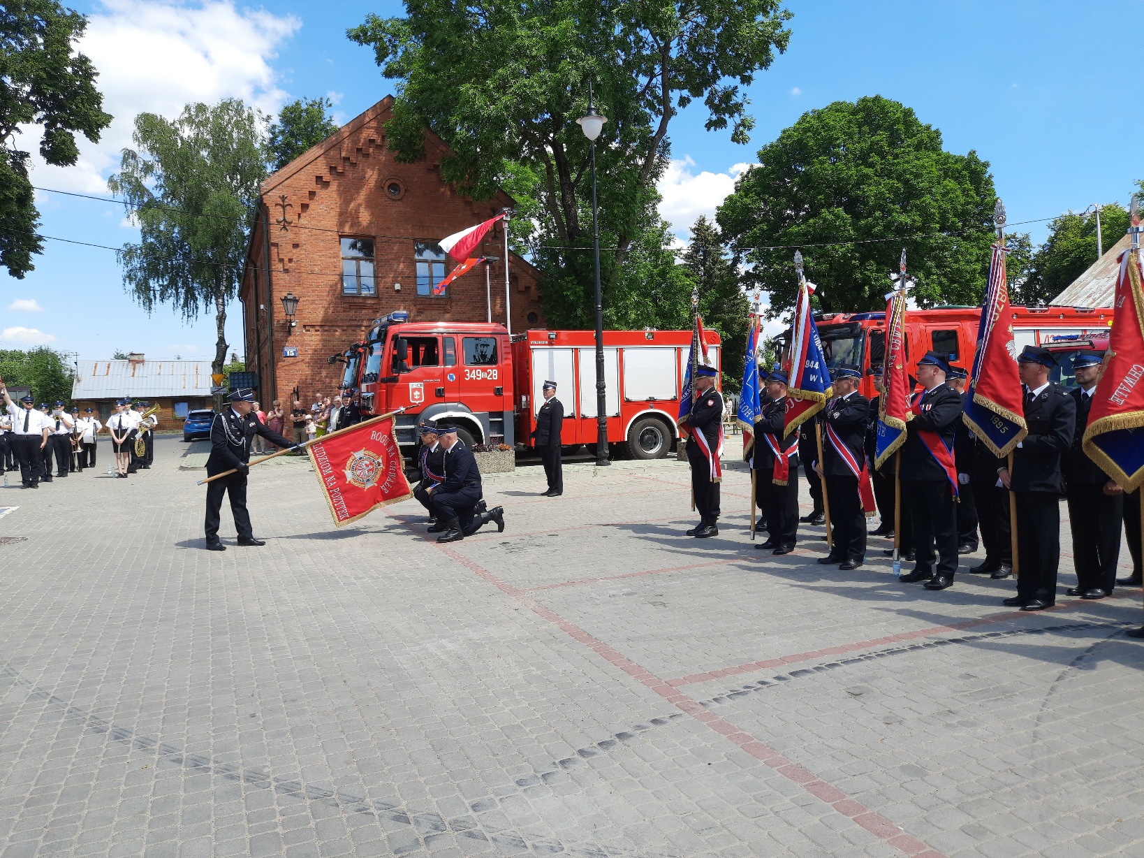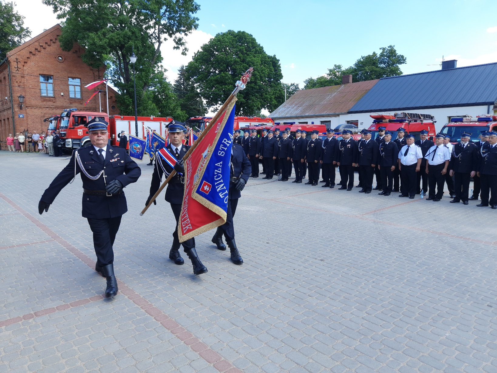 w Raczkach po czym uczestnicy przeszli na plac przy Urzędzie Gminy. Po złożeniu meldunku rozpoczynającego apel, odegraniu hymnu państwowego oraz ochotniczych straży pożarnych, przystąpiono do ceremonii nadania sztandaru jednostce OSP w Raczkach.