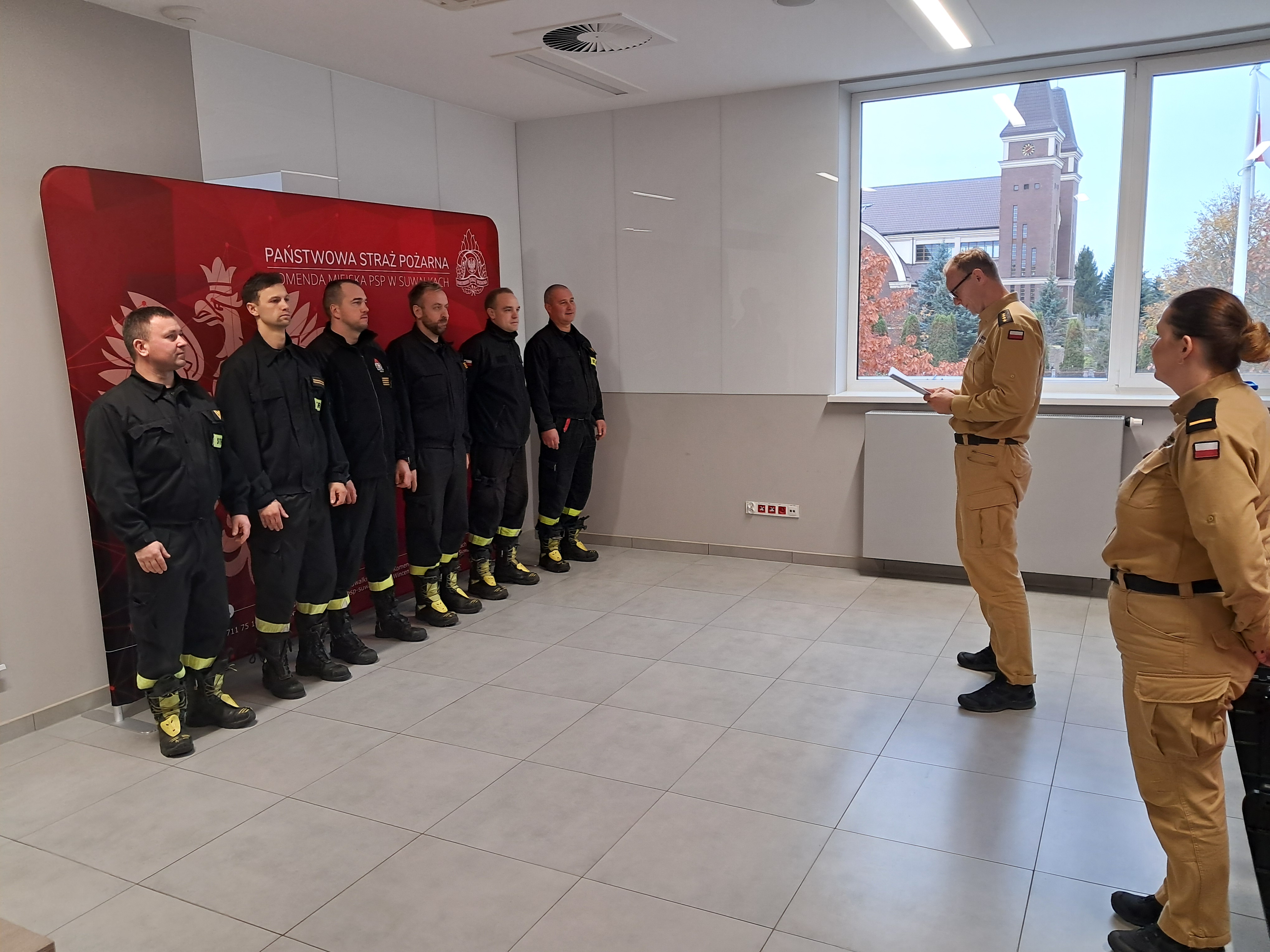 W dniu 31.10.2024 r. w Komendzie Miejskiej Państwowej Straży Pożarnej w Suwałkach odbyła się uroczysta zbiórka 6 funkcjonariuszy, podczas której Komendant Miejski PSP w Suwałkach wręczył akty mianowania na wyższe stanowiska służbowe. Akt mianowania od st. kpt. Jerzego Nettera otrzymali: