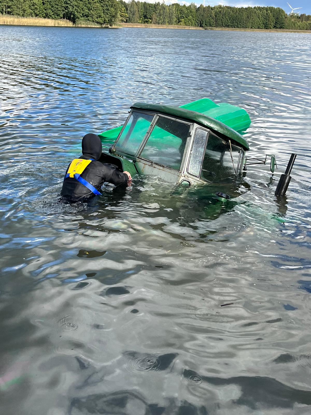 23 września 2025 roku doszło do niebezpiecznego zdarzenia nad jeziorem – podczas wyciągania łodzi wiosłowej ciągnik rolniczy stoczył się do wody.